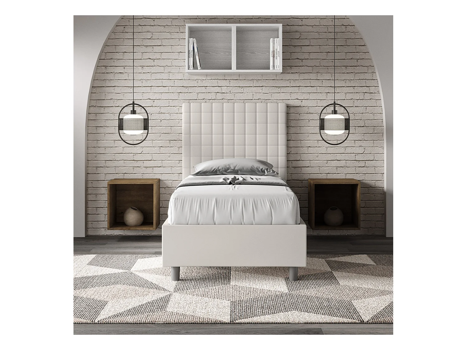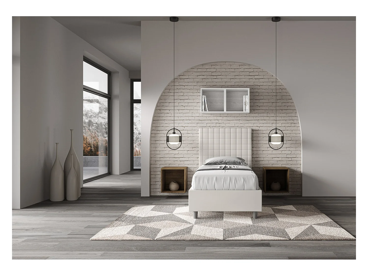 Lit Sunny en simili cuir blanc sans sommier rembourré 80x210