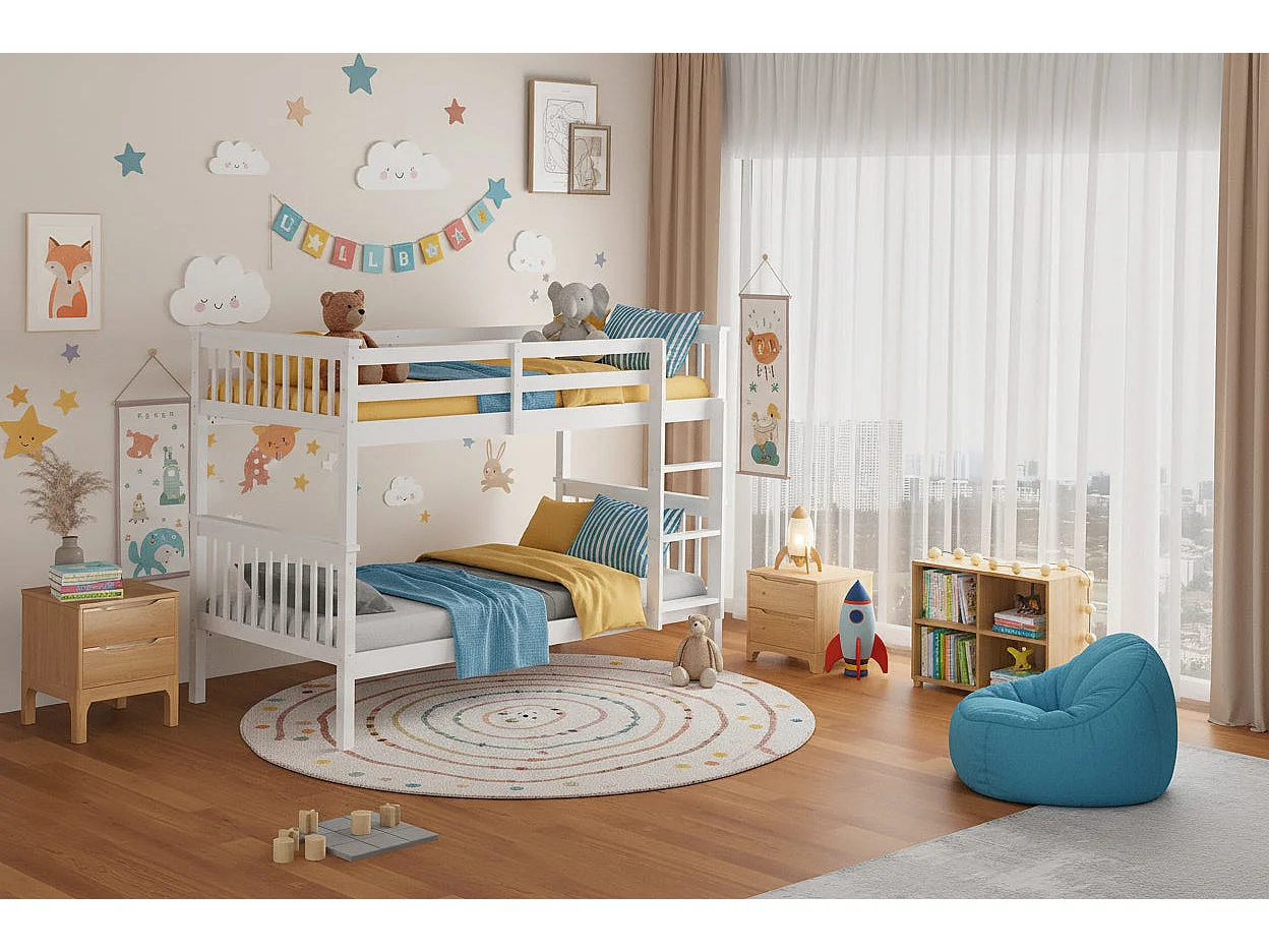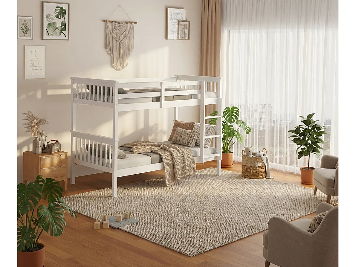 Lit superposé en bois blanc 90x190 cm 1+1 BATNA