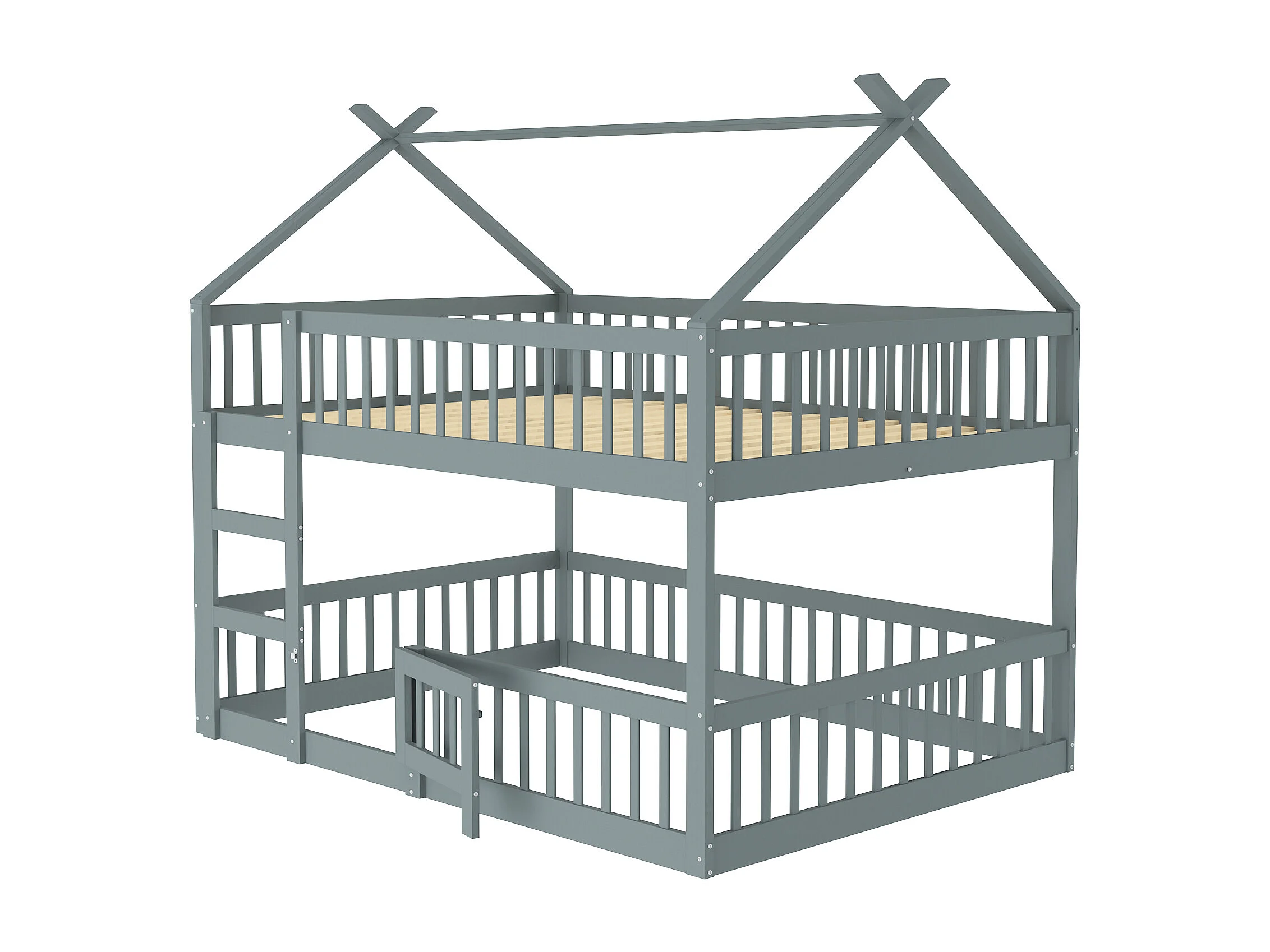Lit superposé 140x200 cm avec échelle, lit cabane, 1 sommier, Bois, contreplaqué, MDF, gris, sans matelas