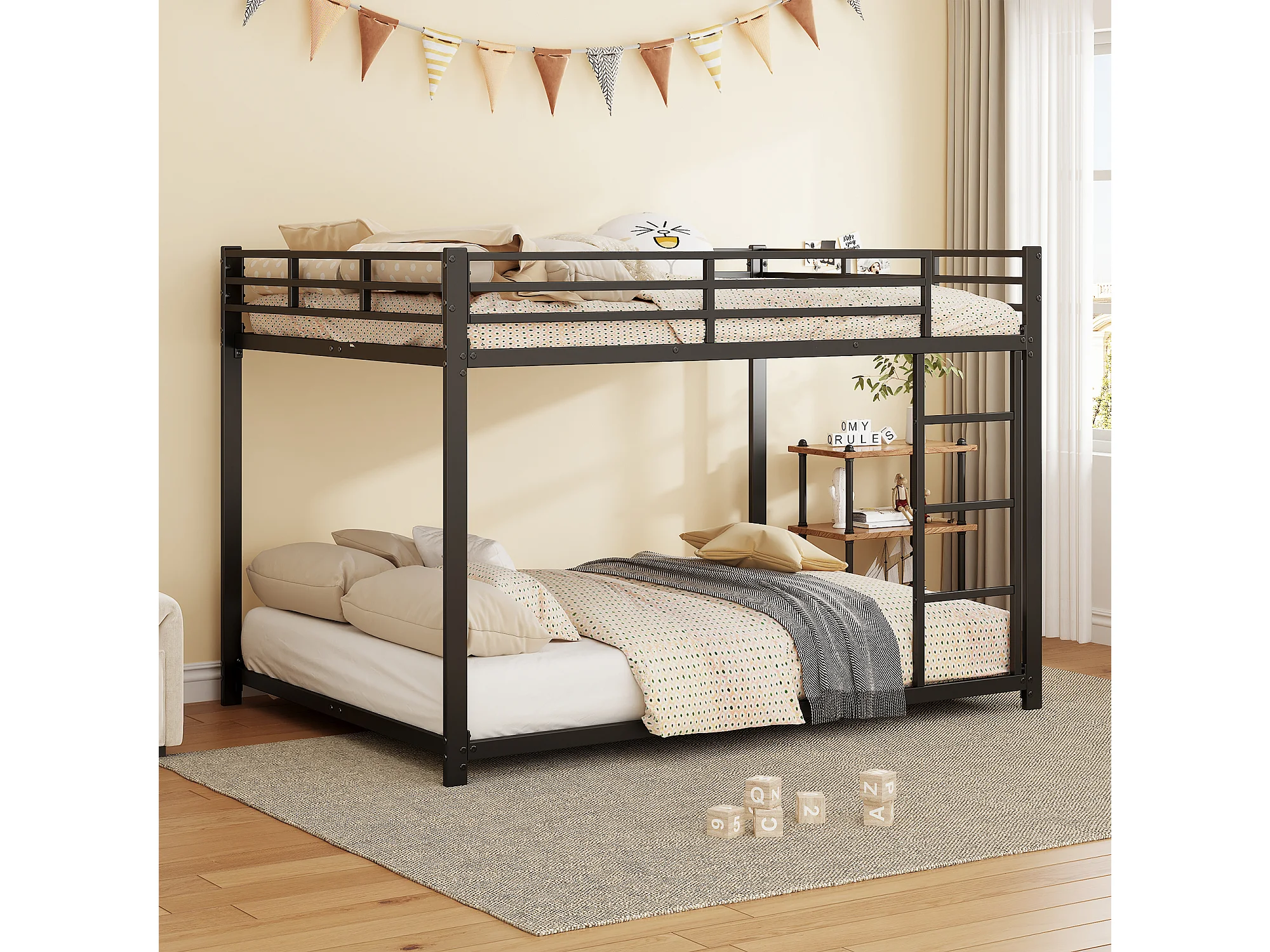Lit superposé 140x200 cm - avec sommier à lattes - en métal - noir - sans matelas