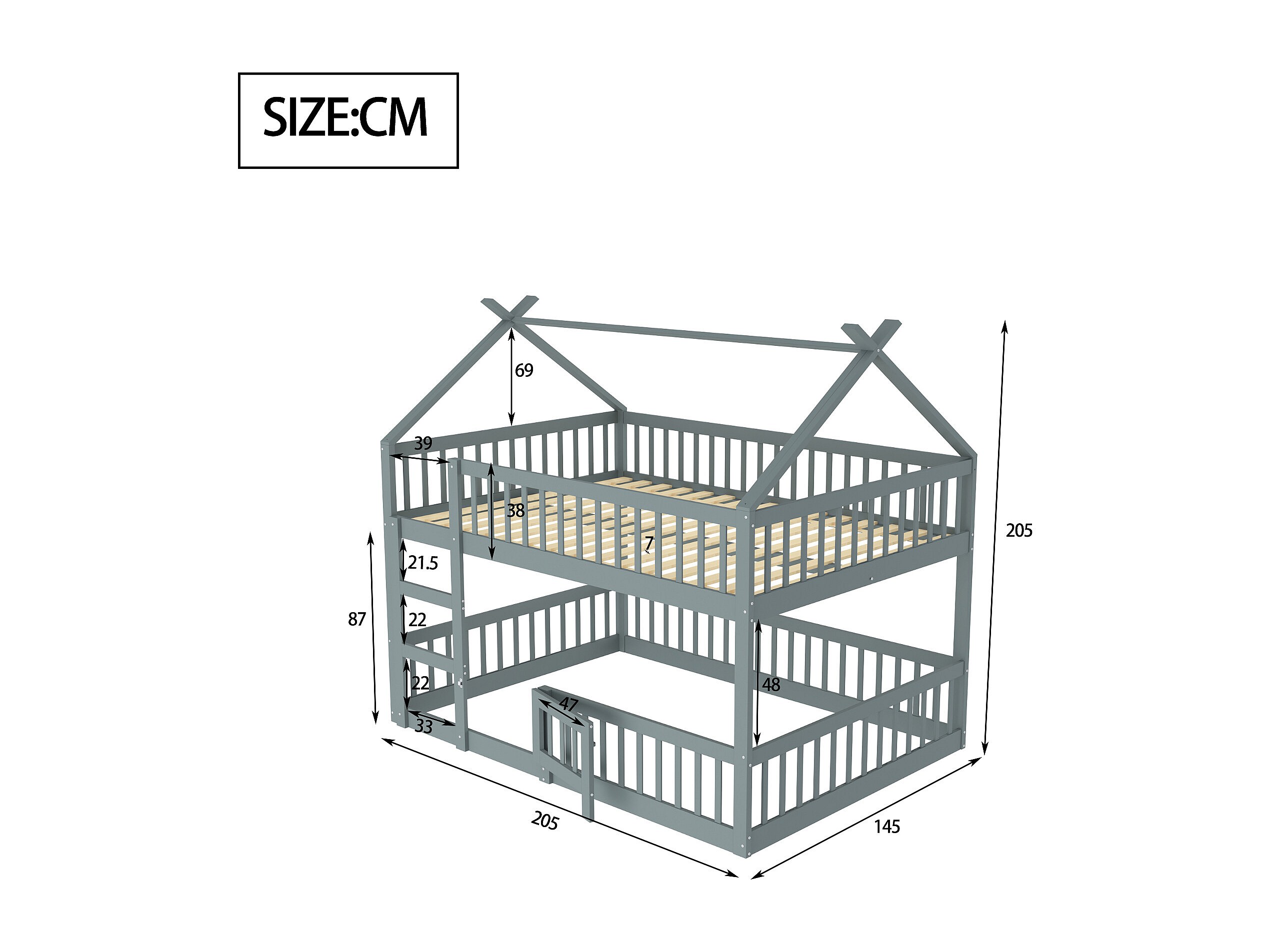Lit superposé 140x200 cm, design loft avec échelle, cadre en bois massif, idéal pour enfants et familles, couleur grise, robuste et spacieux.