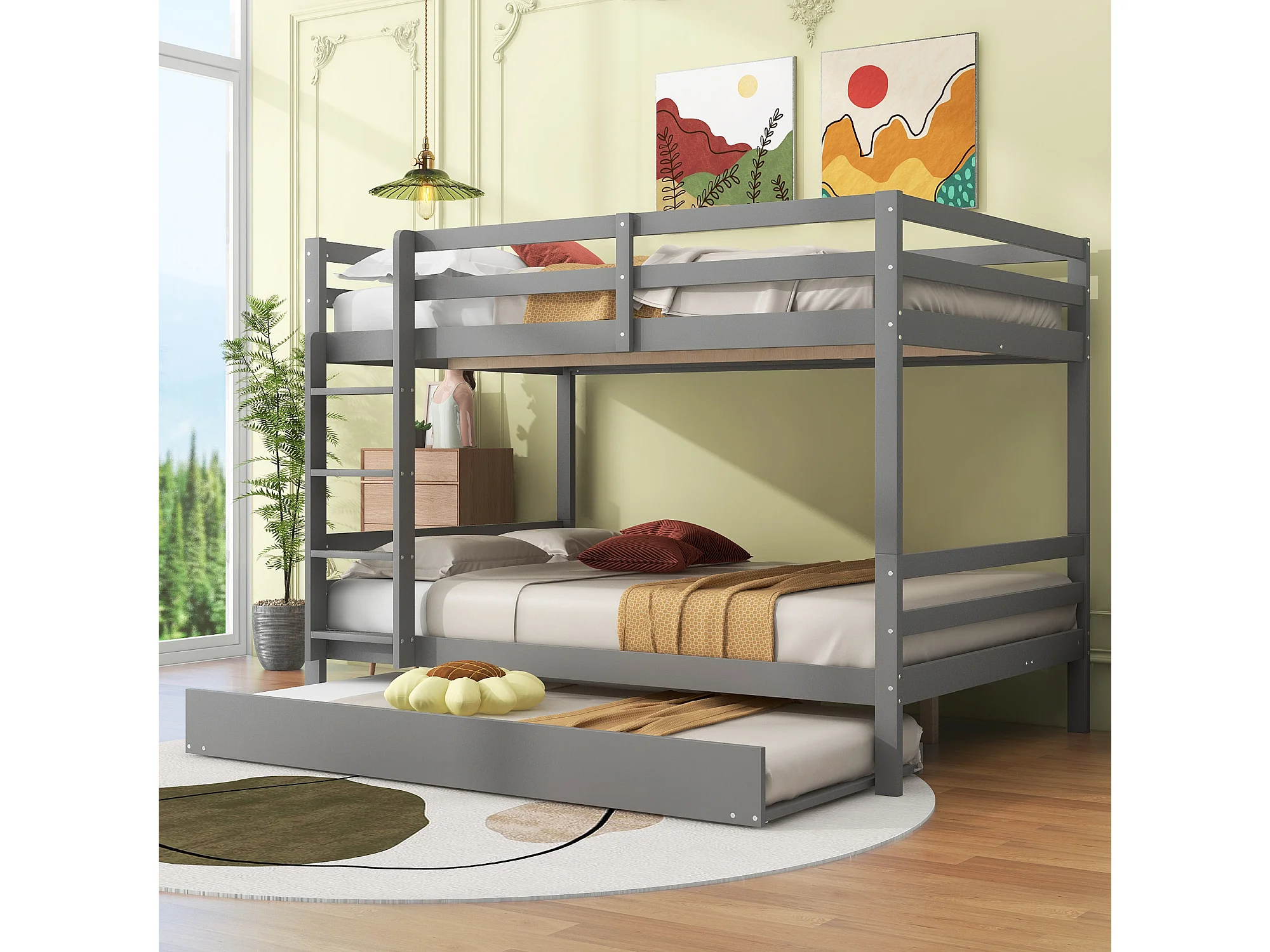 Lit superposé 140x200 cm, lit gigogne, barrières de sécurité, escalier, Pin et MDF, gris, sans mateals