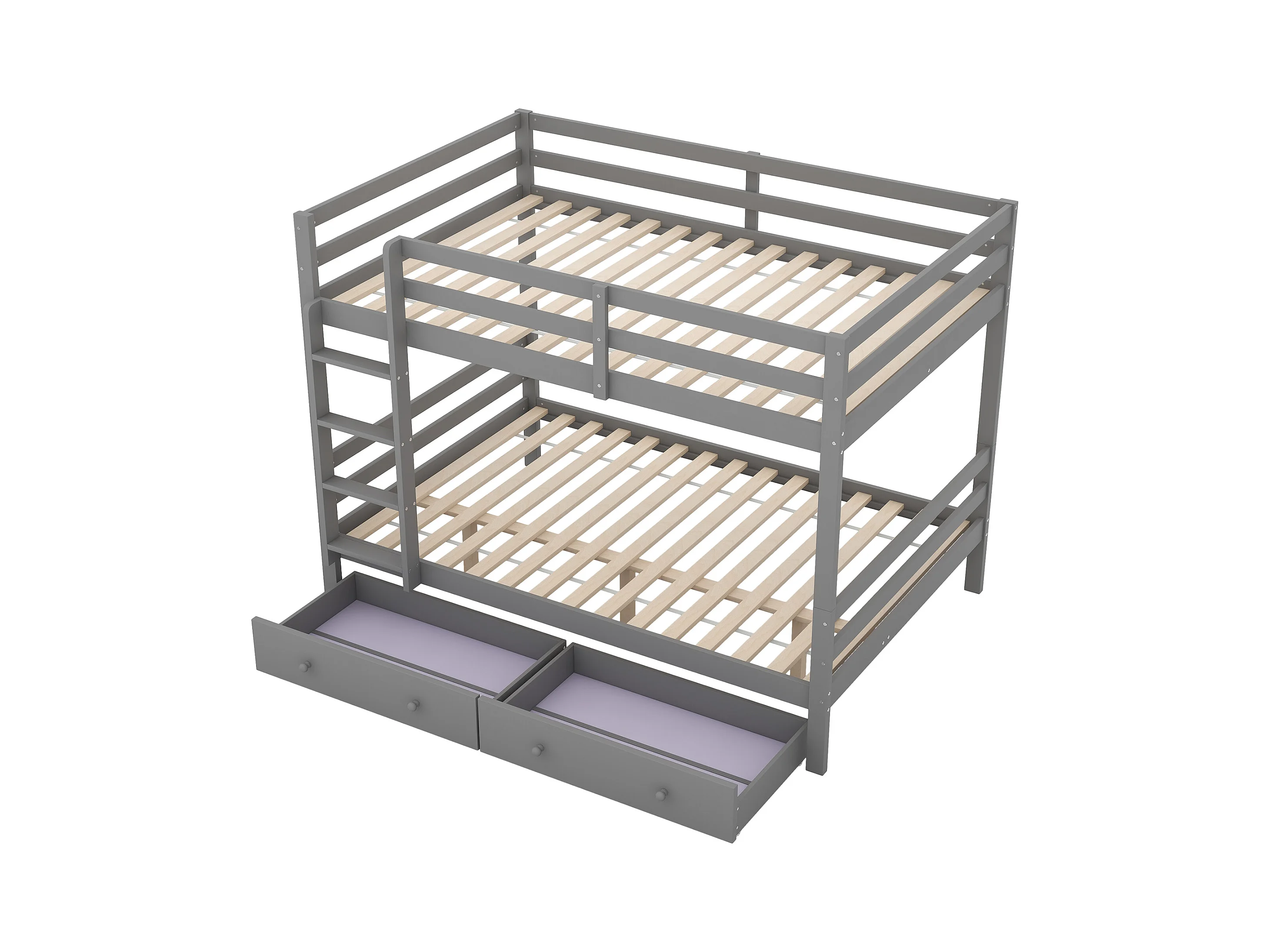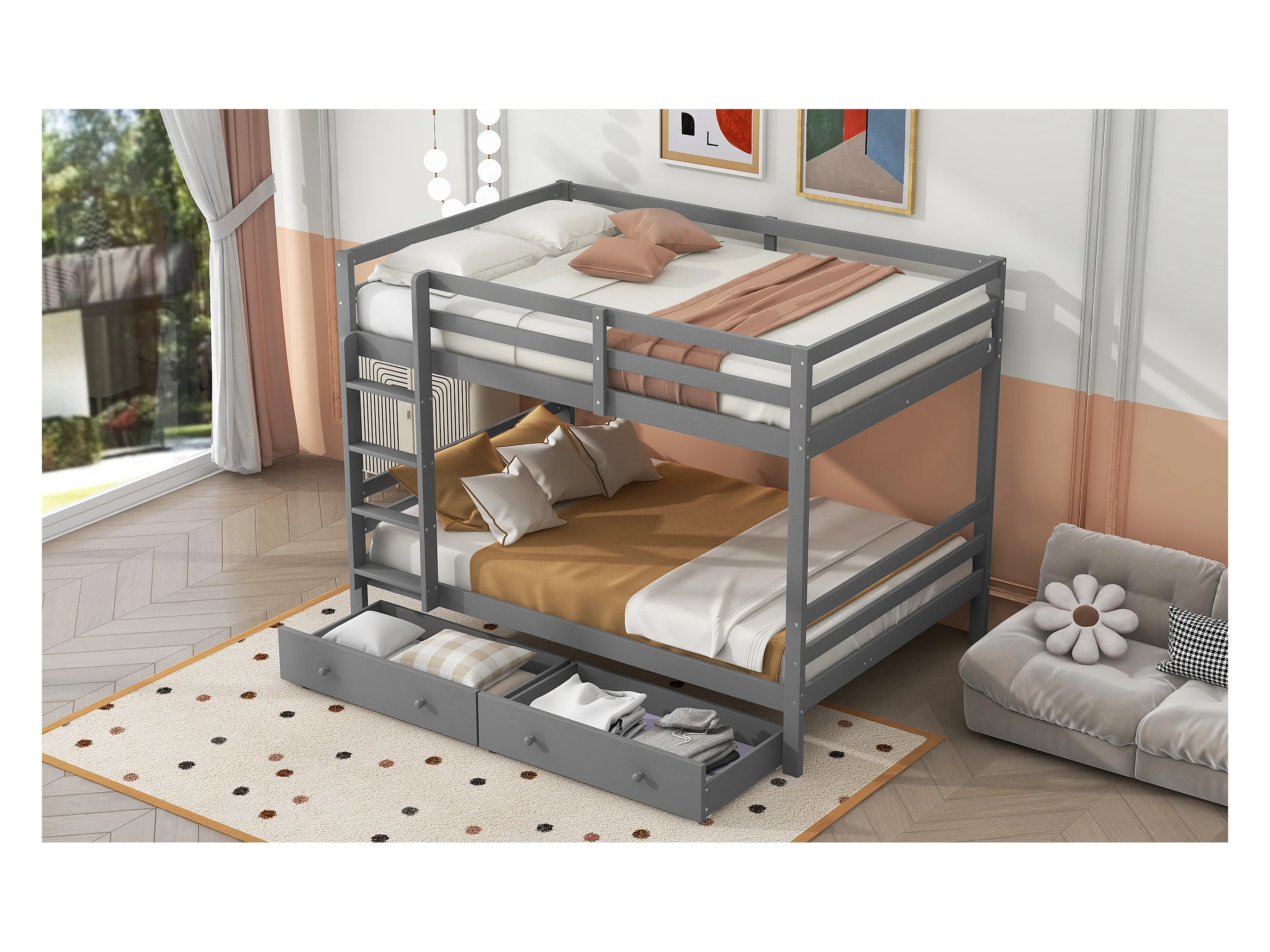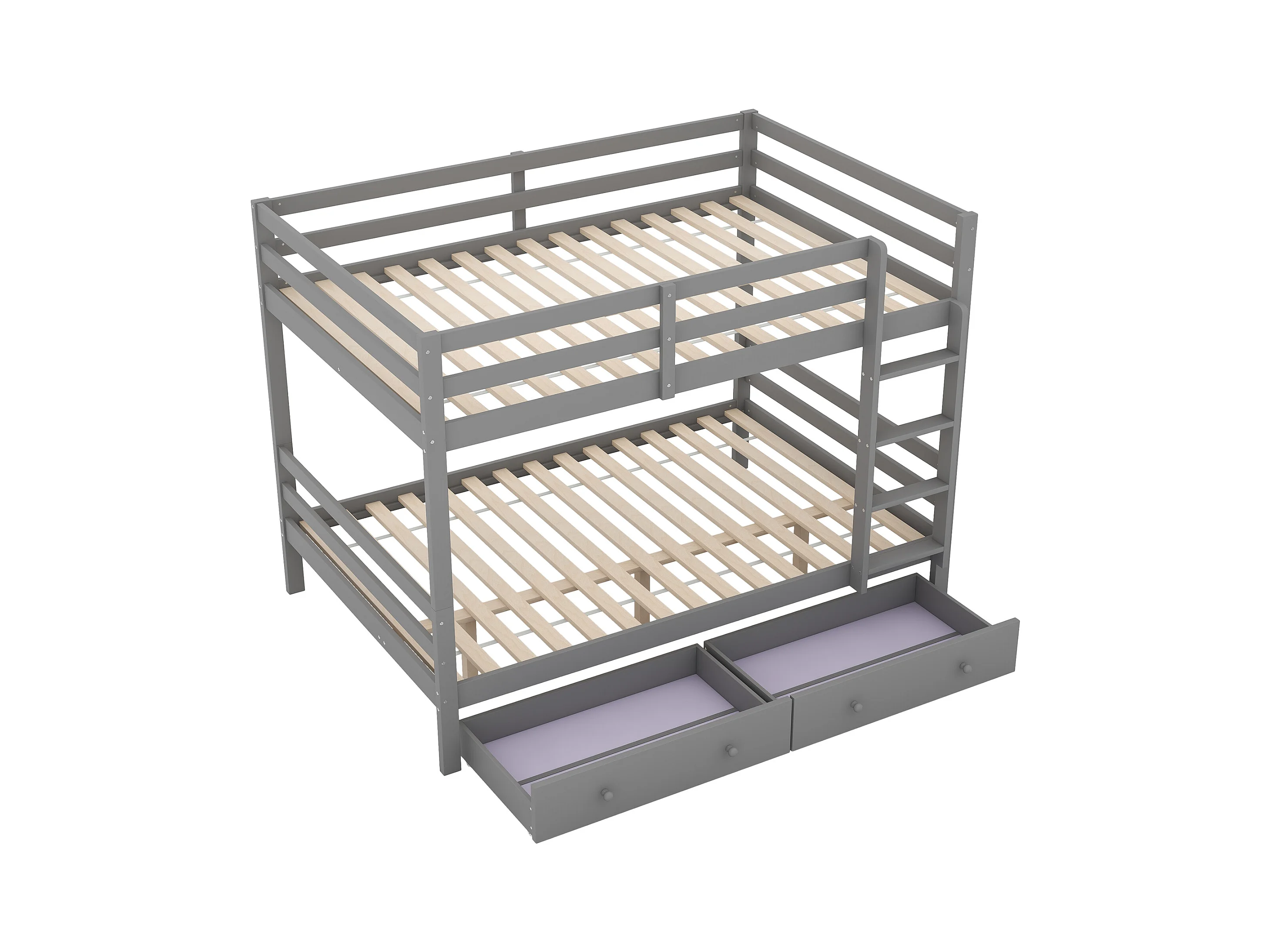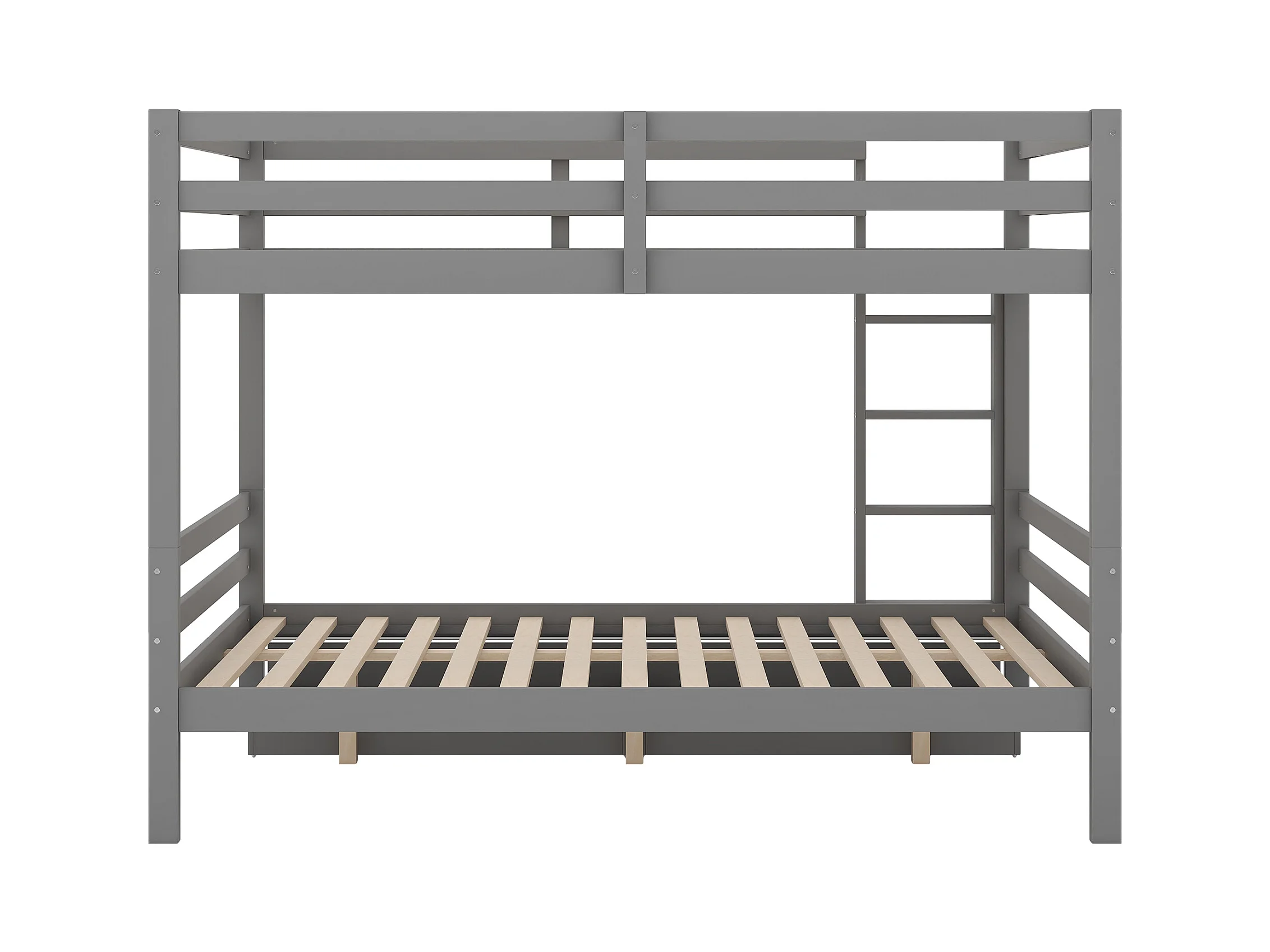 Lit superposé 140x200 cm pour enfant avec tiroirs, espace de rangement, barrières hautes, design pratique, Gris