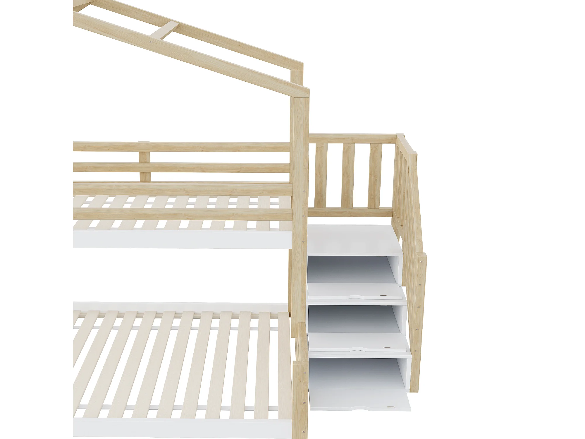 Lit superposé 140x200cm Mobilier enfant style maison Sécurité garde corps Rangement pratique bois naturel Pour chambre enfant (Sans matelas)