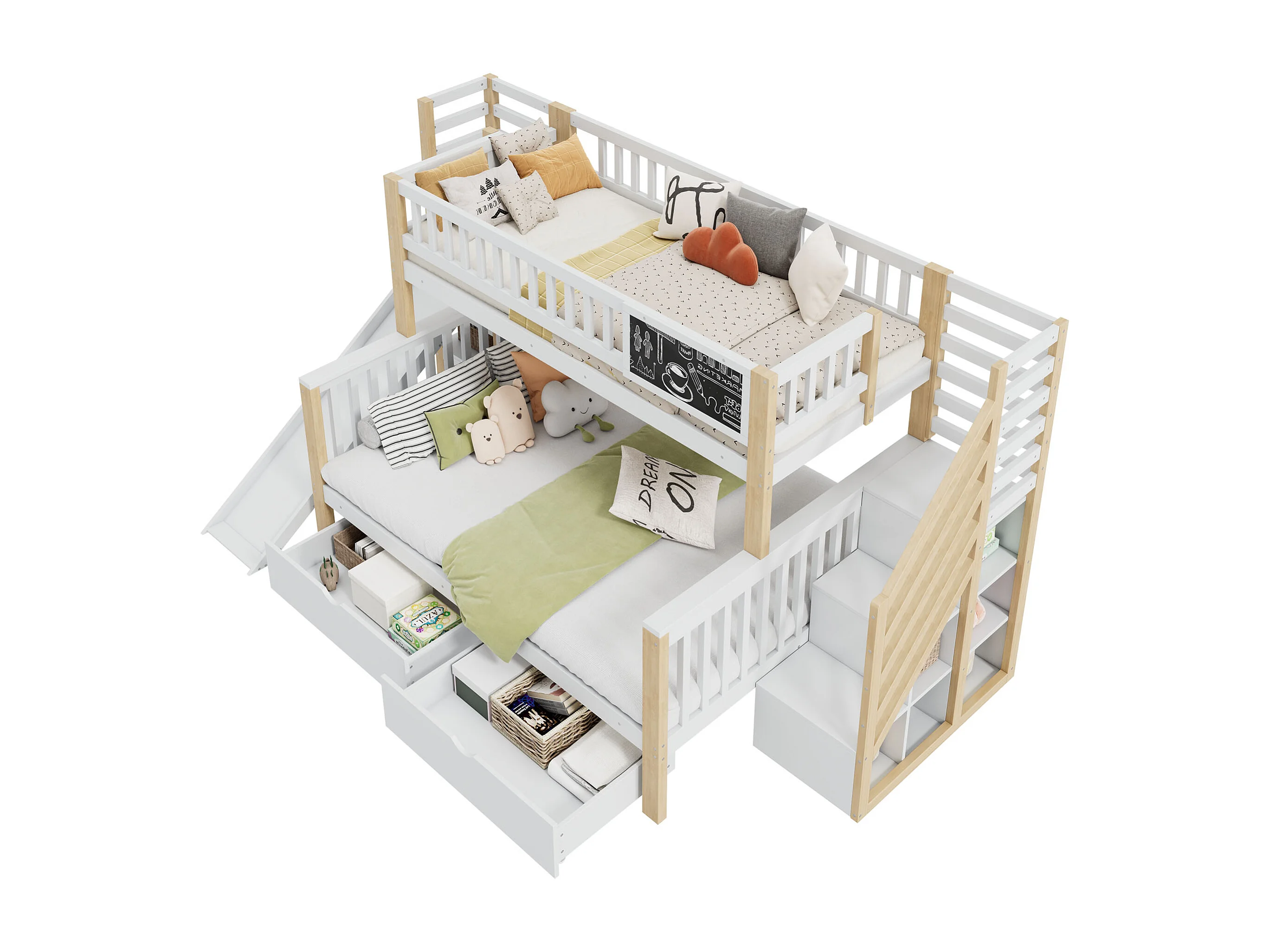 Lit superposé 140x200cm rangement intégré style épuré fonction ludique bois naturel blanc (Sans matelas)