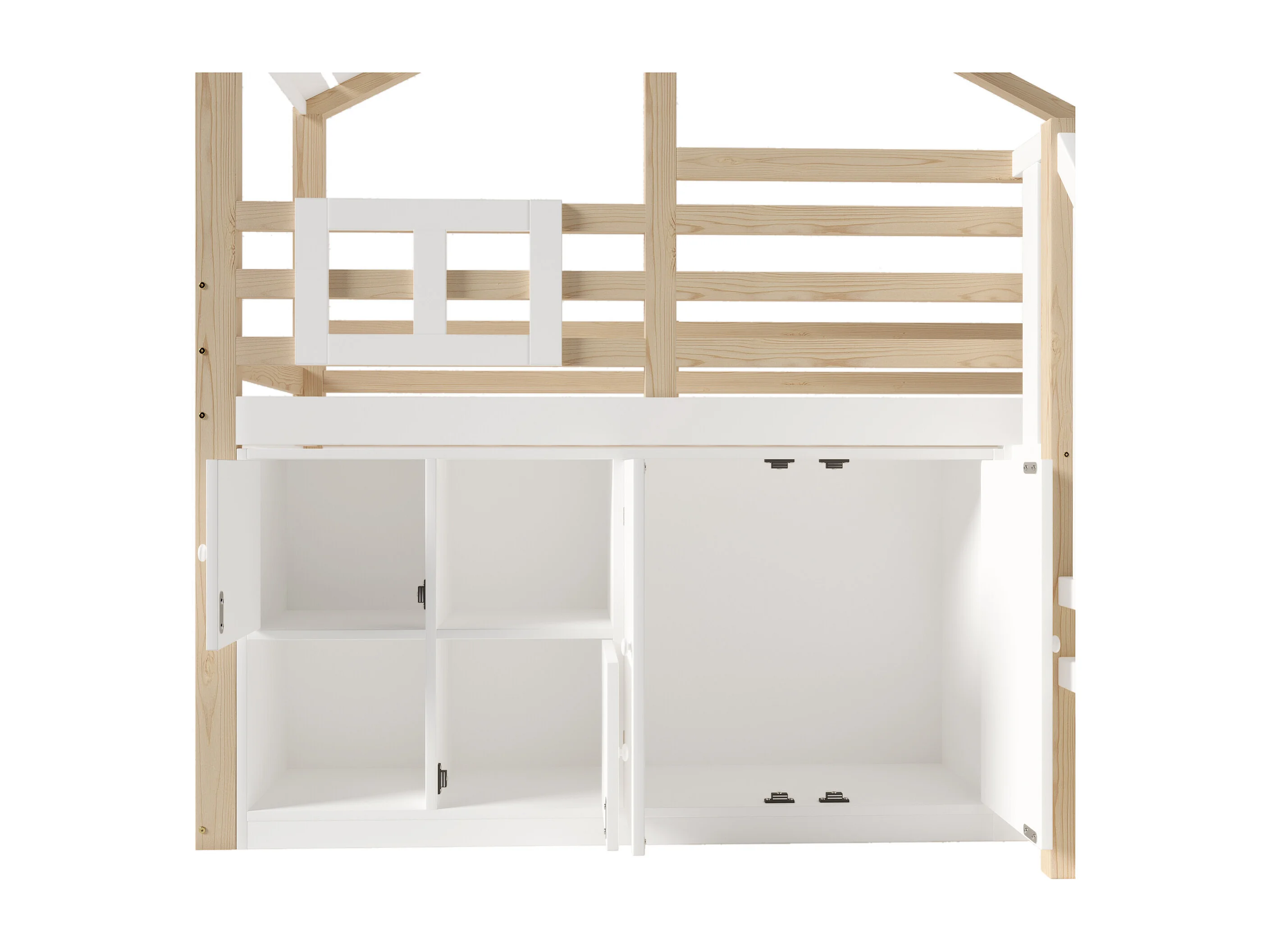 Lit superposé 204x167x160 cm avec meuble de rangement et échelle et rambarde en blanc pour enfants et adolescents