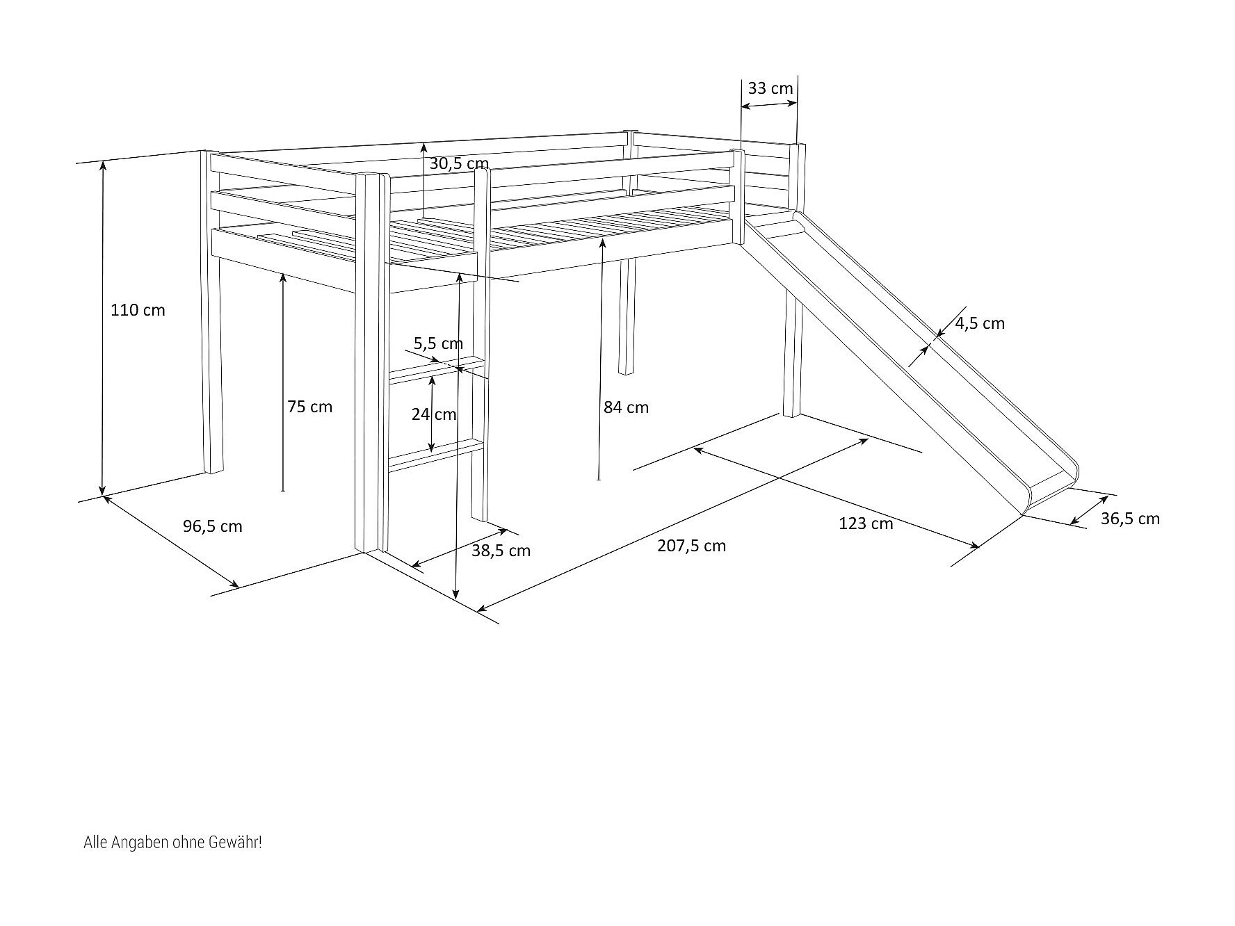 Lit superposé 207x110x97 cm gris Cabane en pin