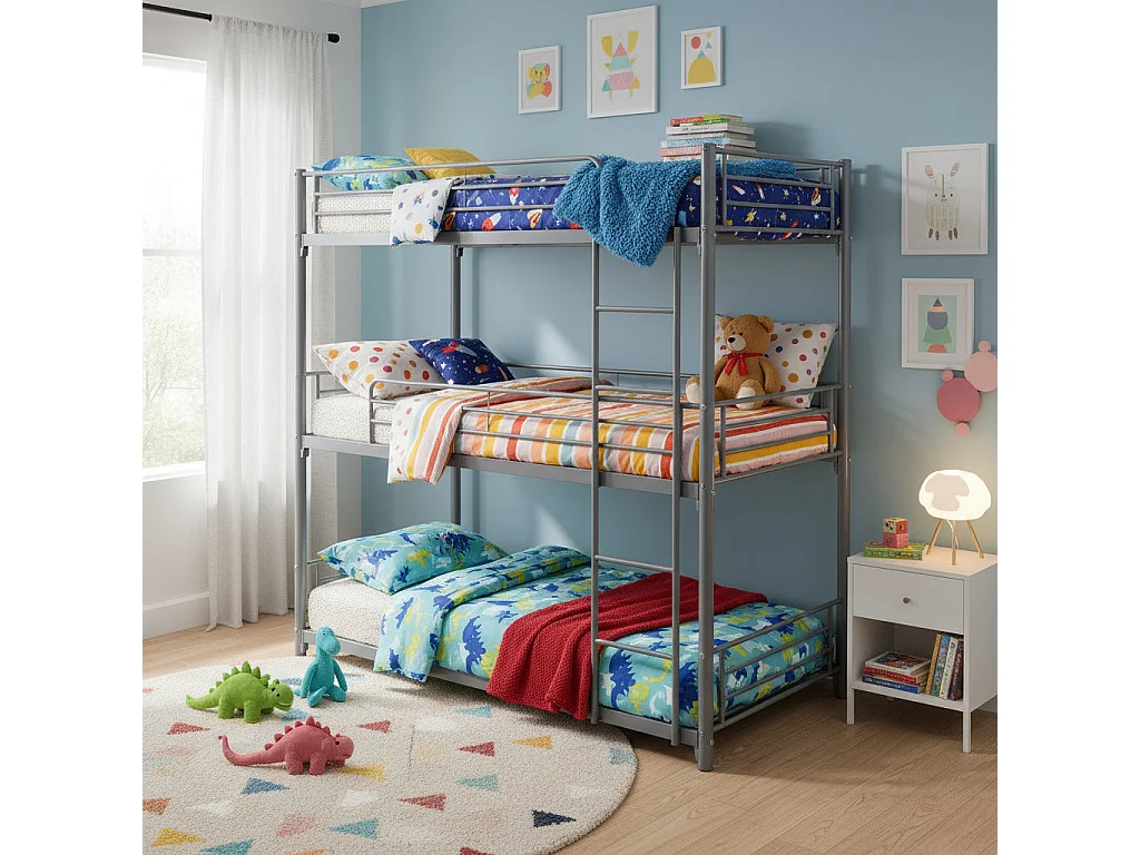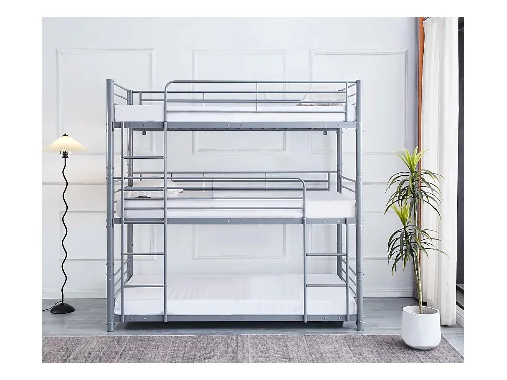 Lit superposé en métal TRIPLE 3 couchages 90x190 cm Gris