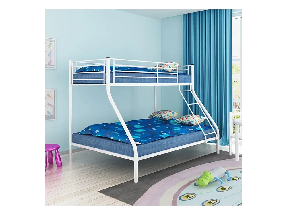 Lit superposé 3 places 2+1 métal COSTO sommier inclus blanc