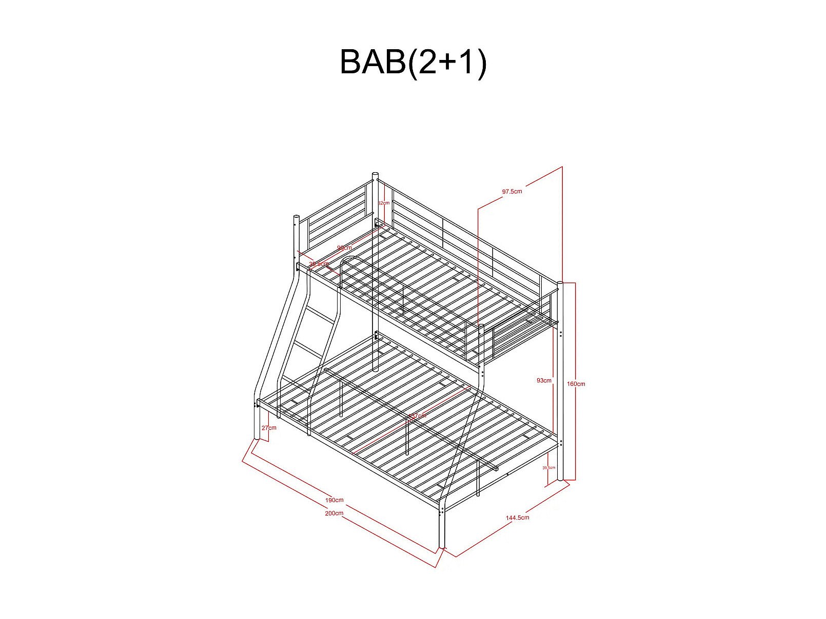 Lit superposé 3 places 2+1 métal COSTO sommier inclus noir
