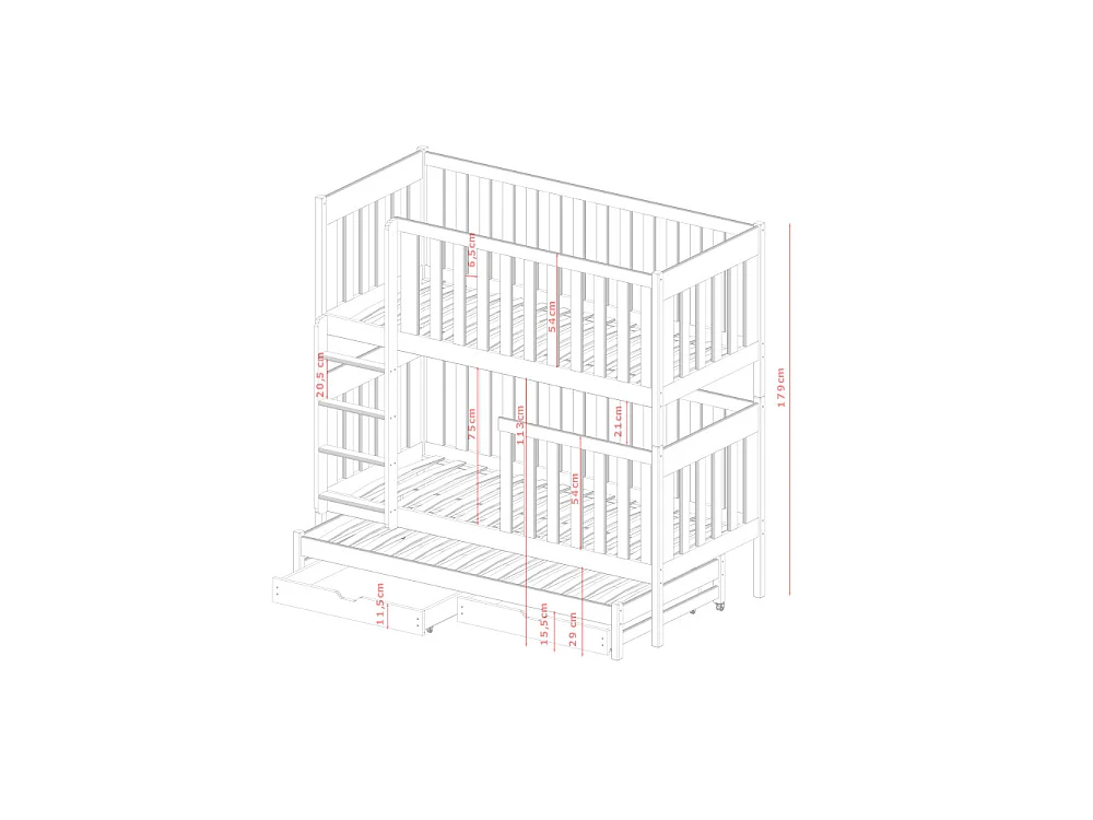 Lit superposé 3 places EMILY 90x200 avec lit gigogne Blanc Livré avec sommiers Livré avec sommiers, tiroir et matelas en mousse de 7cm