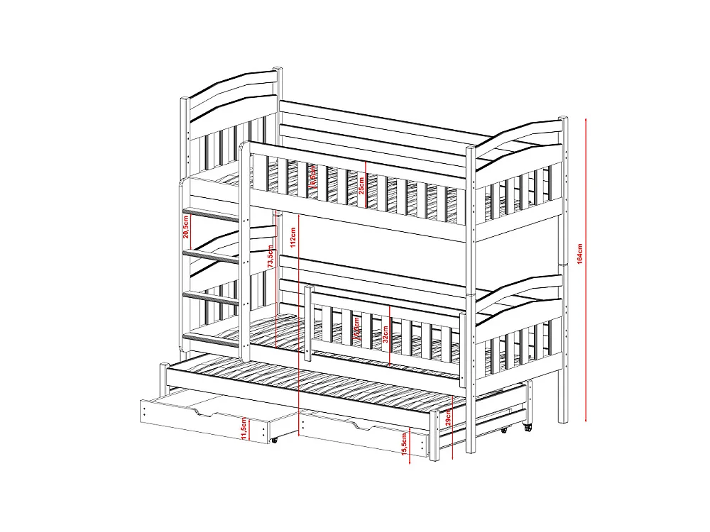 Lit superposé 3 places lanka 90x200 avec lit gigogne et 2 Tiroirs Cachemire Livré avec sommiers Livré avec sommiers, tiroir et matelas en mousse de 7cm