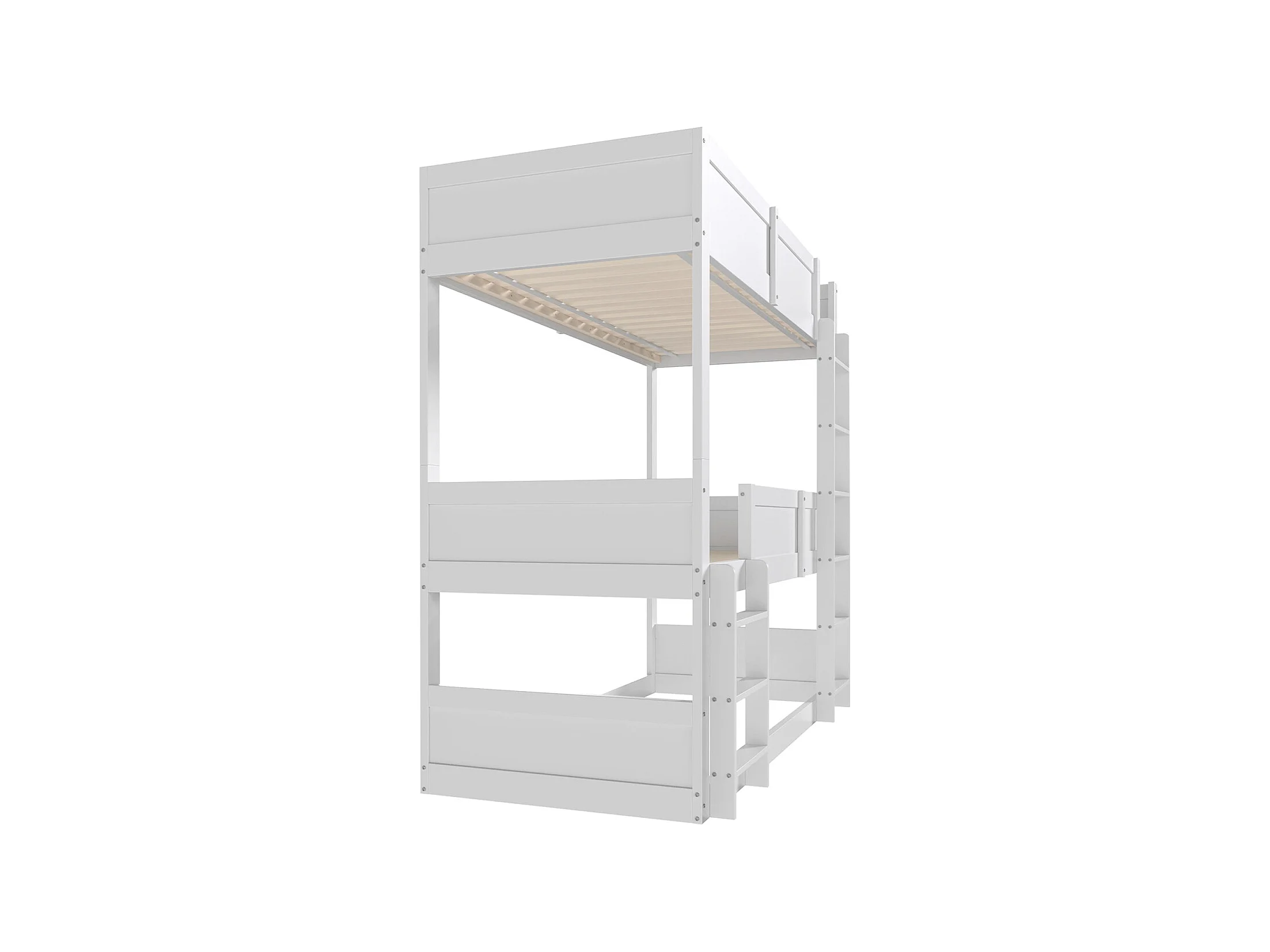 Lit Superposé 3 Places, Lit Enfant Blanc 90x200cm avec Barrière de Sécurité,Cadre de Lit Triple,Échelle et Sommier à Lattes,Bois