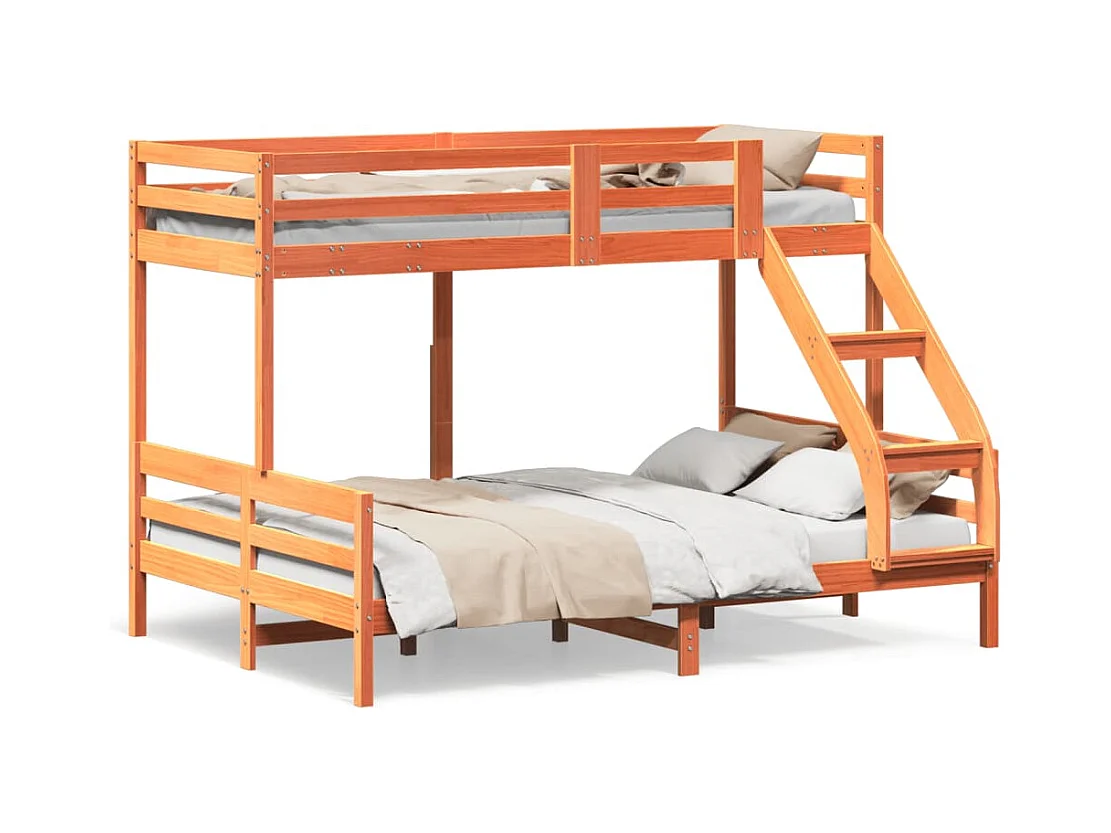 Lit superposé 80x200-140x200 cire marron bois de pin massif