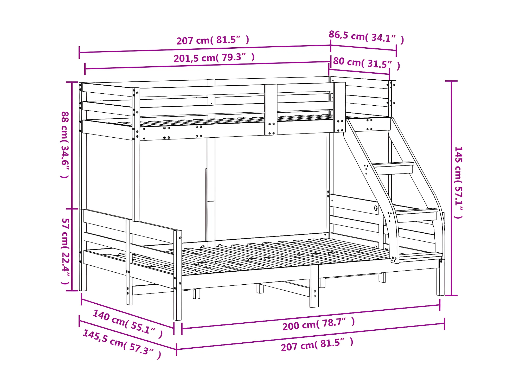 Lit superposé 80x200/140x200 cm blanc bois de pin massif