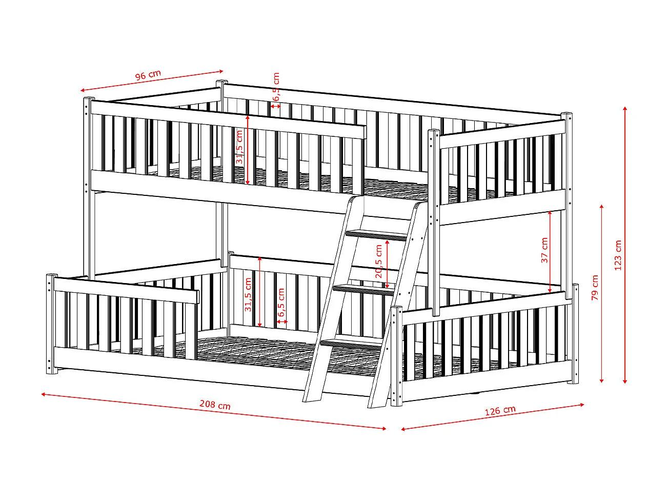Lit superposé 90-120x200 au sol sommiers inclus Léane Blanc