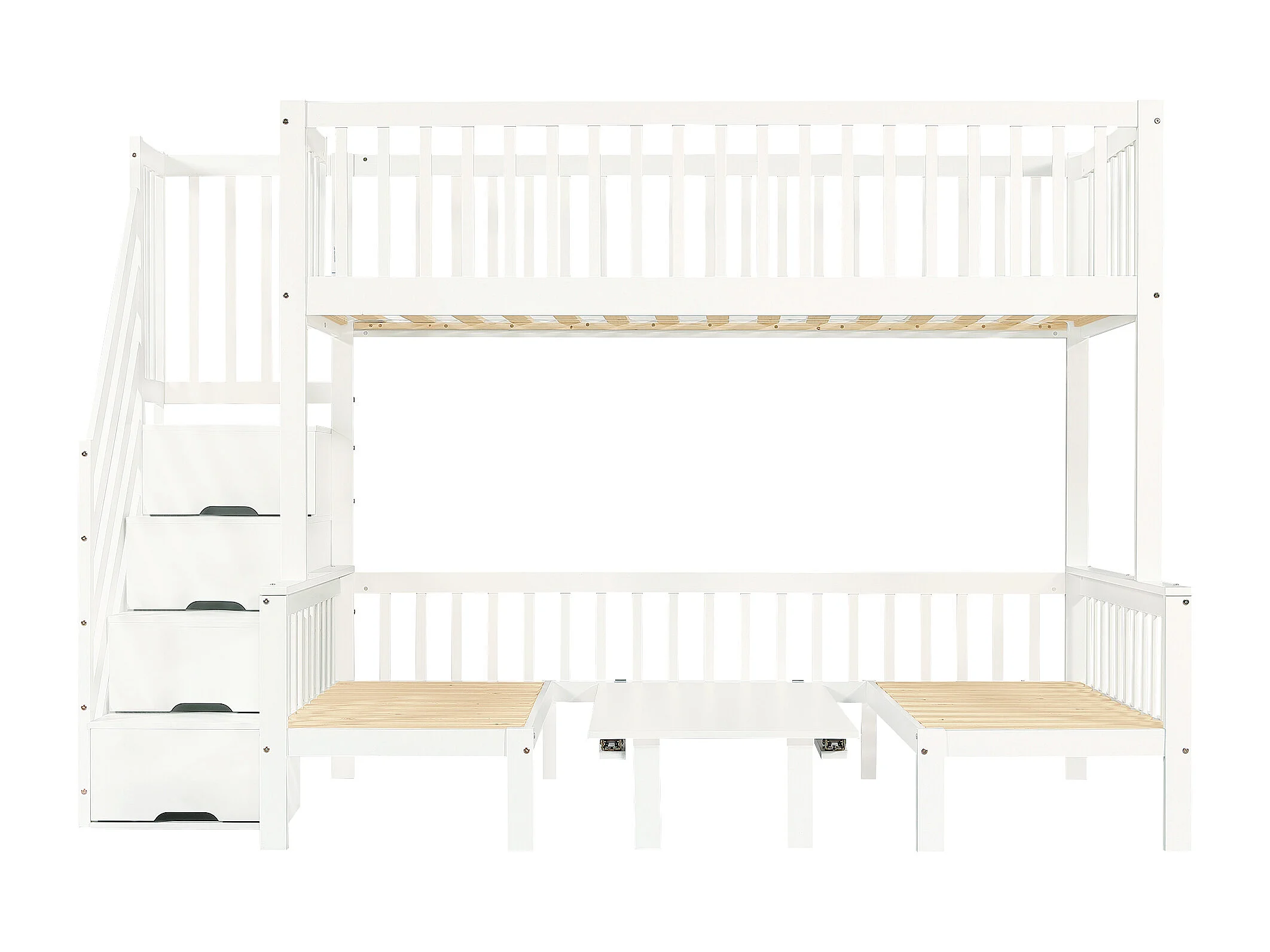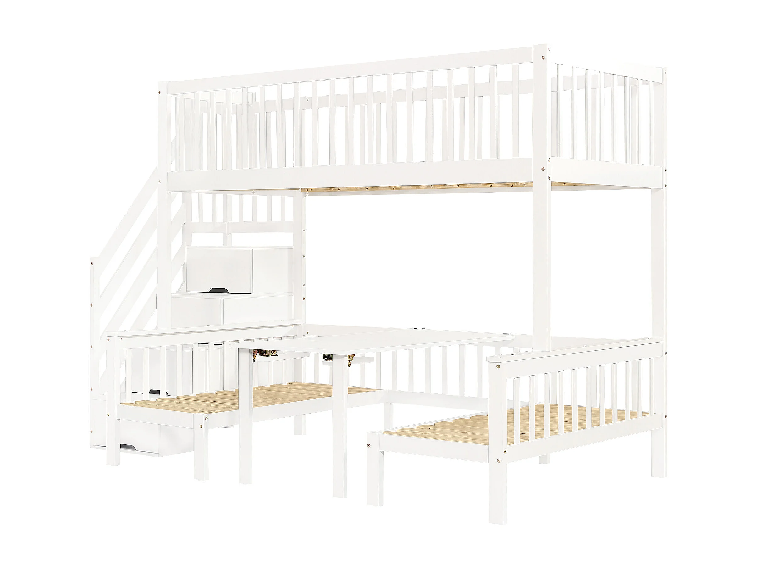 Lit superposé 90/120x200 cm, table et canapé peuvent être convertis en lit, Pin et MDF, blanc, sans matelas