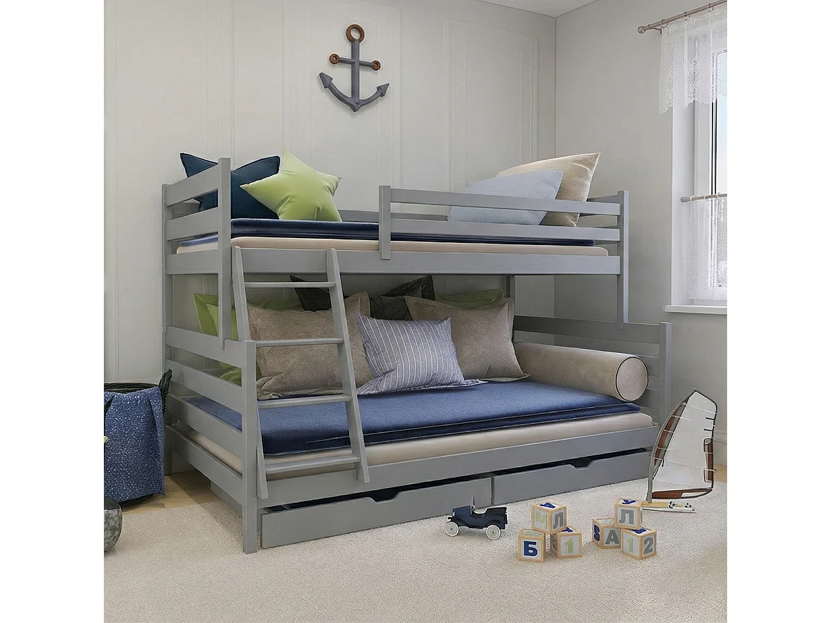 Lit superposé 90-120x200 sommiers et tiroirs inclus Léo Gris