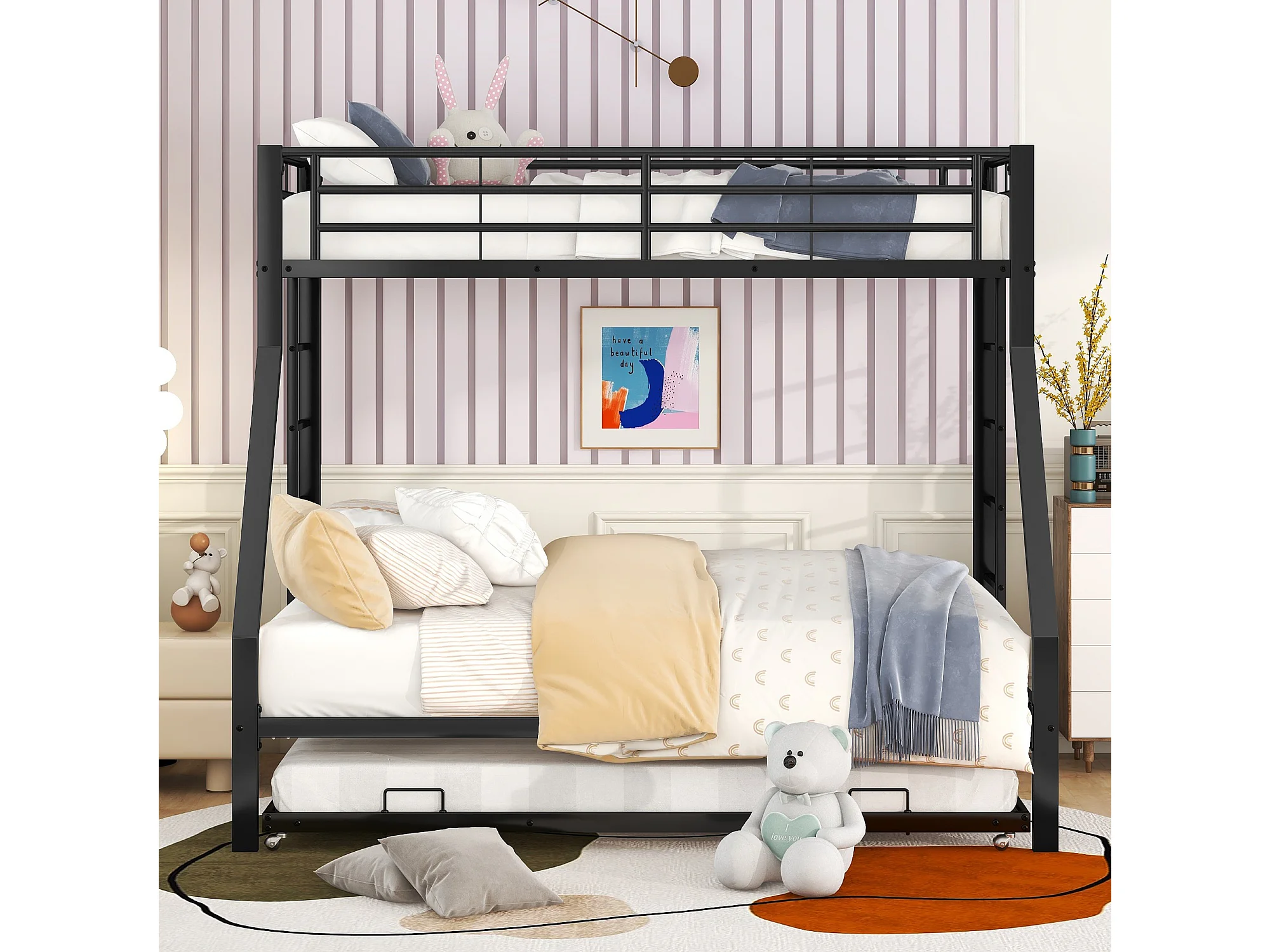 Lit superposé 90(140)x200cm, lit gigogne, échelles, pour enfants et adultes, en métal noir, sans matelas