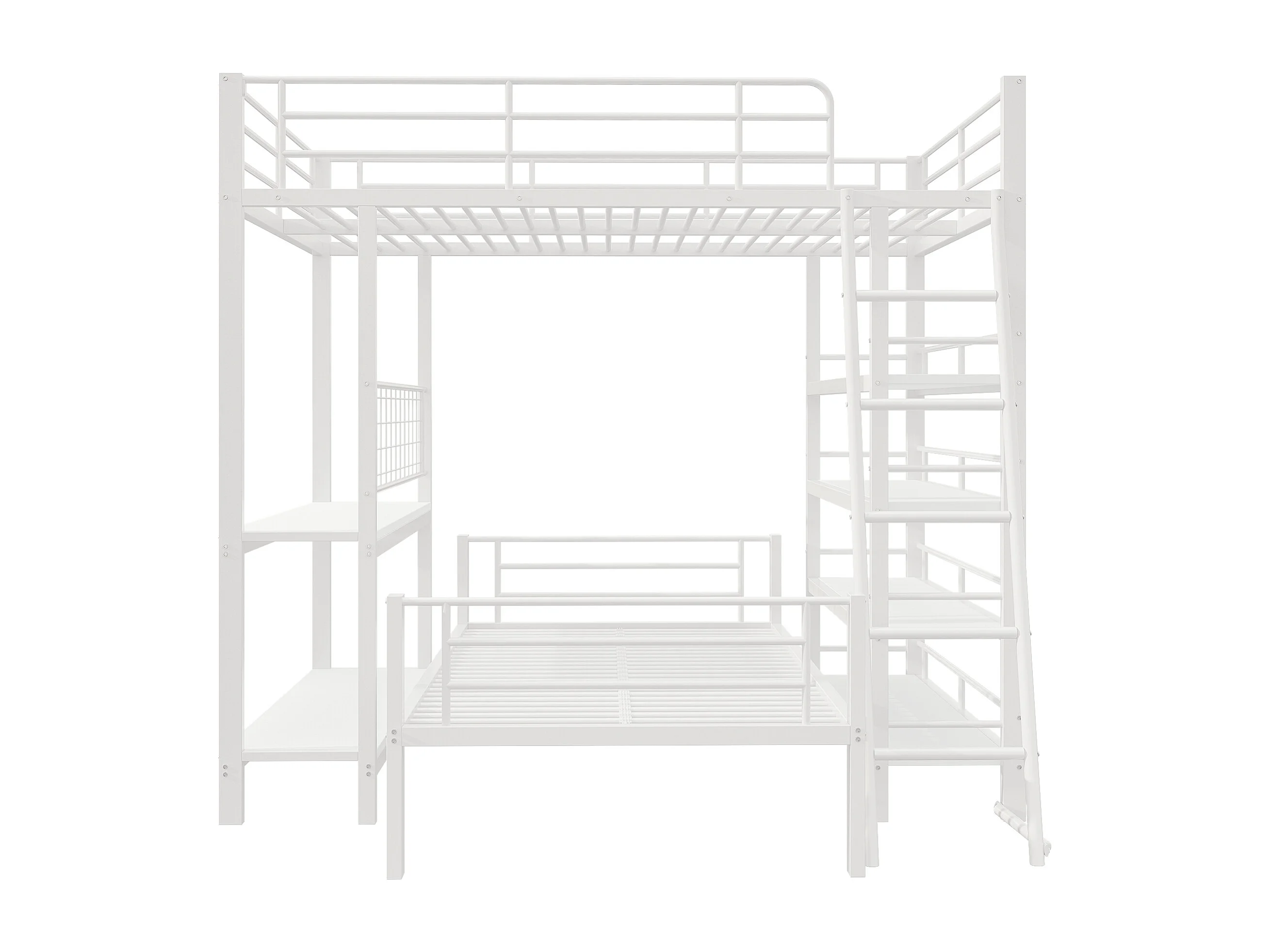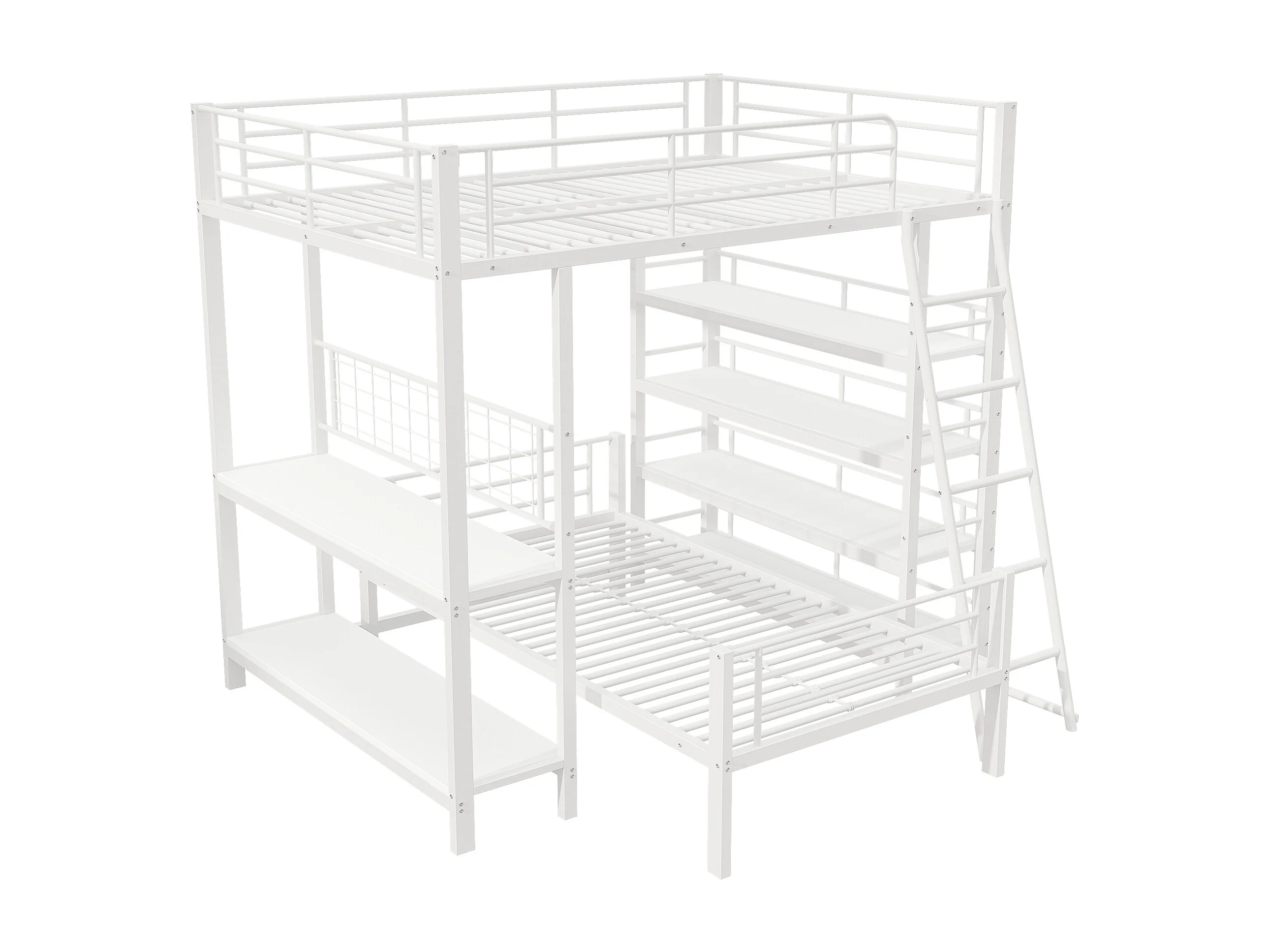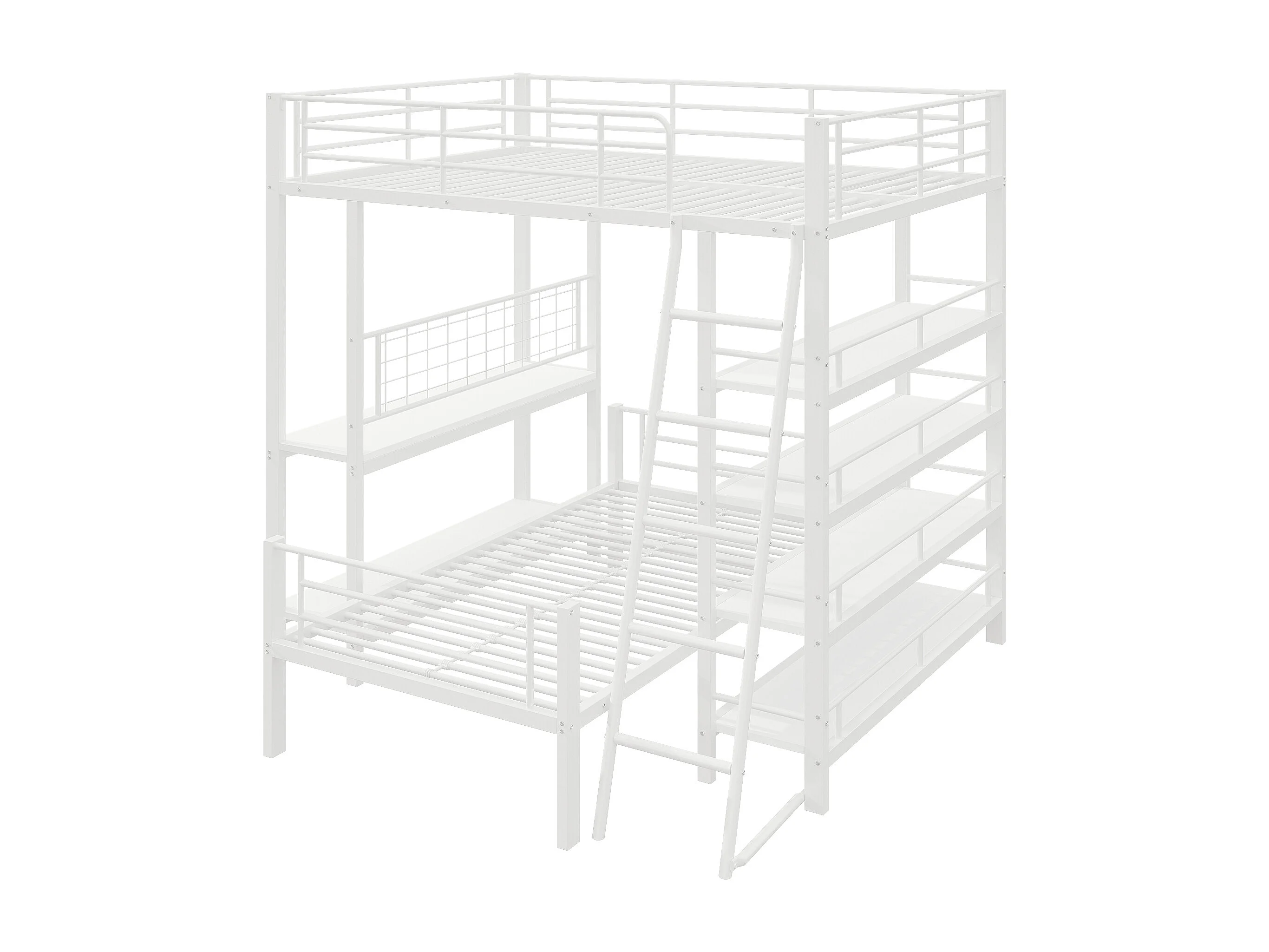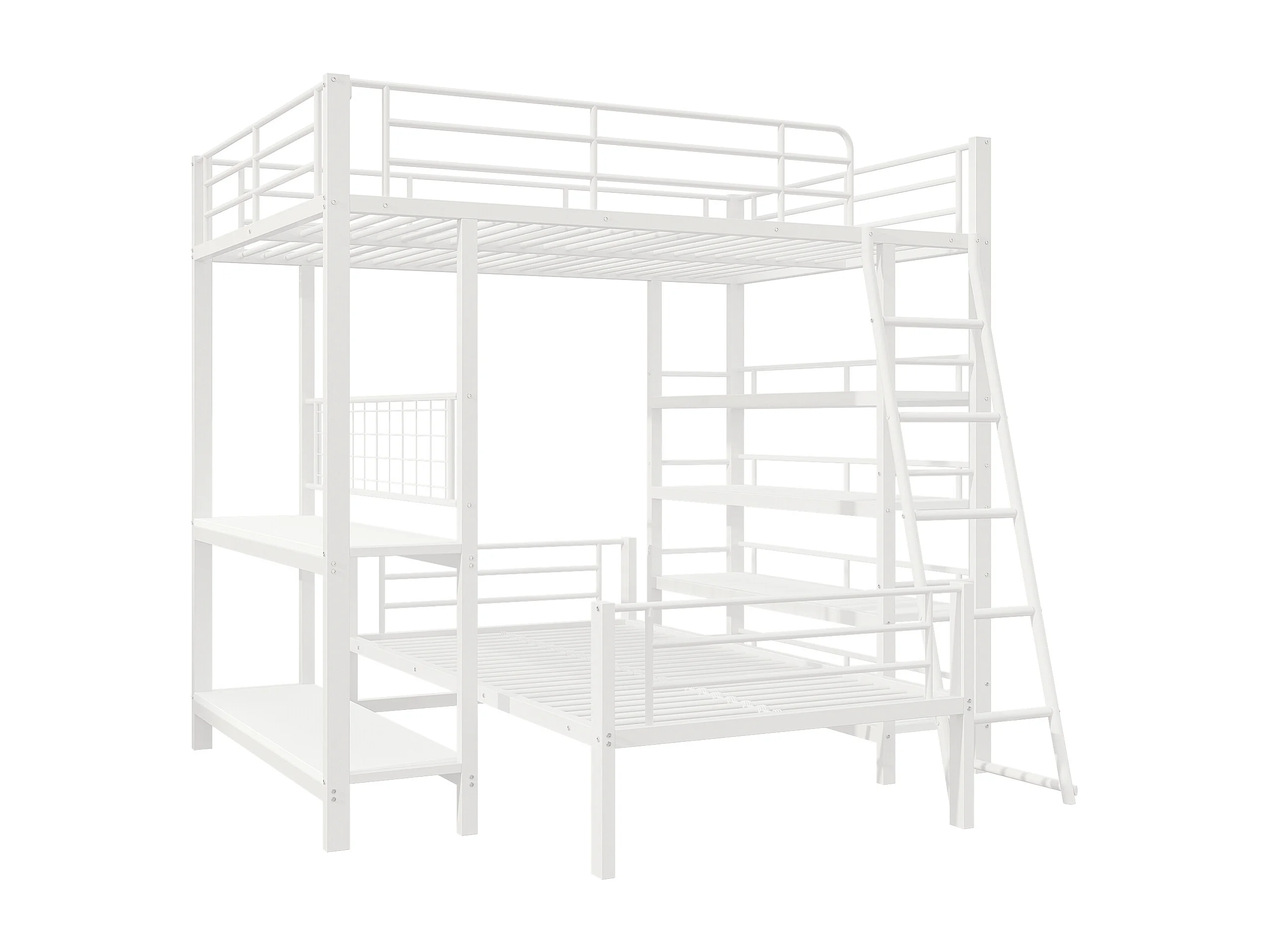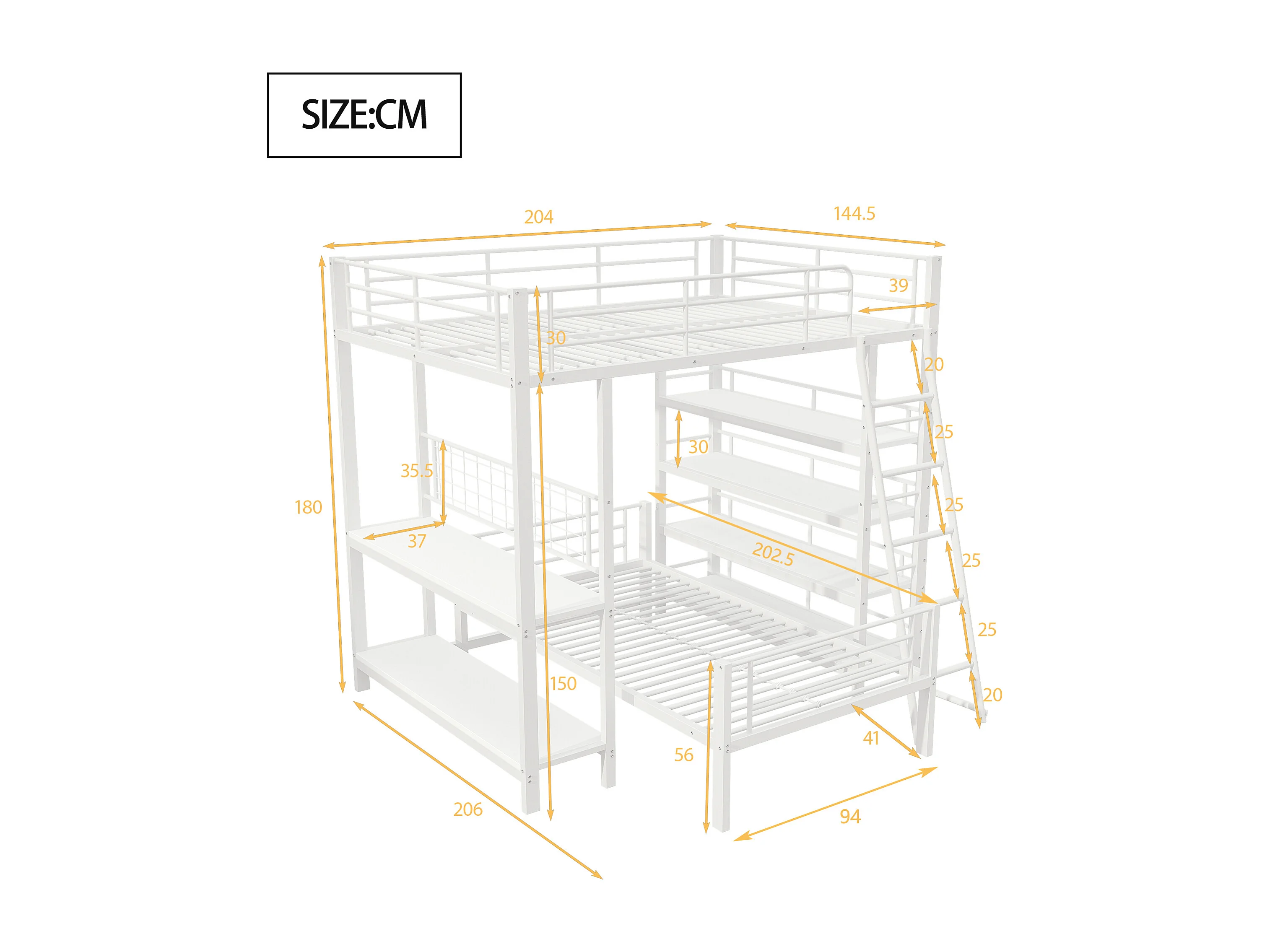 Lit superposé 90/140x200 cm avec rangement, lit mezzanine , 2 sommiers, MDF et métal, blanc, sans matelas