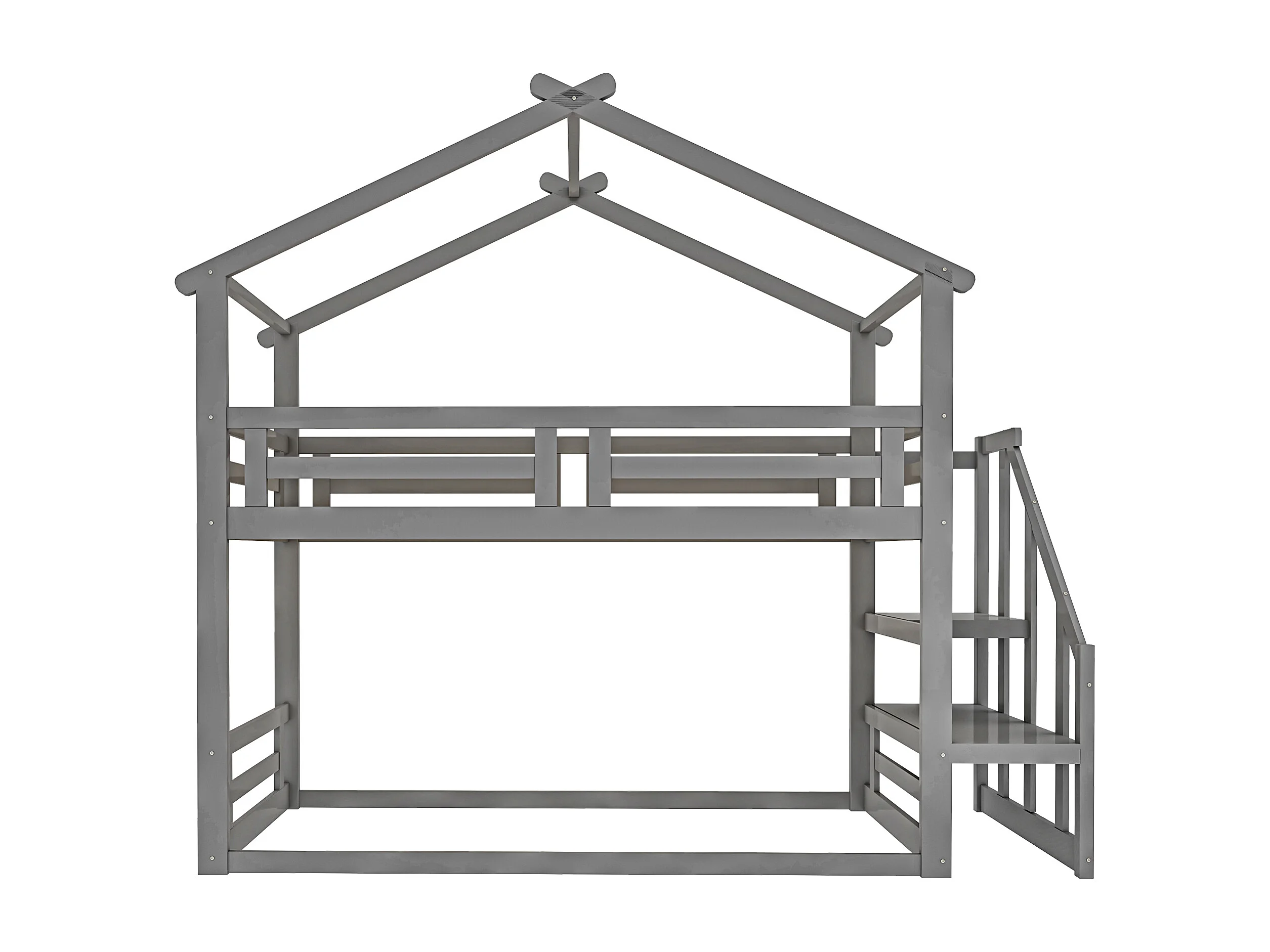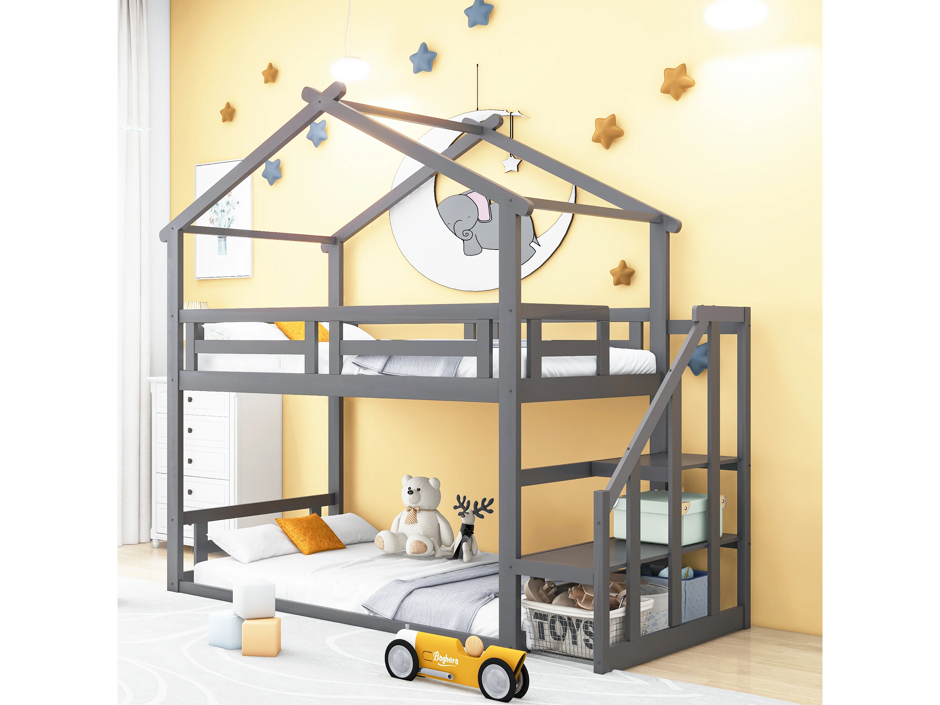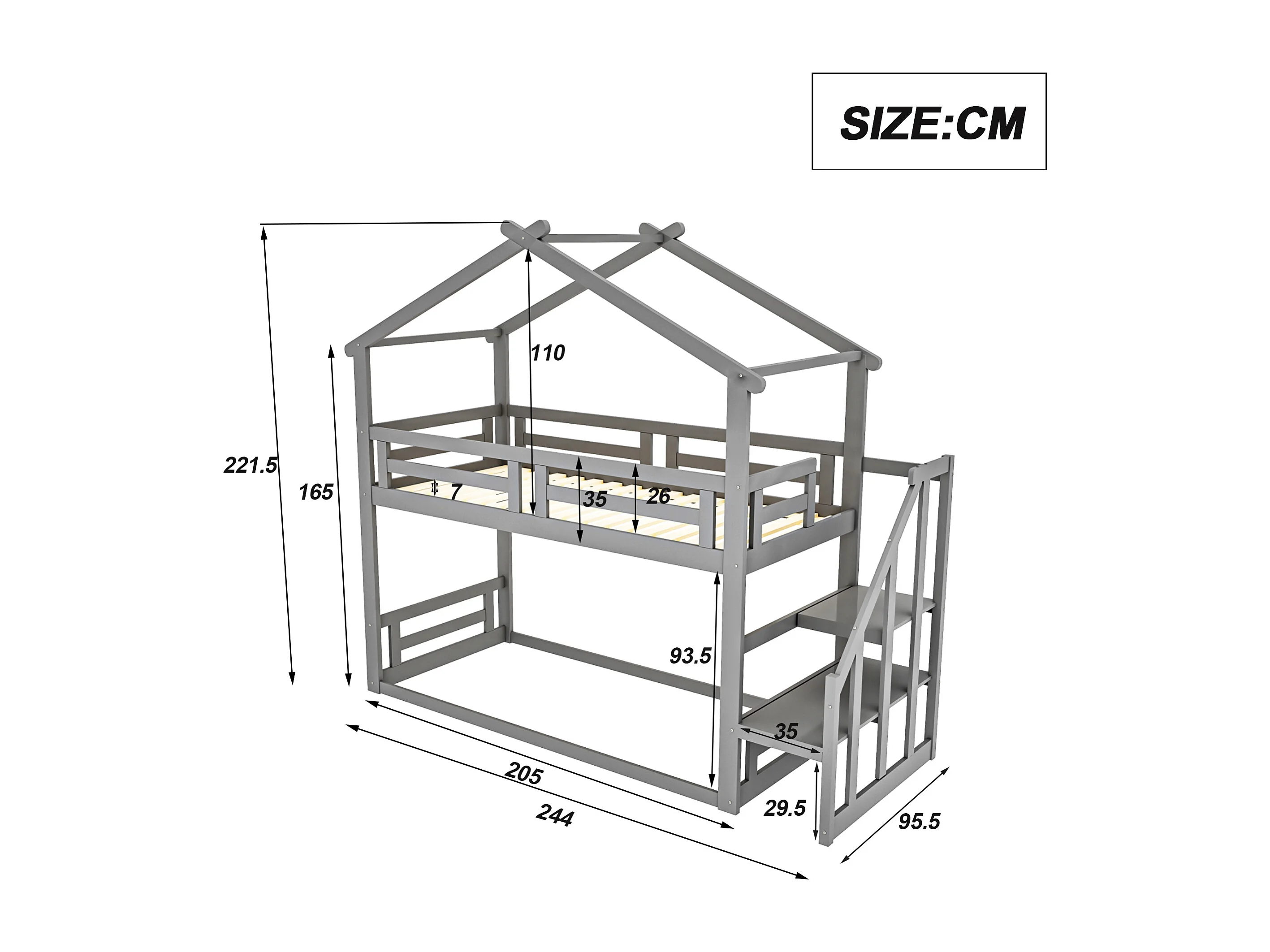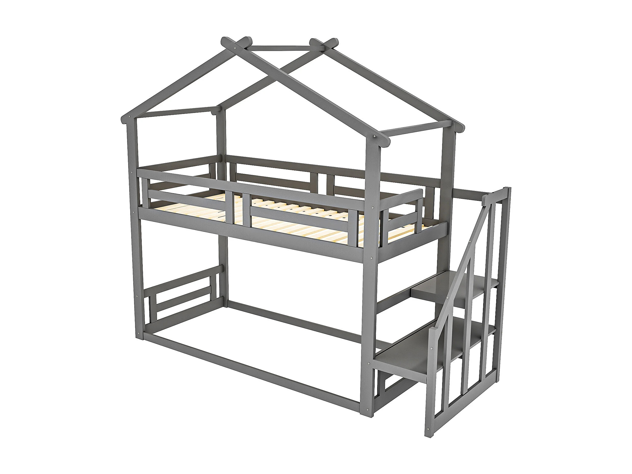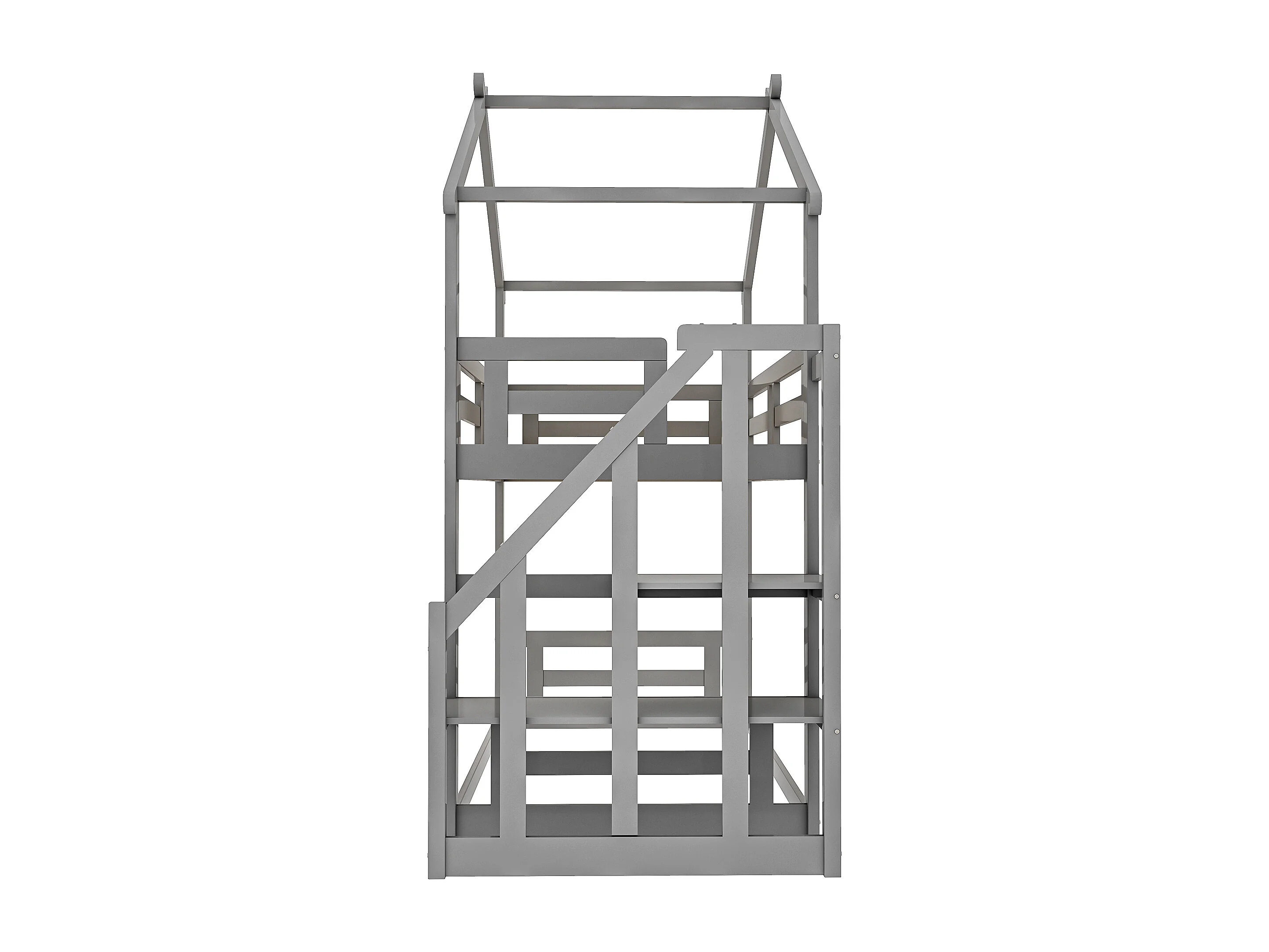 Lit superposé 90 x 200 cm - avec étagères, sommier à lattes - en pin - gris - sans matelas