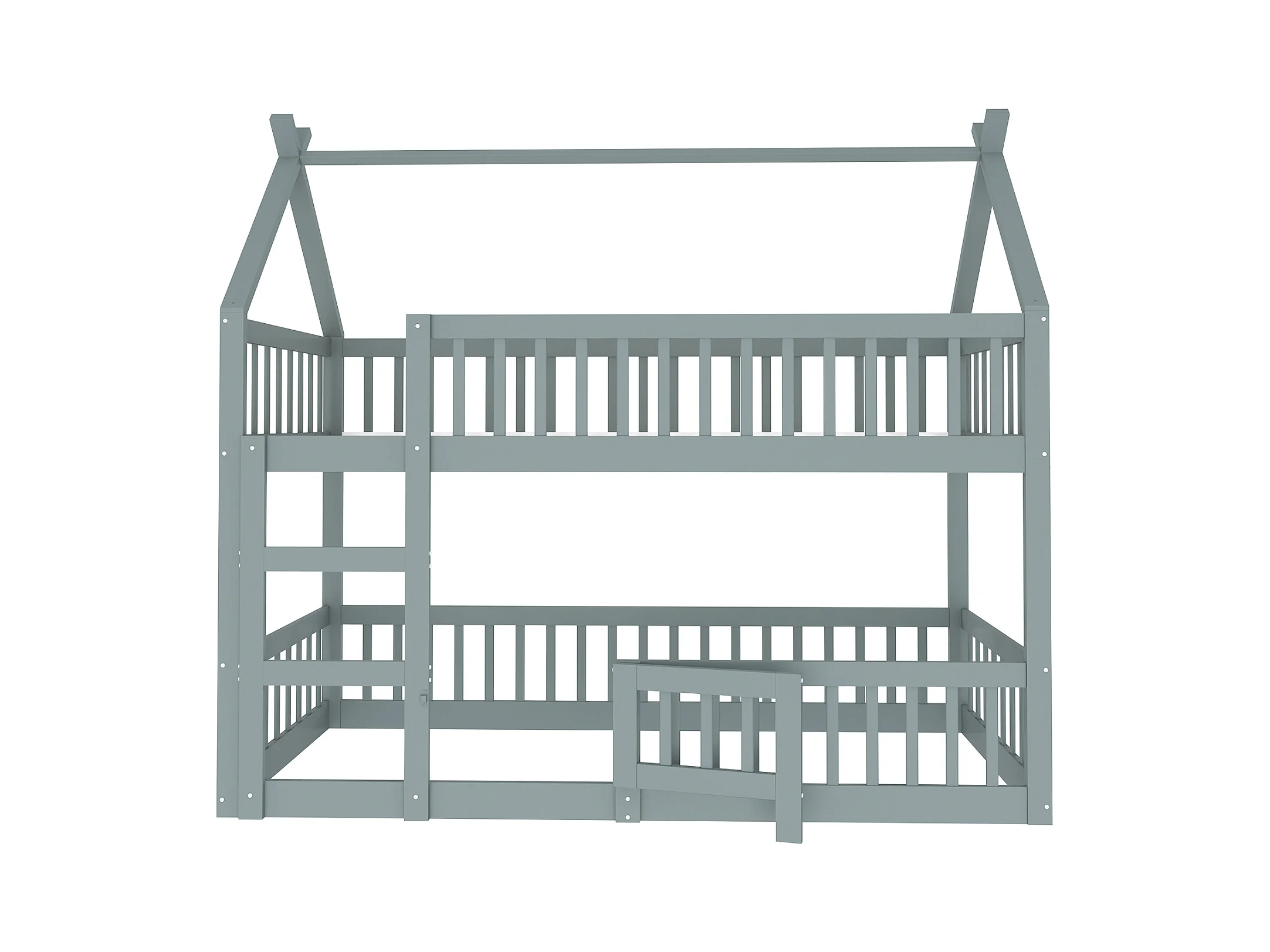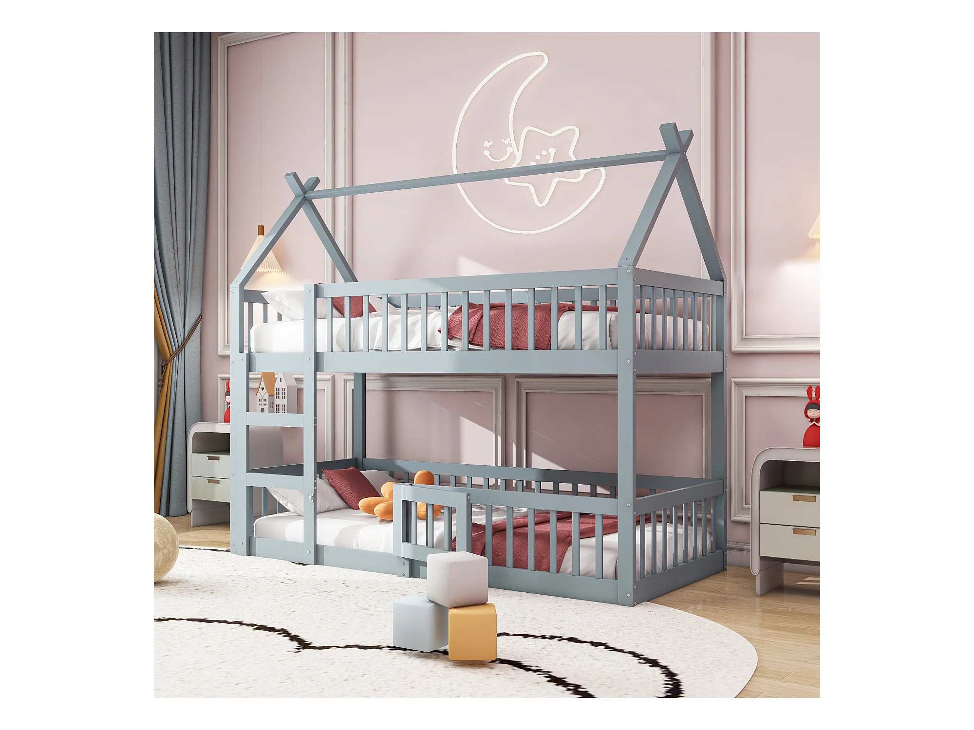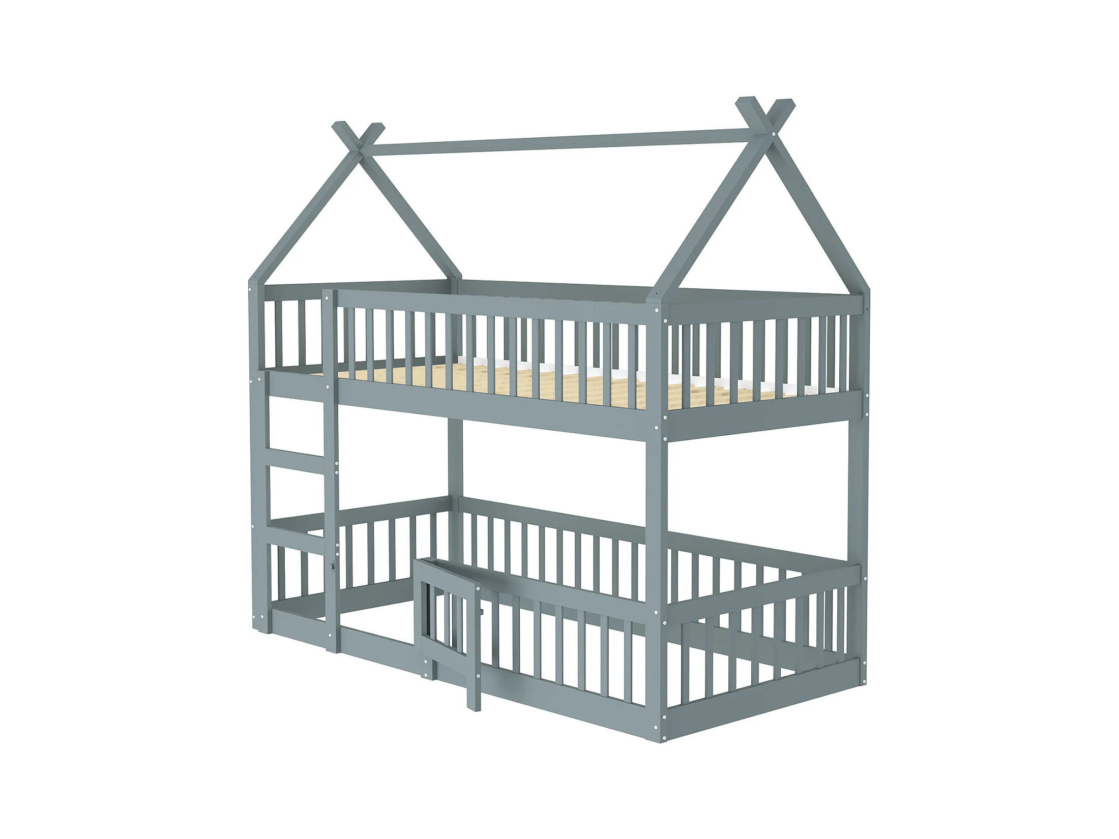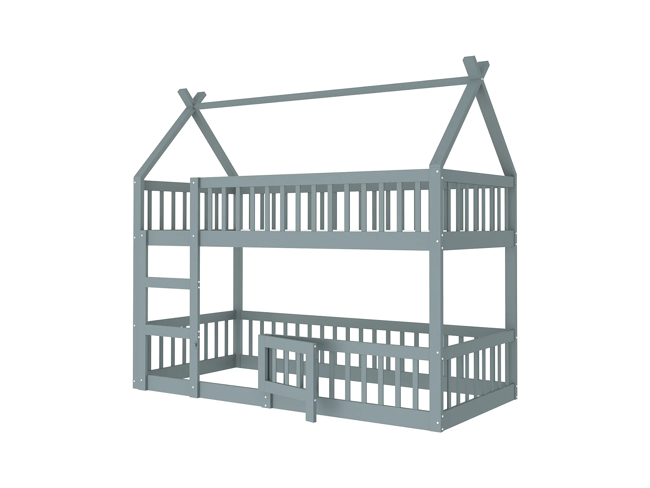 Lit superposé 90 x 200 cm - Lit enfant avec escalier et barrières - lit superposé inférieur avec porte - bois gris
