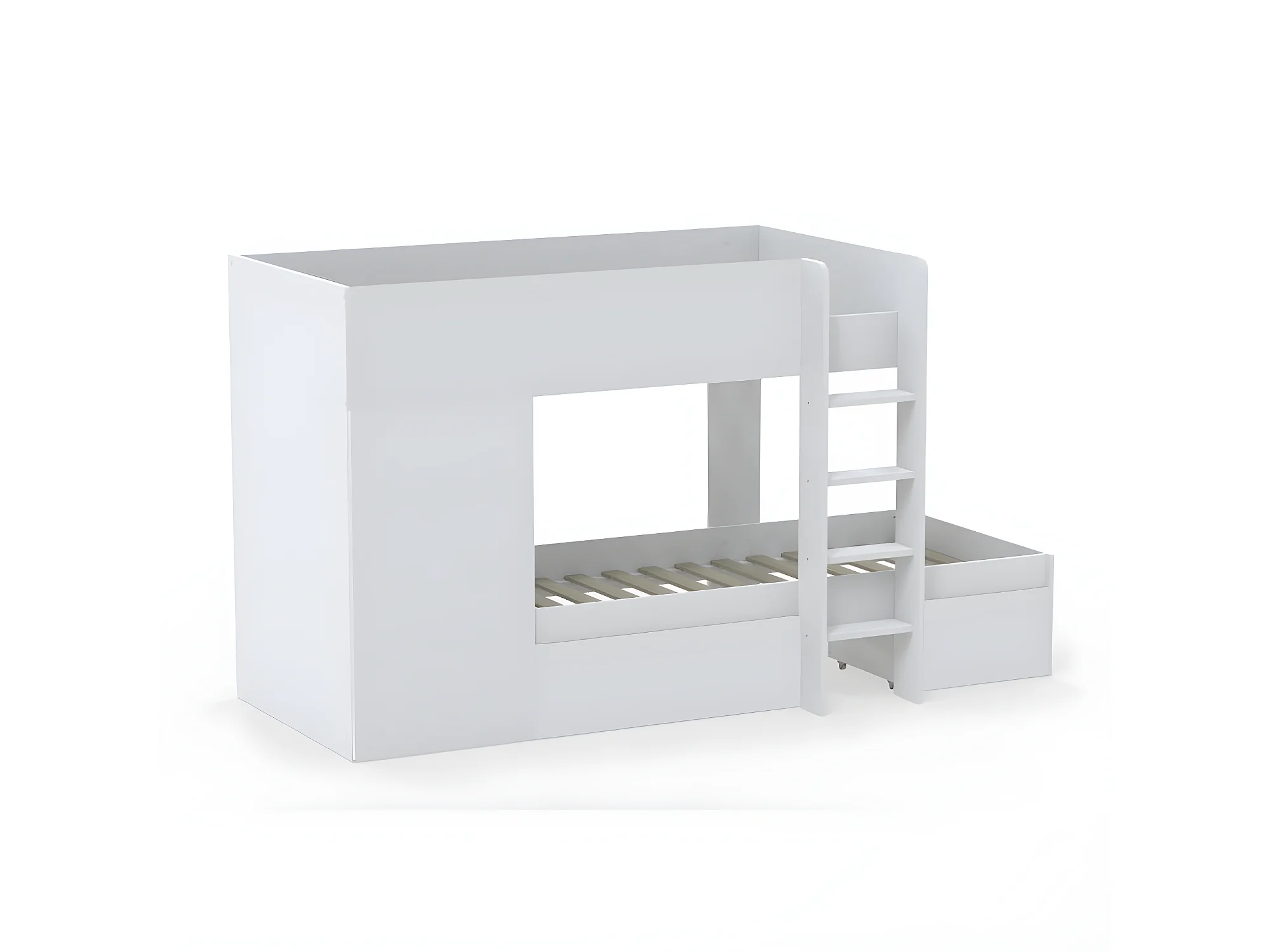 Lit superposé TWIN 90x190 avec armoire et tiroirs + 2 sommiers / Blanc