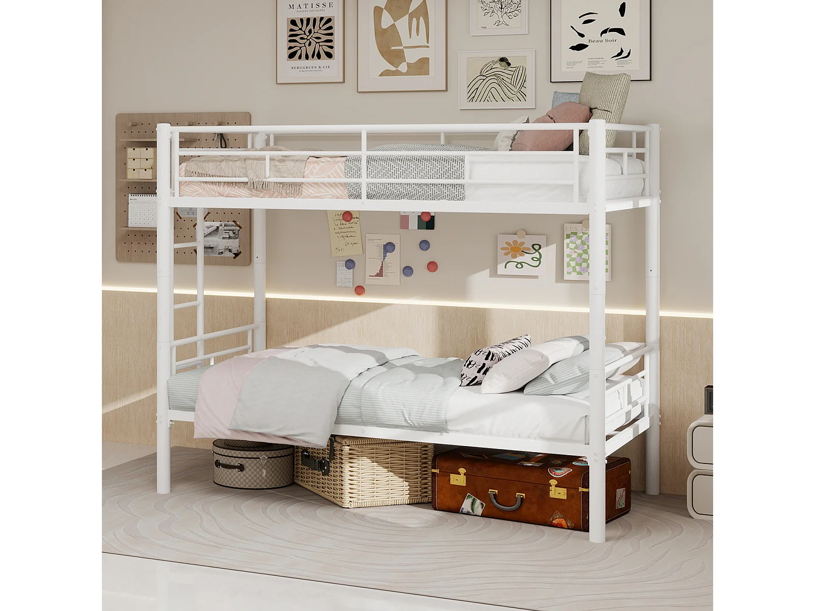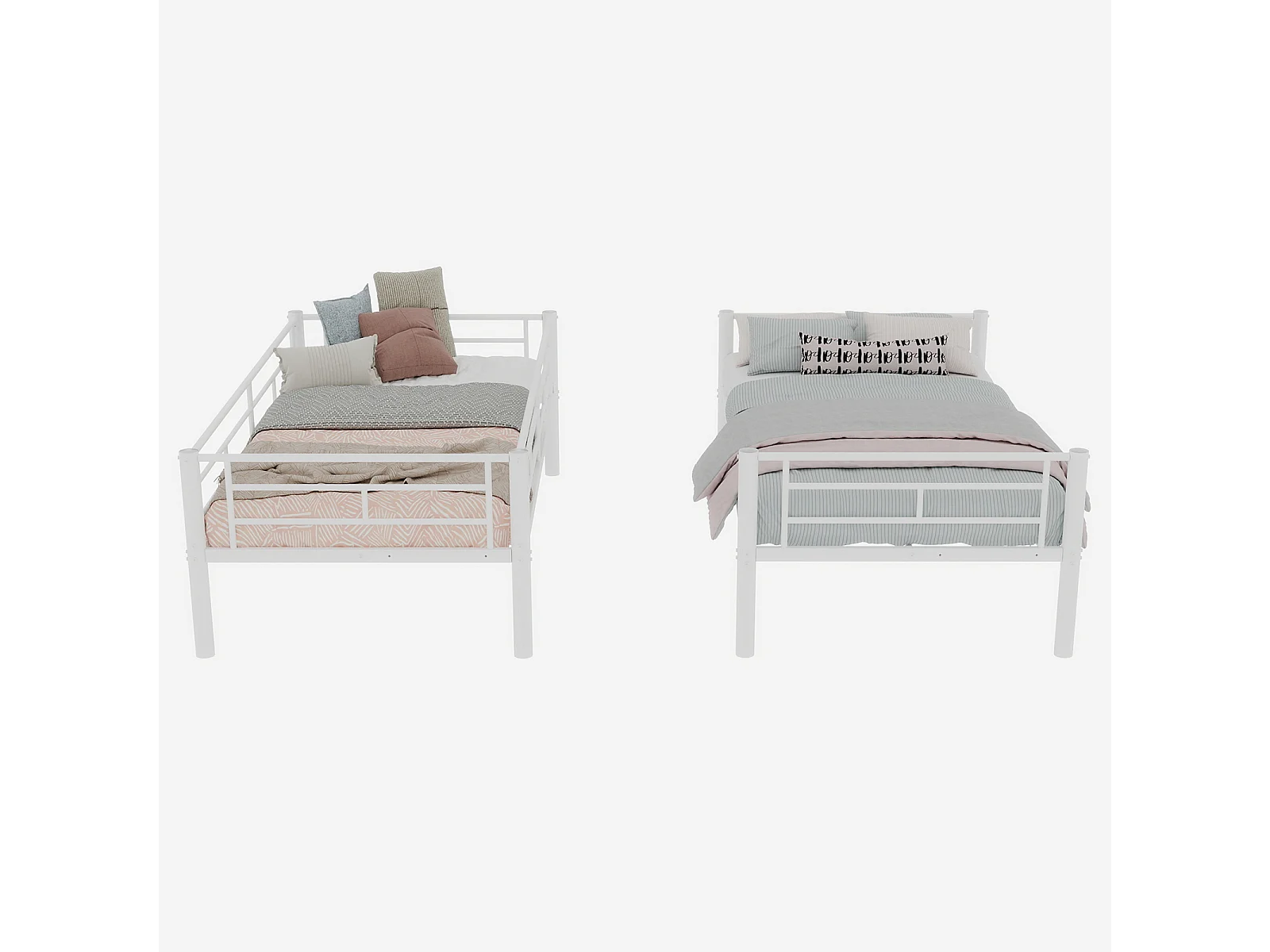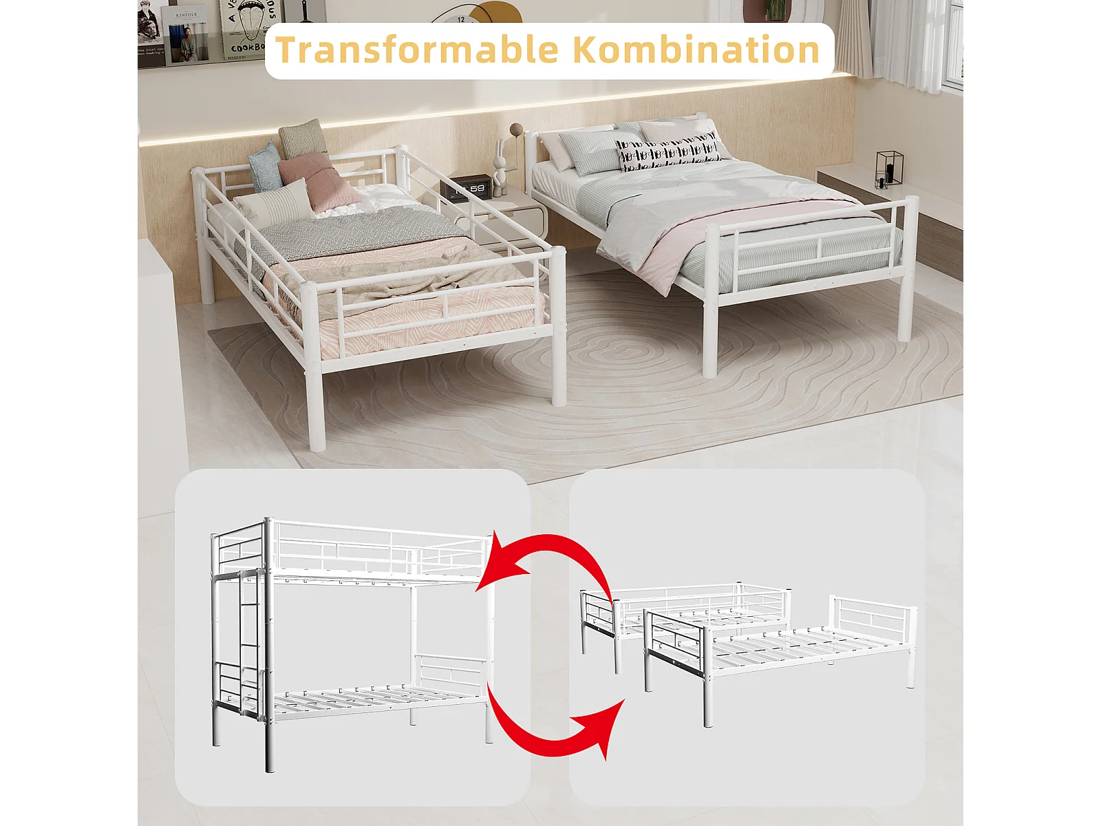 Lit superposé 90x190 cm convertible en 2 lits - Lit enfant en métal blanc