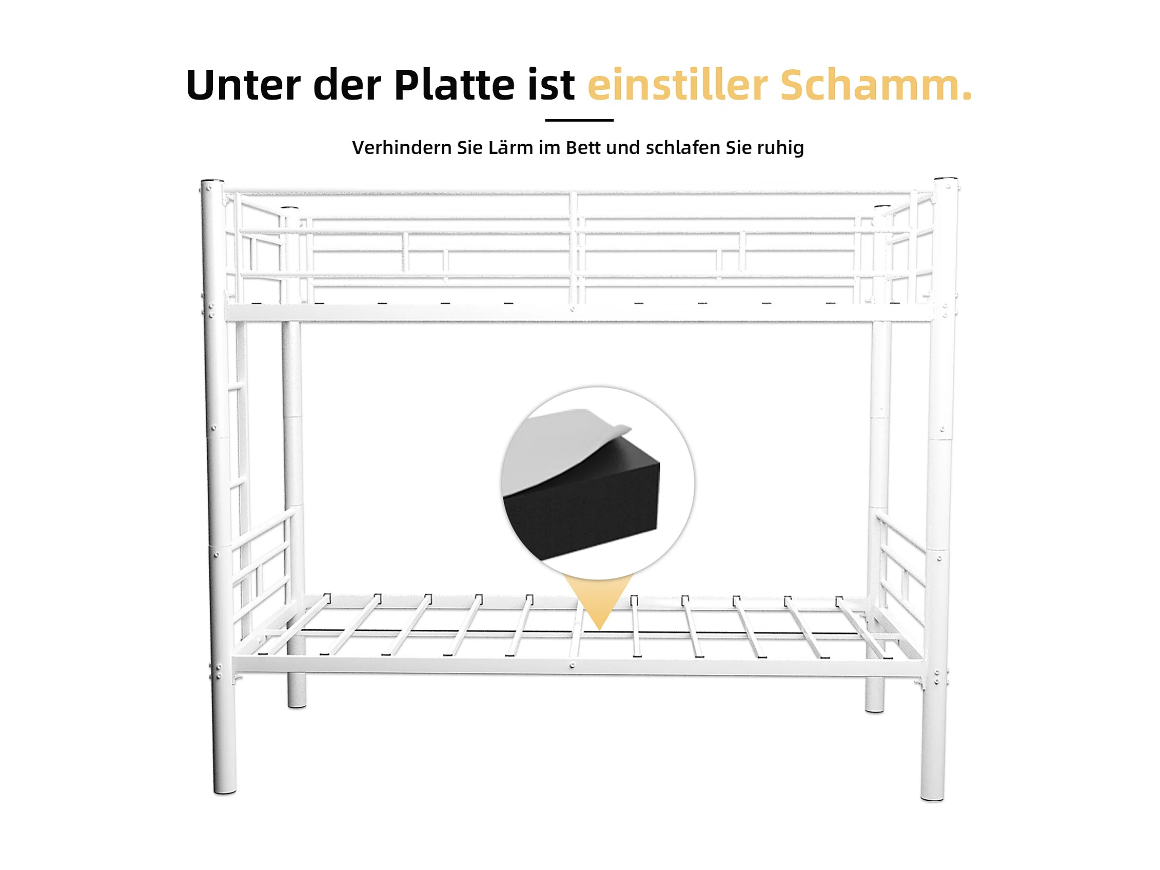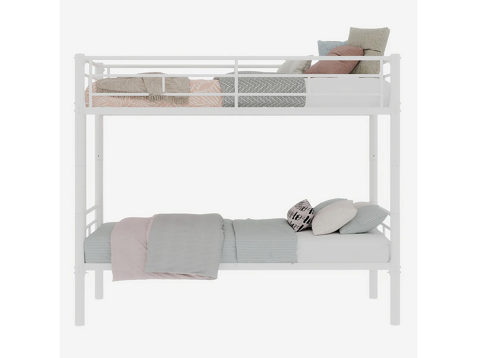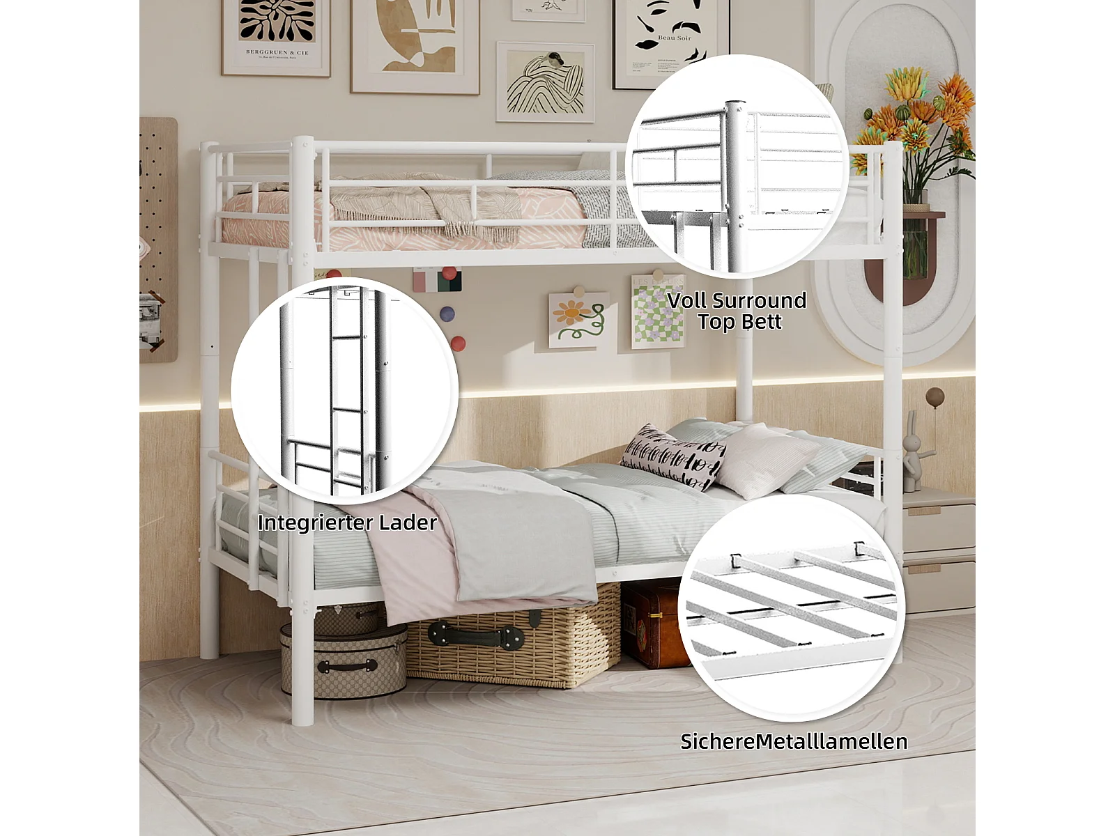 Lit superposé 90x190 cm convertible en 2 lits - Lit enfant en métal blanc