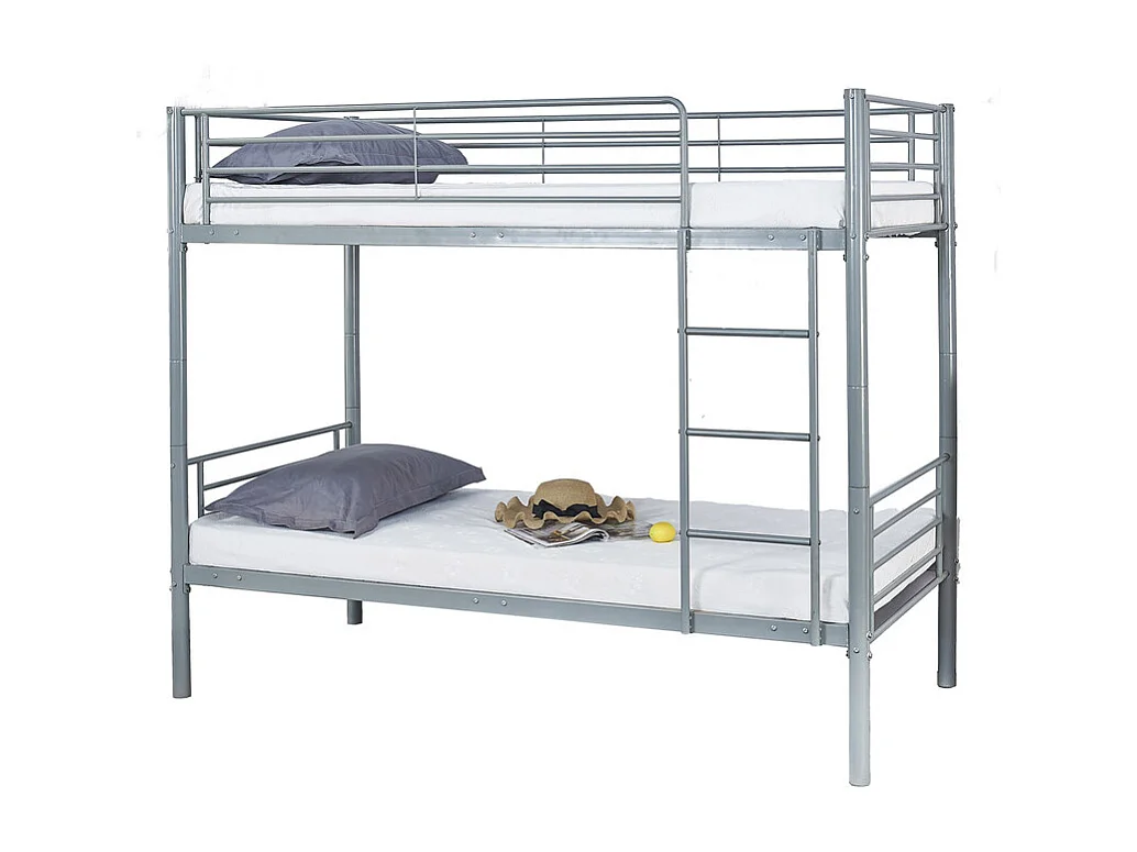 Lit superposé 90x190 cm en métal gris avec échelle et barrière de sécurité - Longueur 195 x Hauteur 165 x Profondeur 96 cm