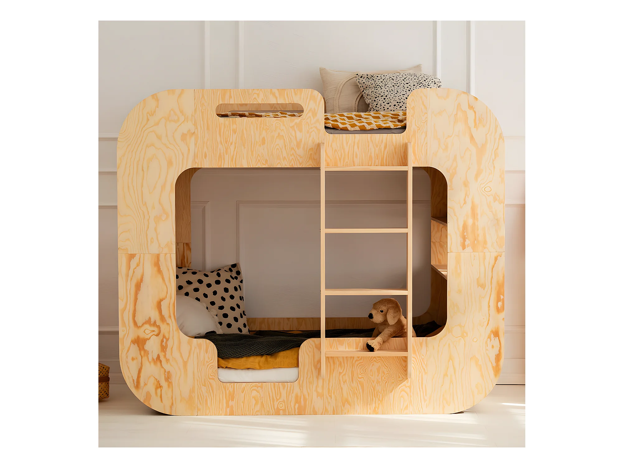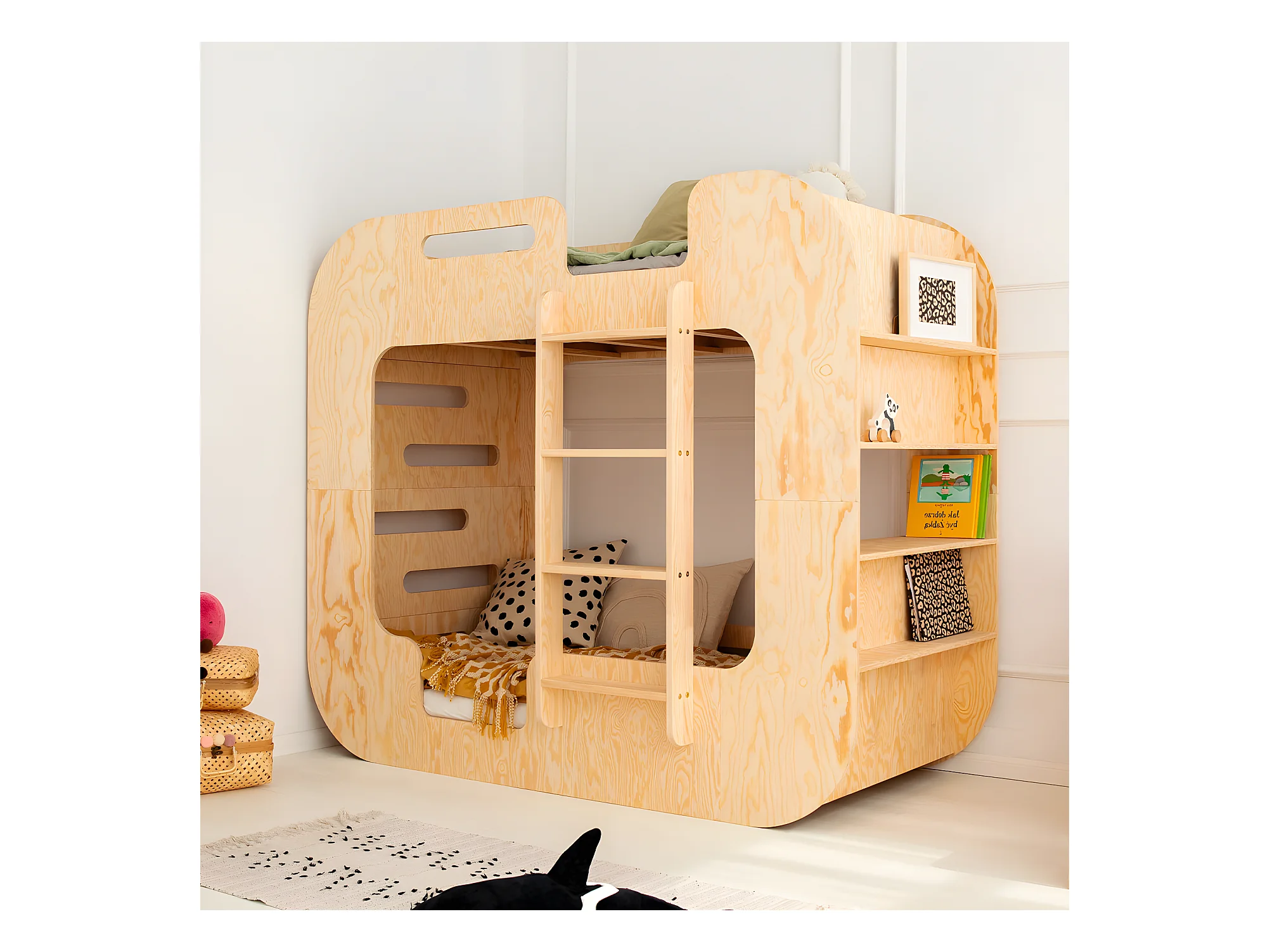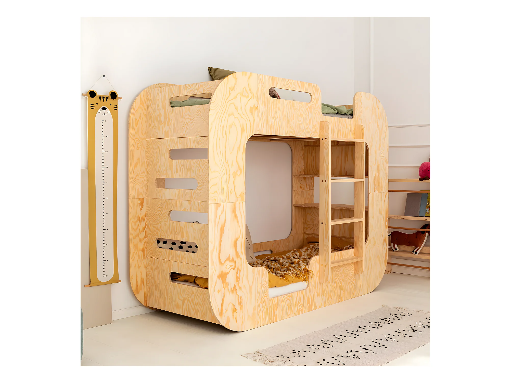 Lit superposé 90x190 échelle à droite sommier inclus Nadège Bois