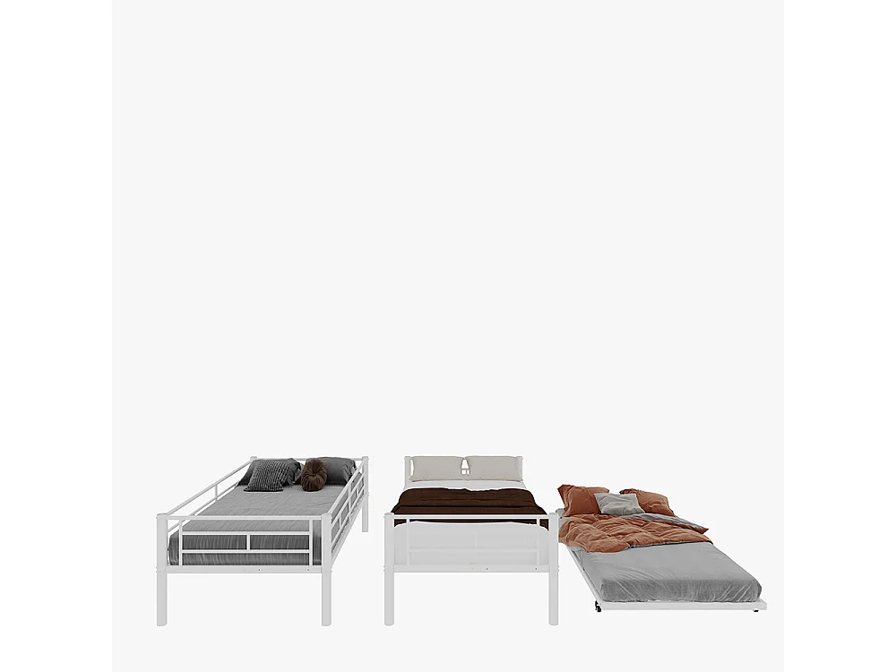 Lit superposé 90x190 Twin sur Twin métal robuste stable silencieux garde-corps blanc