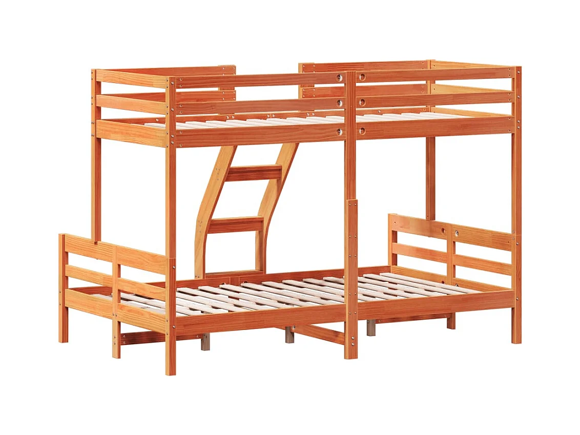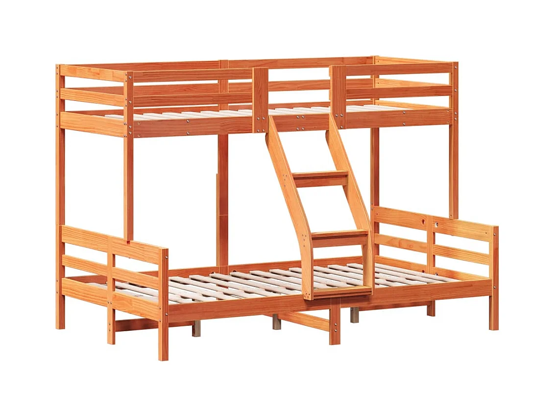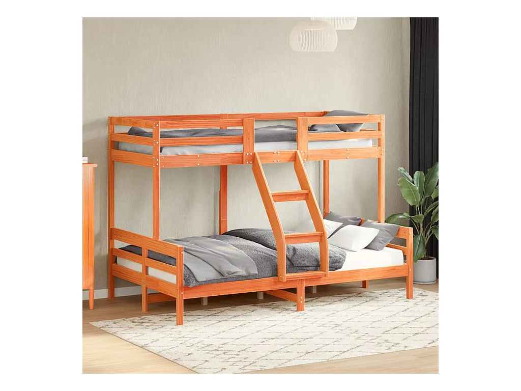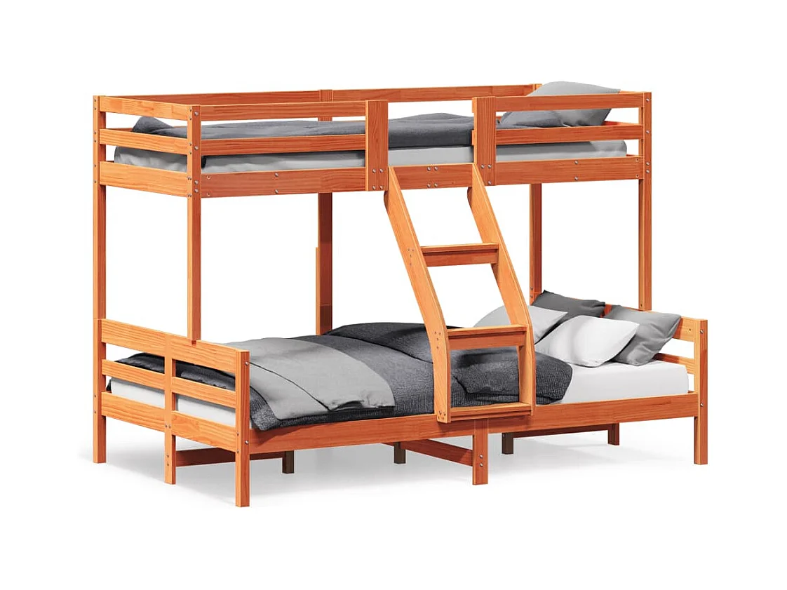 Lit superposé 90x200-120x200 cire marron bois de pin massif