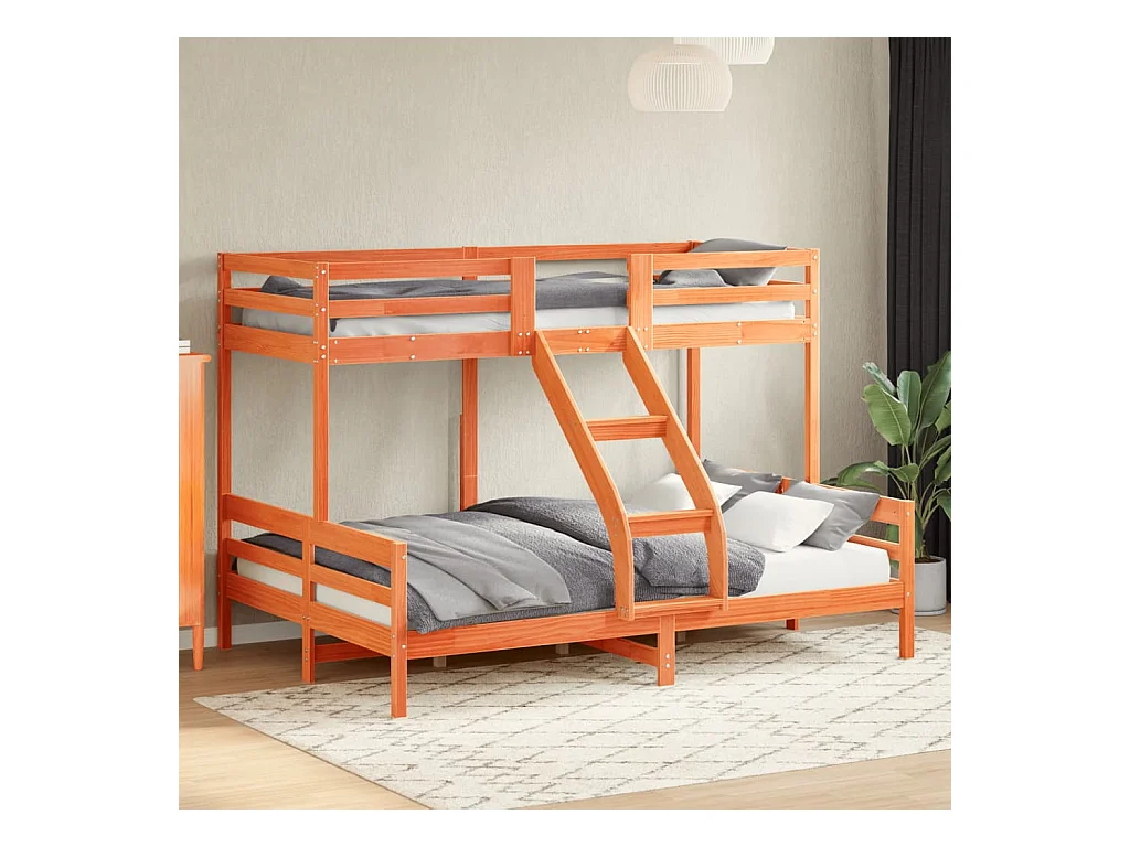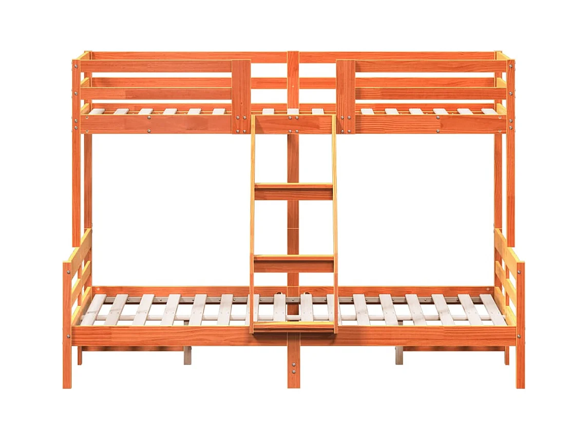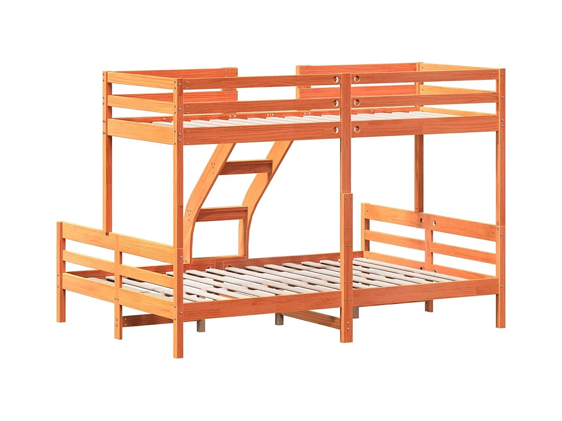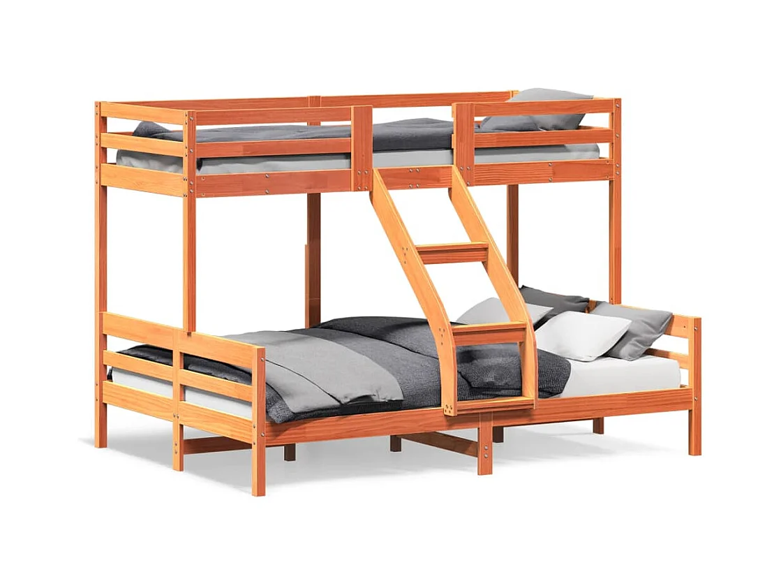 Lit superposé 90x200-140x200 cire marron bois de pin massif