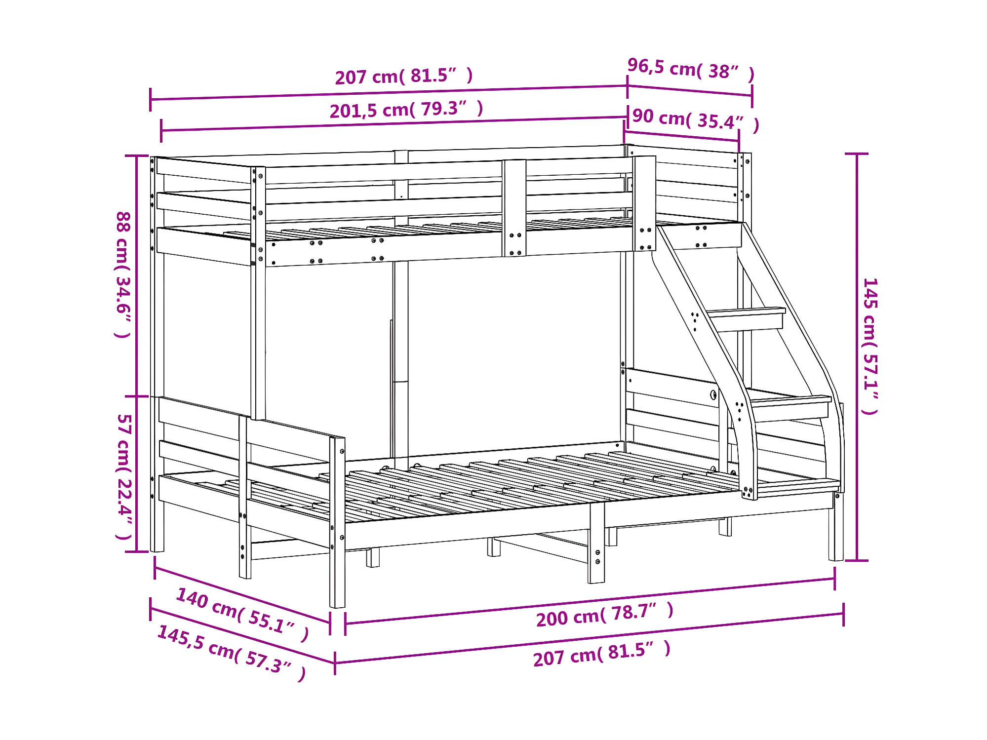 Lit superposé 90x200/140x200 cm blanc bois de pin massif