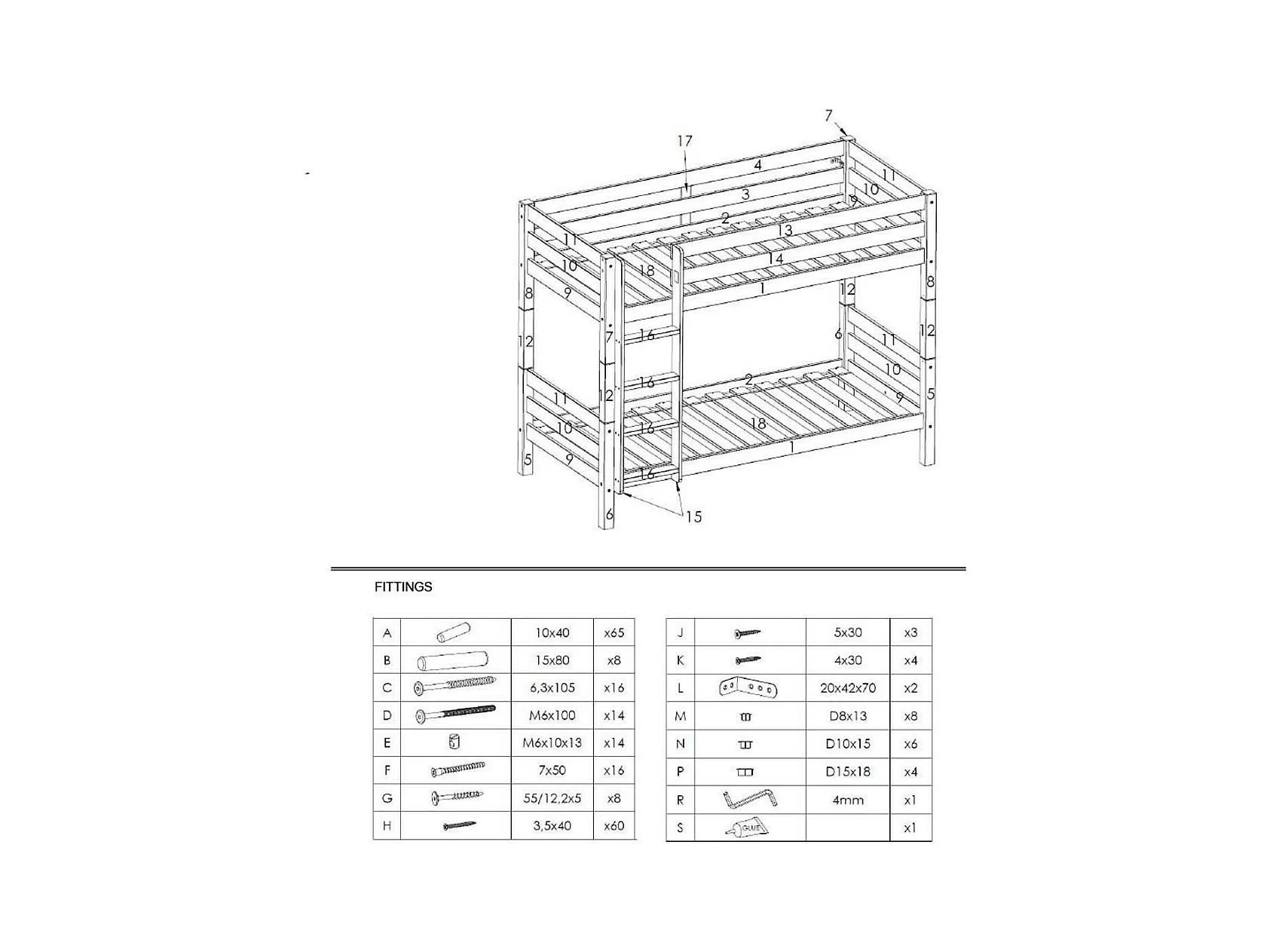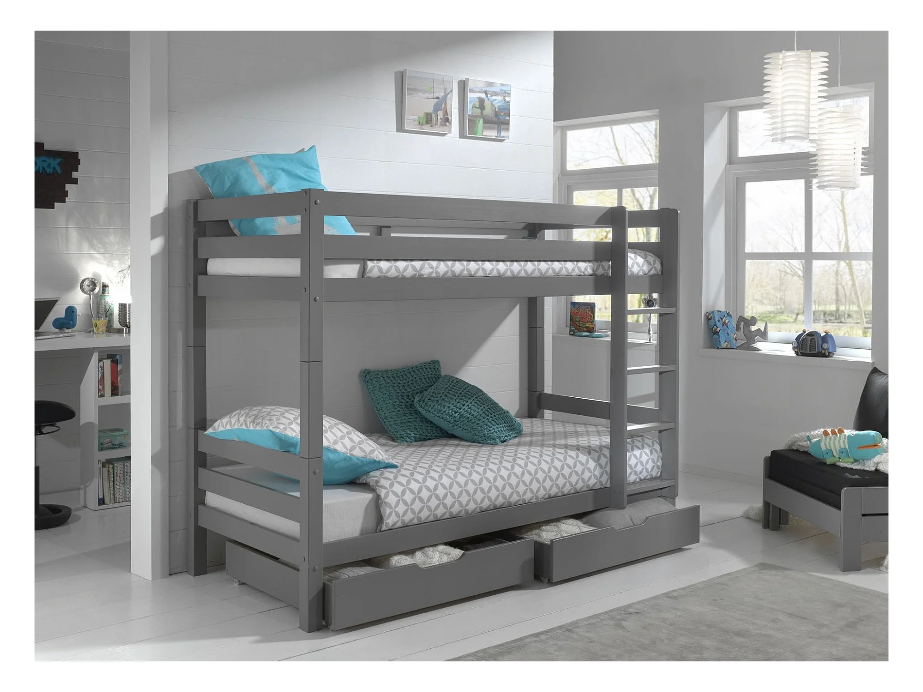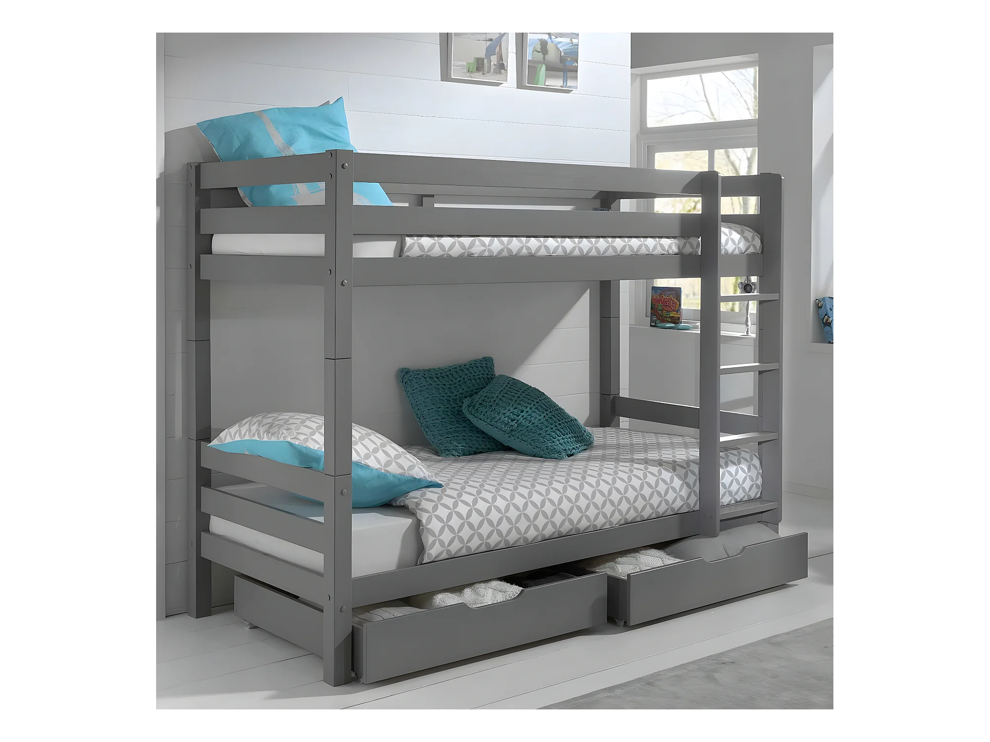 Pack - Lit Superposé Enfant & 2 Tiroirs "Pino II" Gris