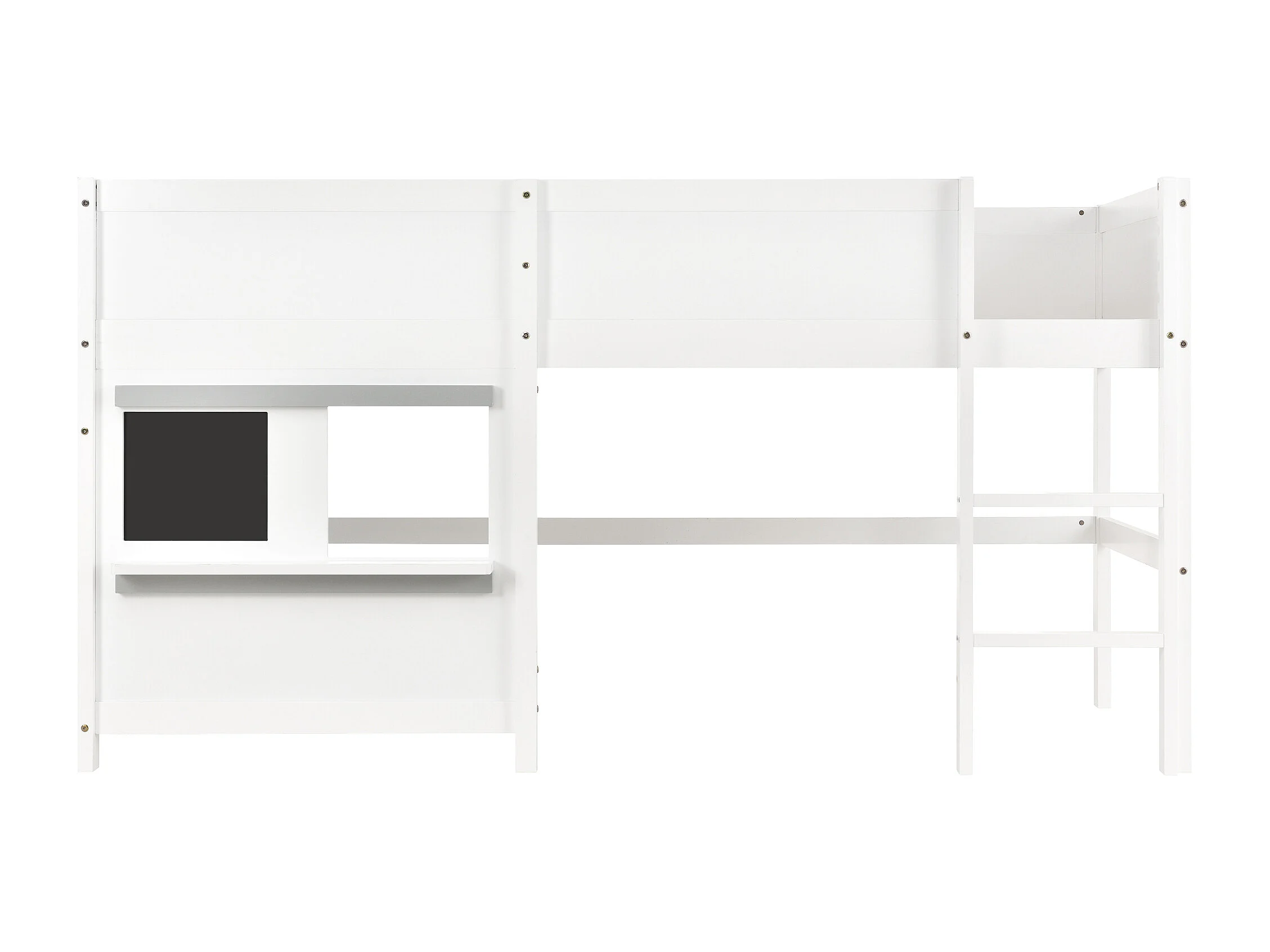Lit superposé 90x200 cm, avec barrières de sécurité, tableau noir, échelle, bois blanc, sans matelas