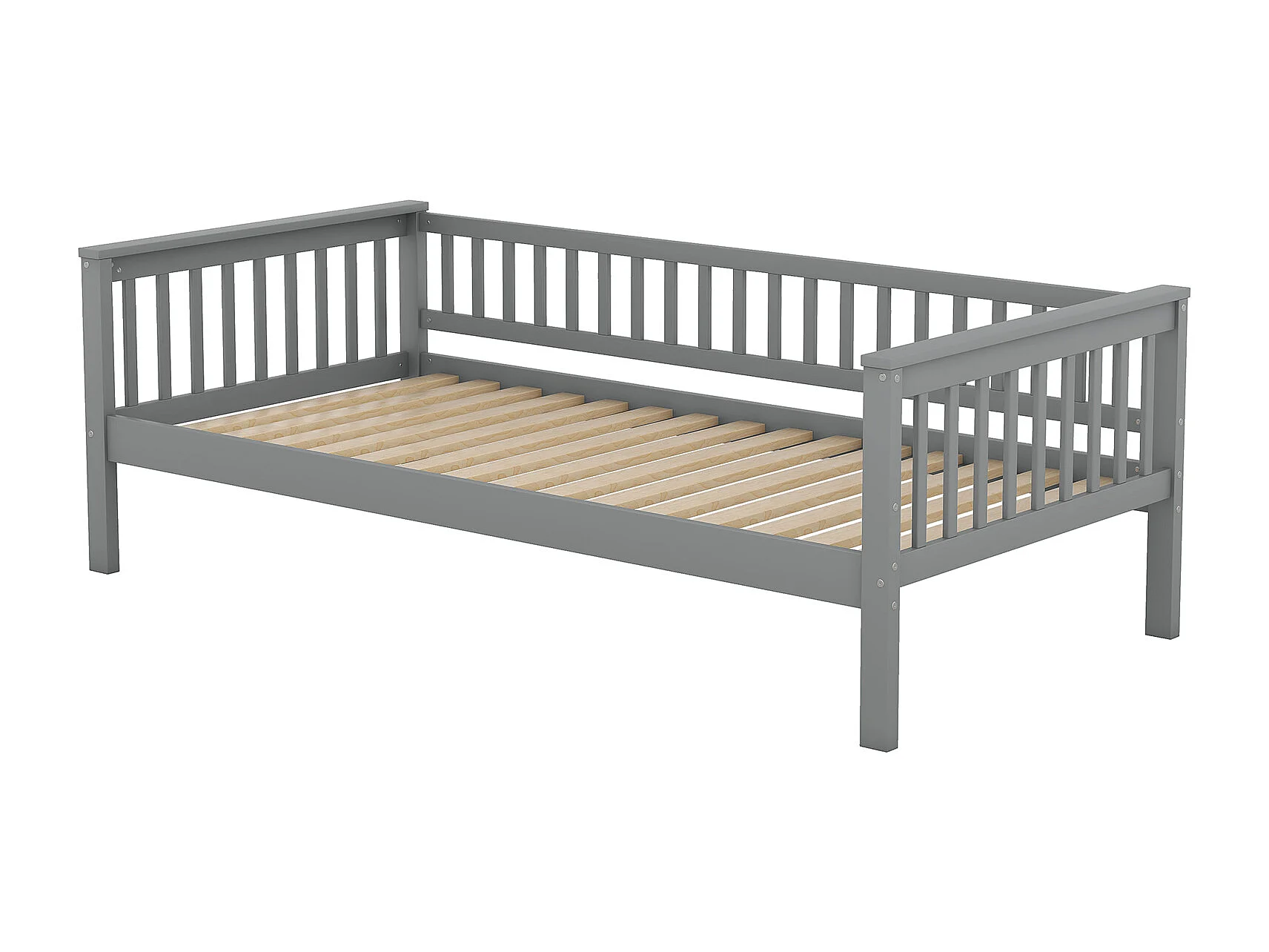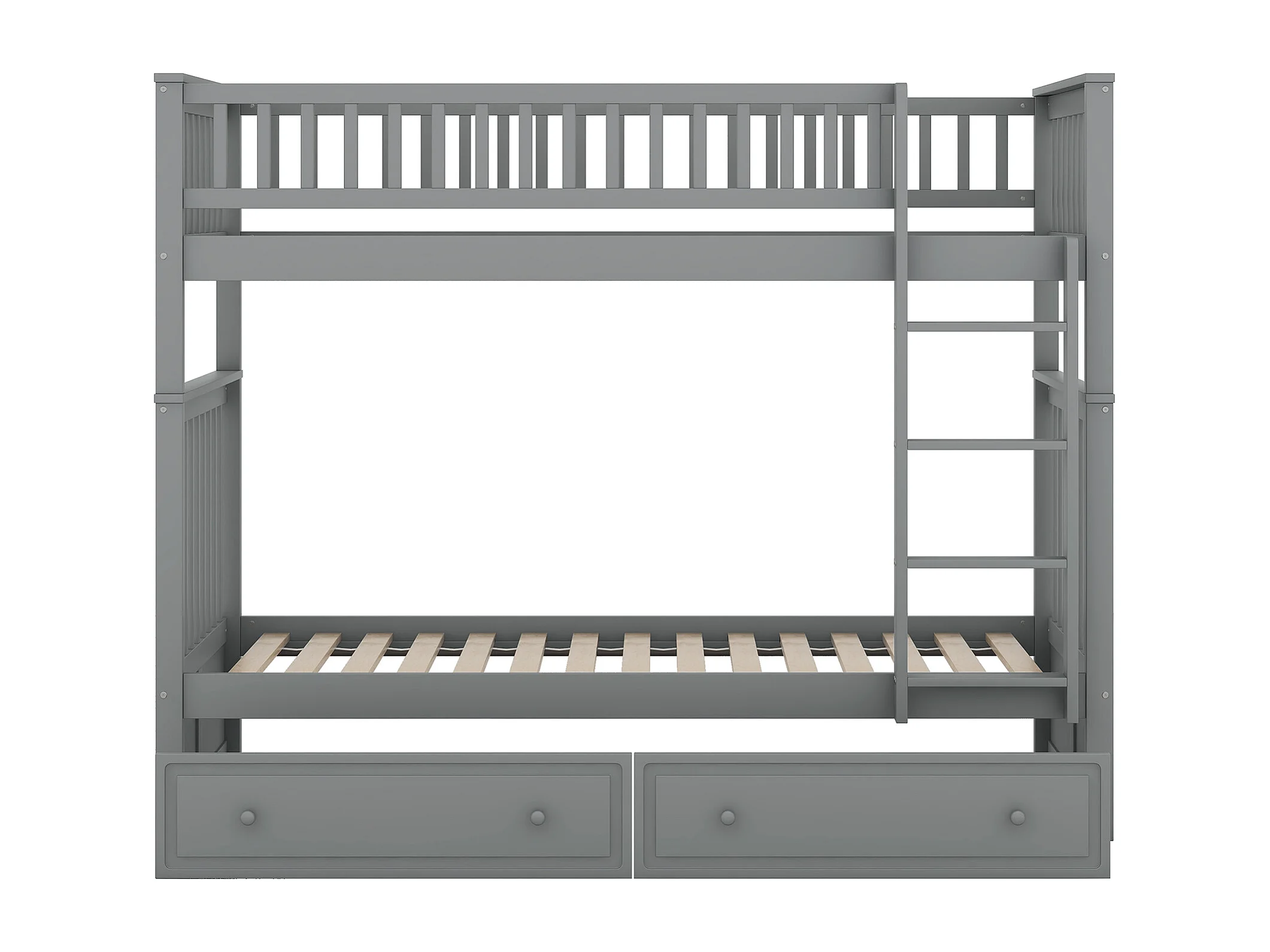 Lit superposé 90x200 cm, échelle, peut être transformés en 2 lits, rangement, Pin et MDF, gris, sans matelas