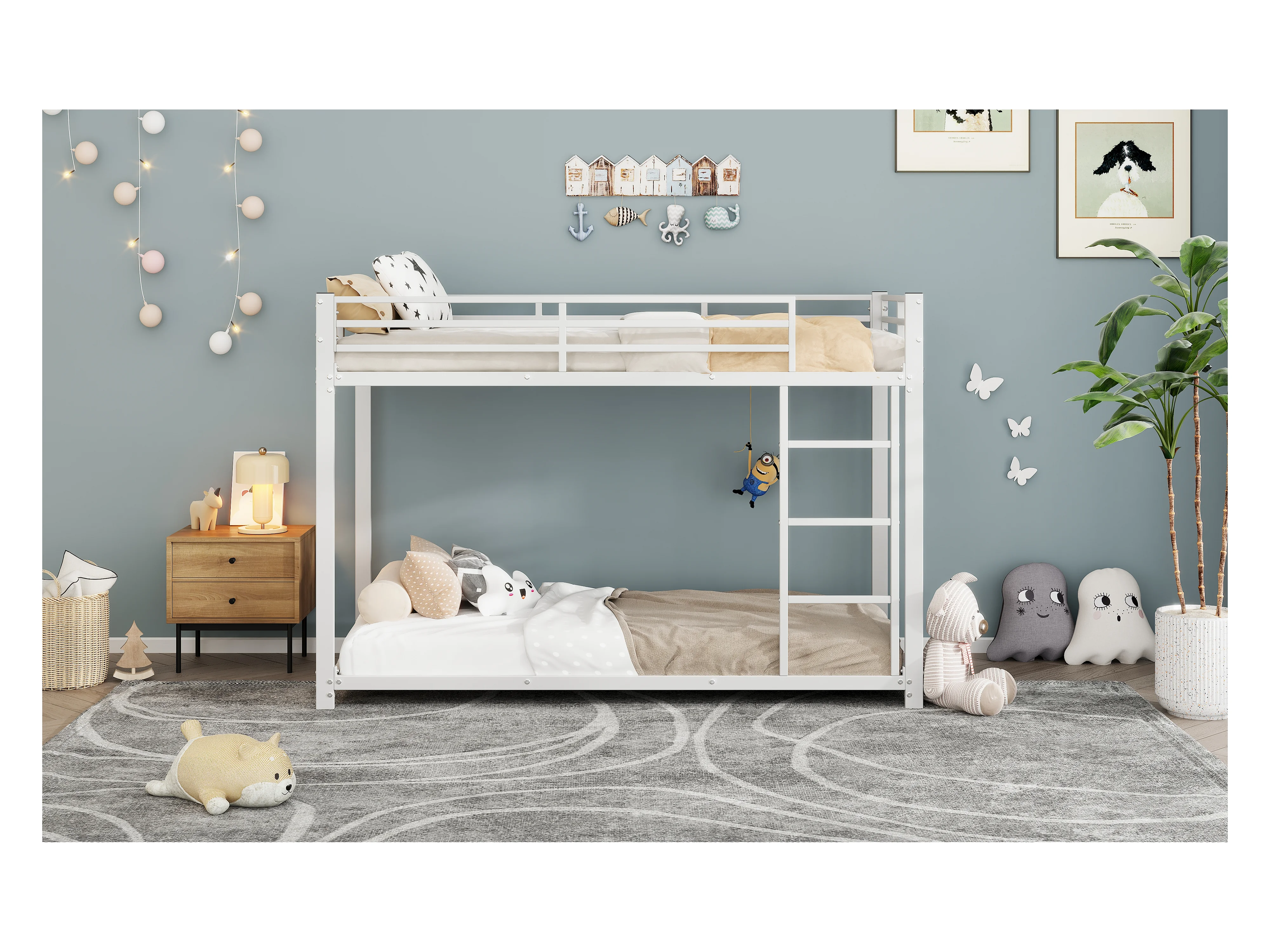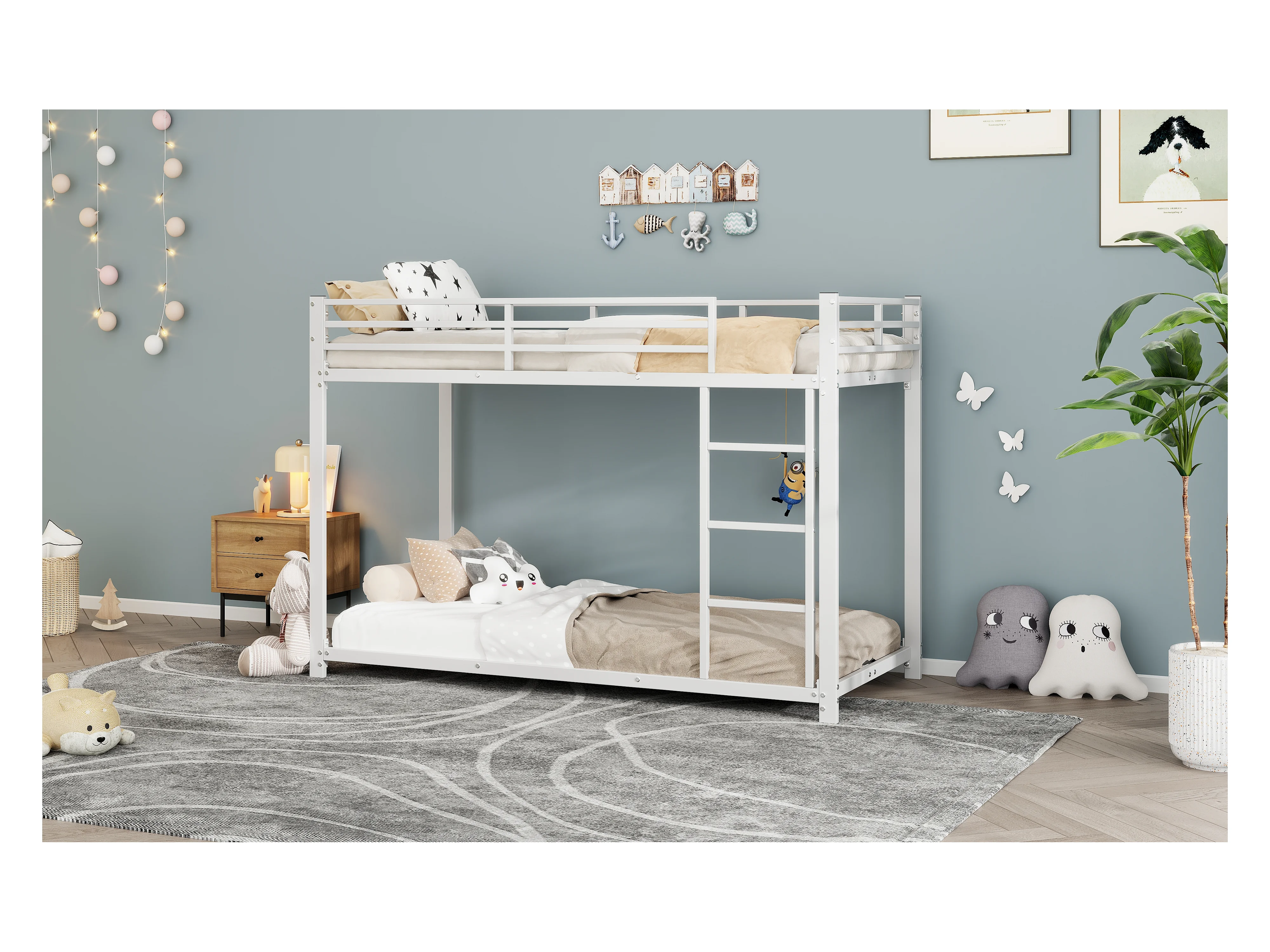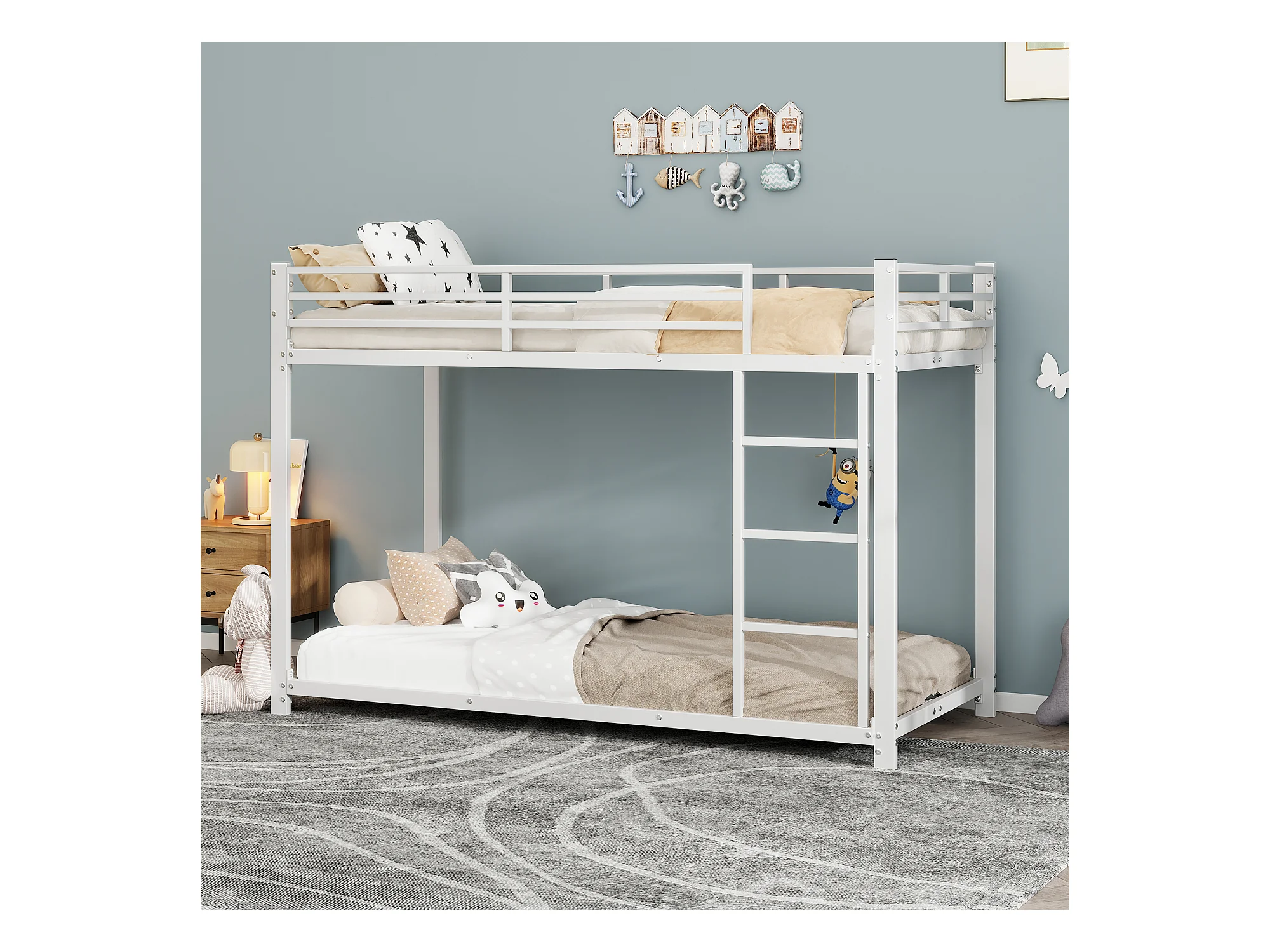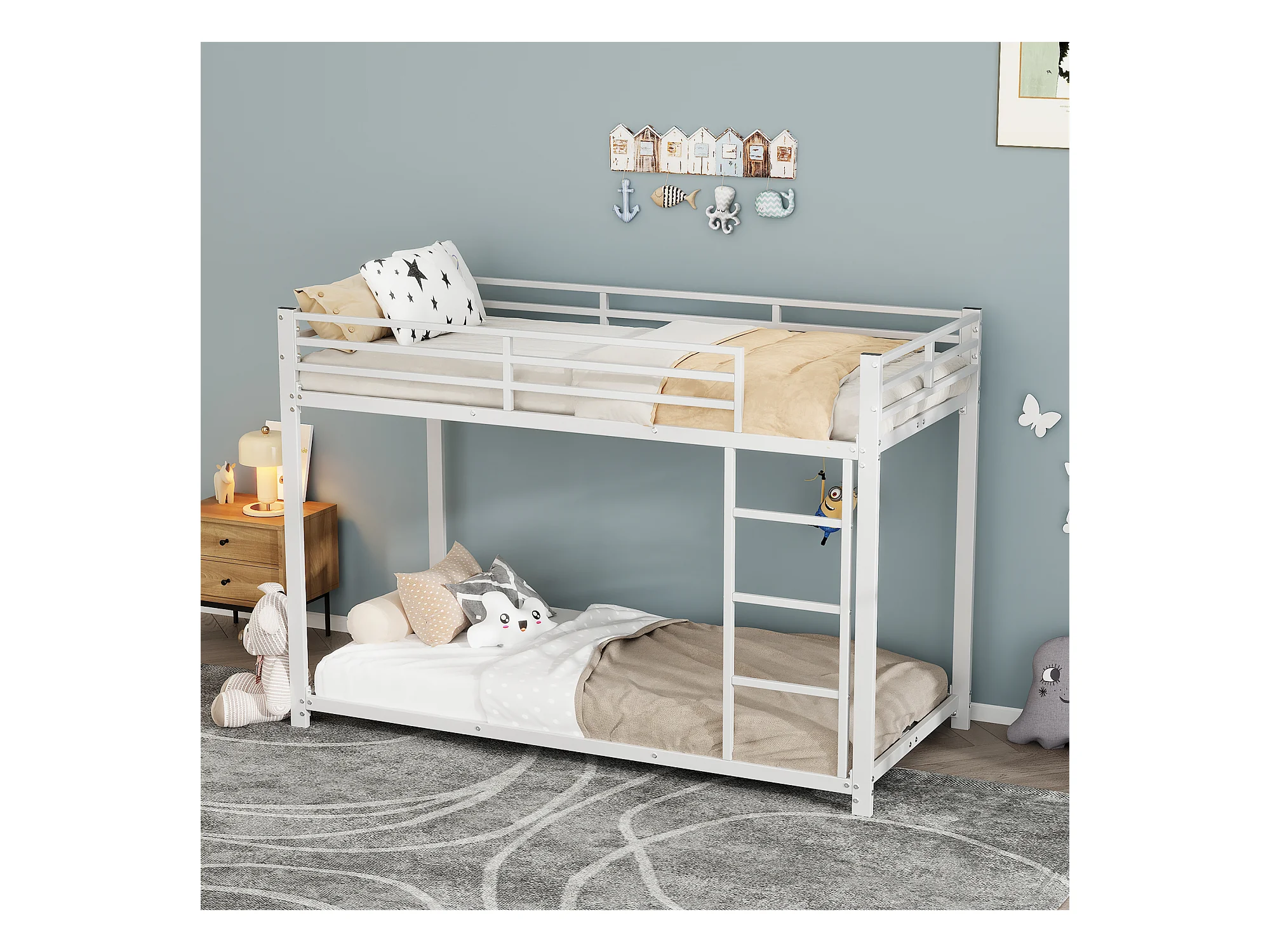 Lit superposé 90x200 cm, structure métal, lit classique pour enfants, adolescents et adultes, sécurité renforcée, Blanc