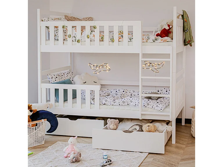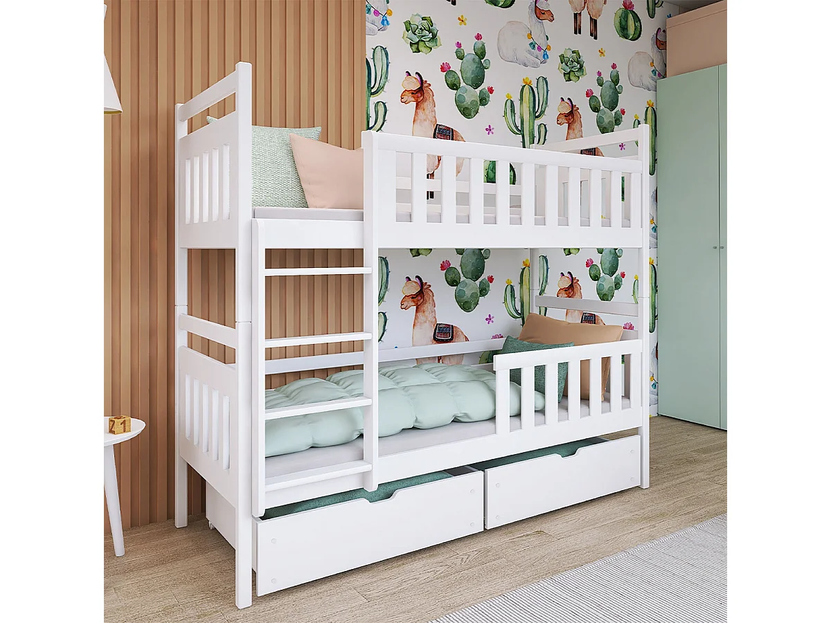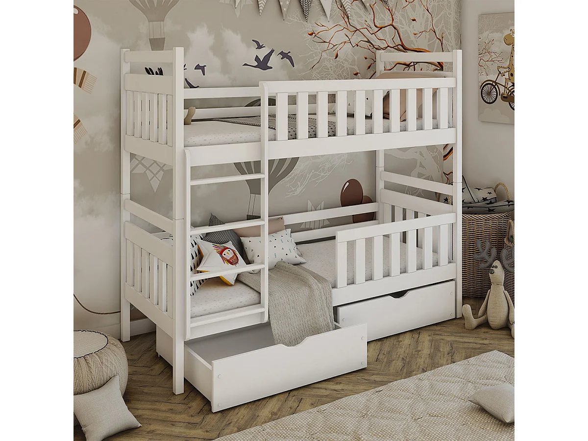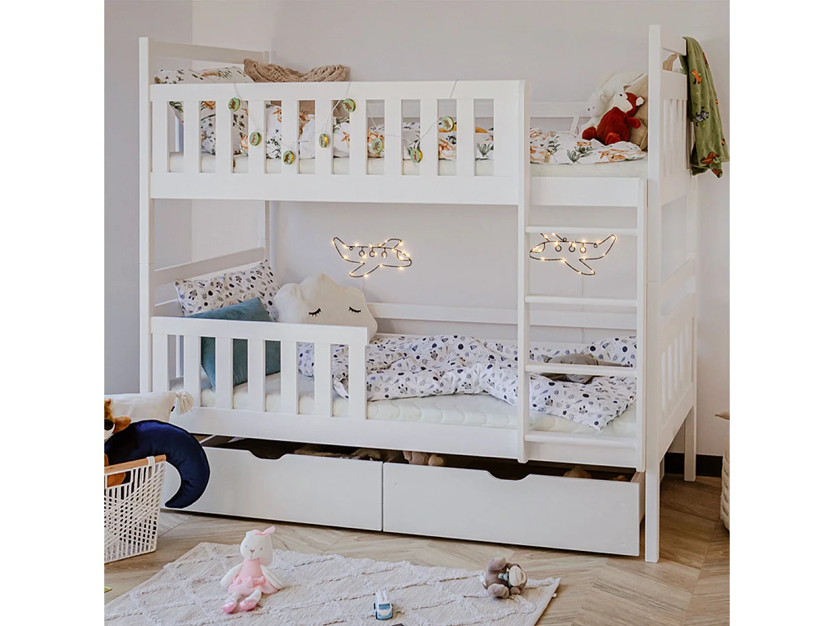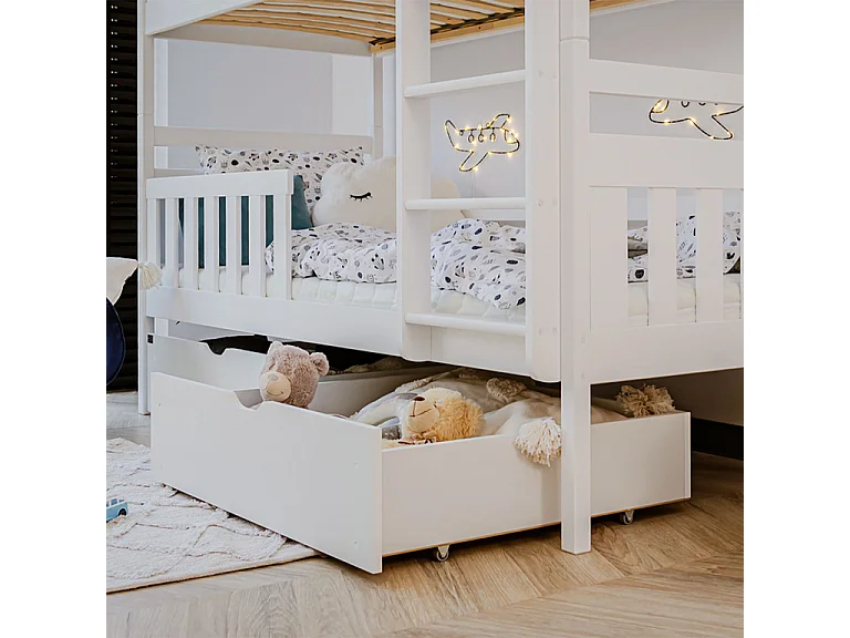 Lit superposé 90x200 sommier et tiroirs inclus Damien Blanc