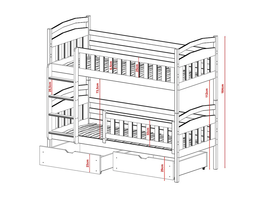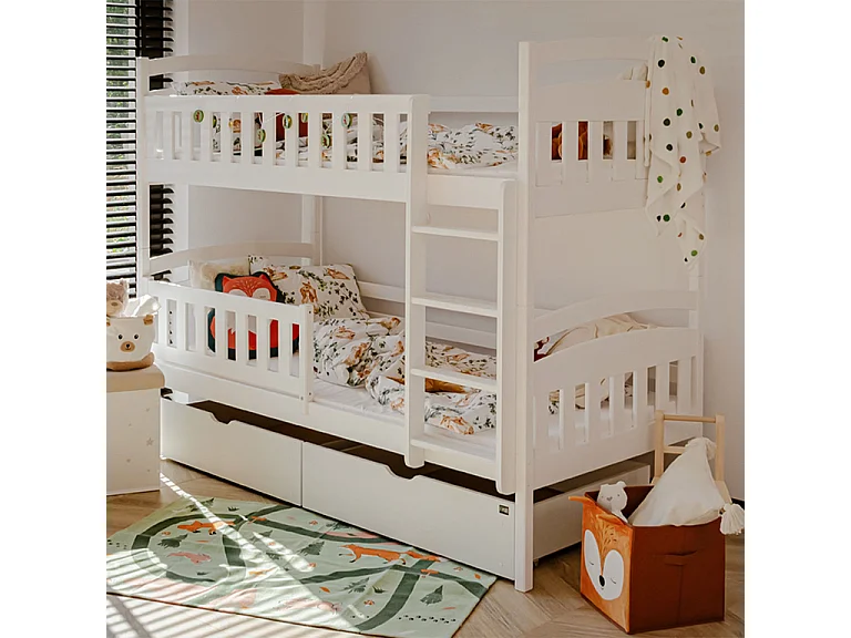 Lit superposé 90x200 sommier et tiroirs inclus Jules Blanc