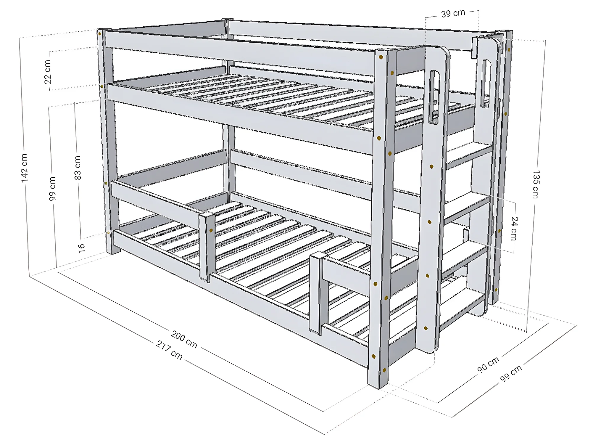 Lit superposé 90x200 sommier inclus Rosy - Bois