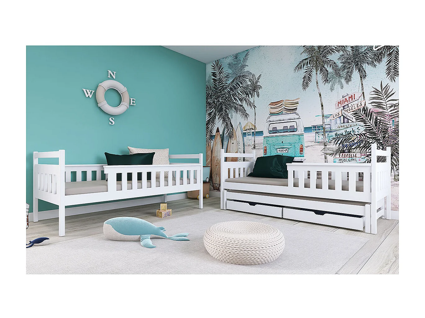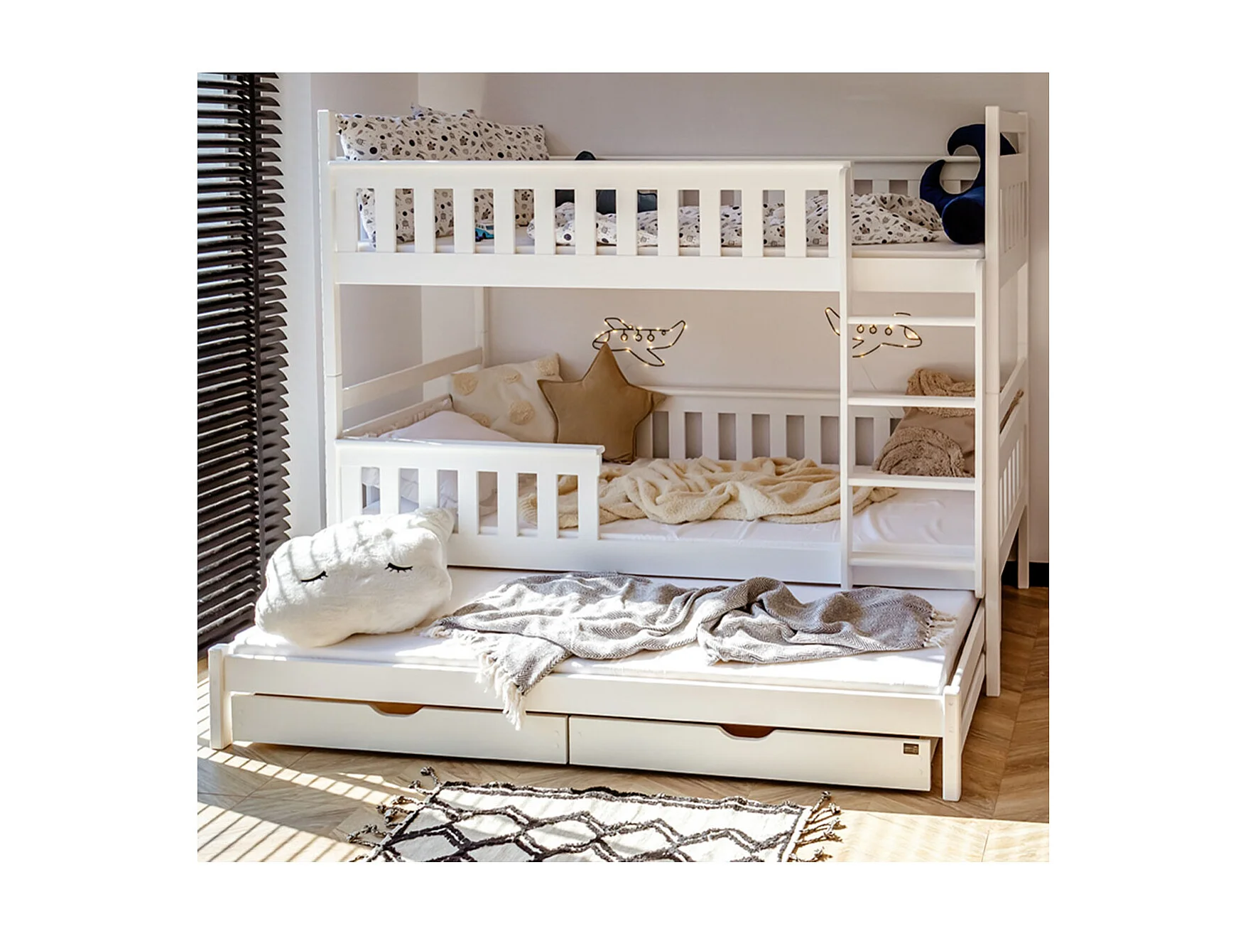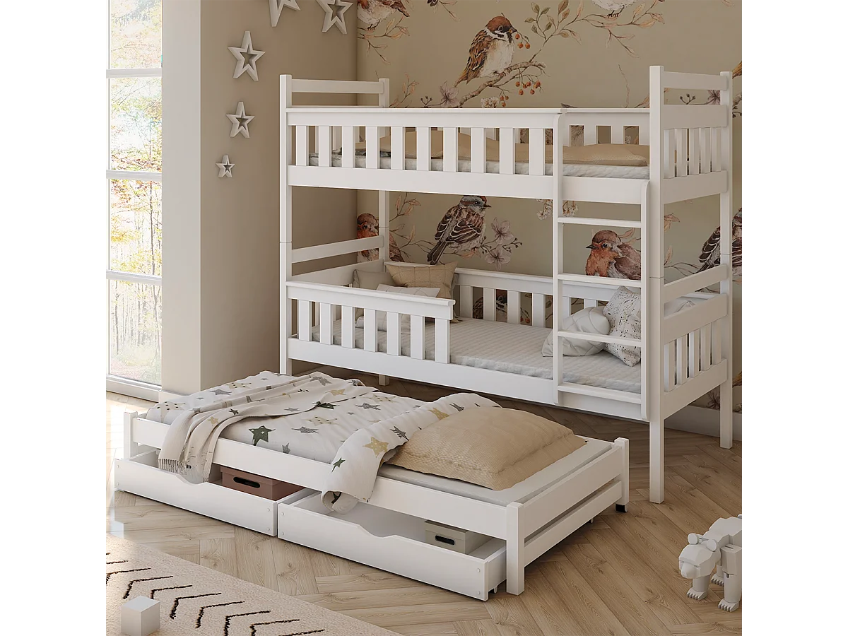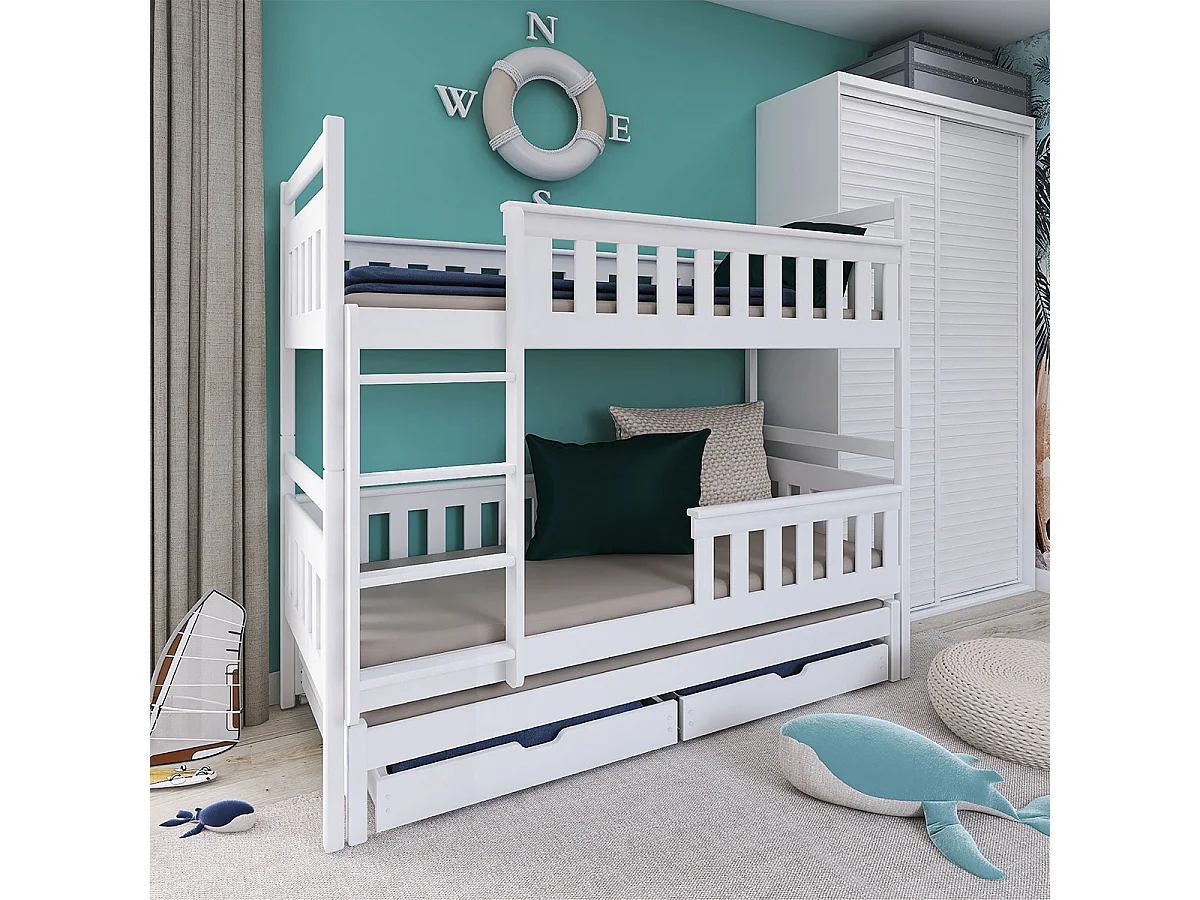 Lit superposé 90x200 sommier lit gigogne et tiroirs inclus Alexis Blanc