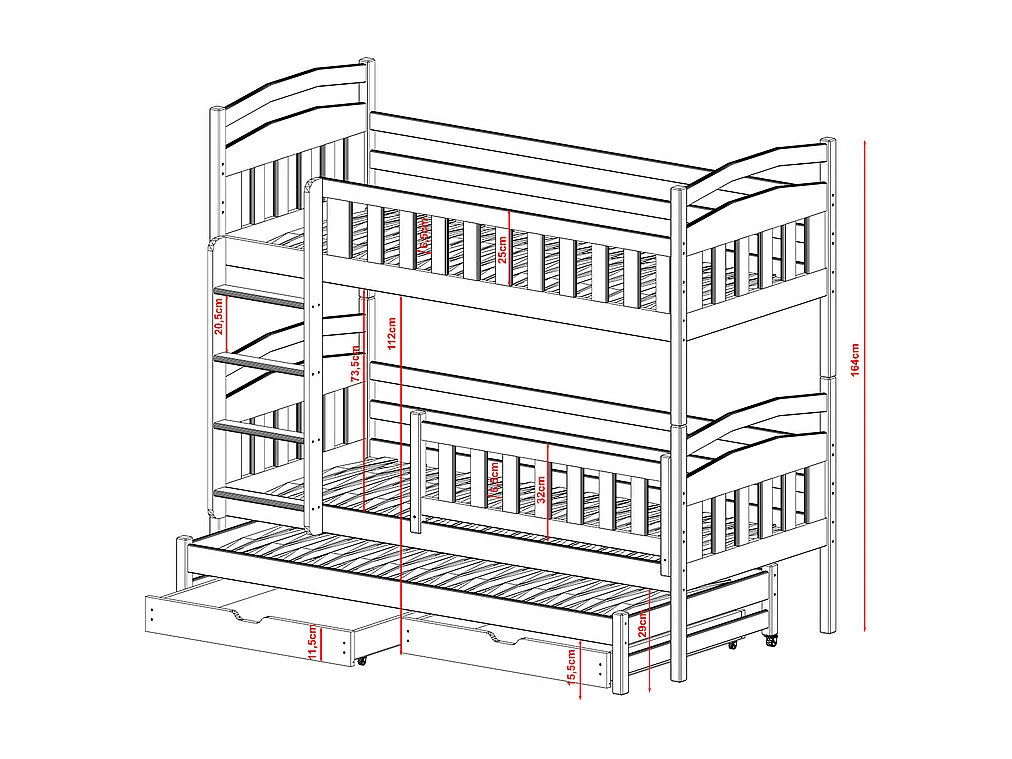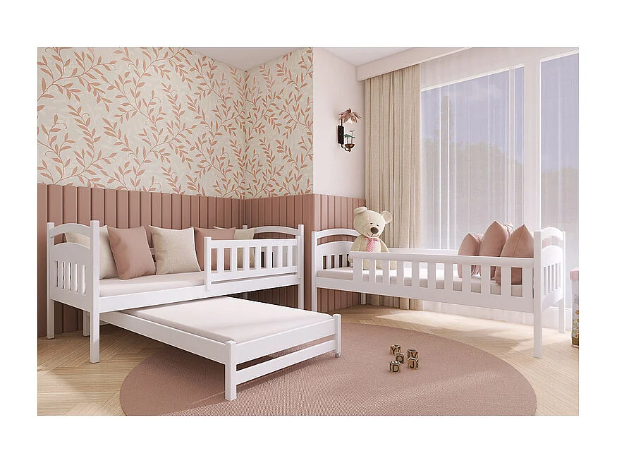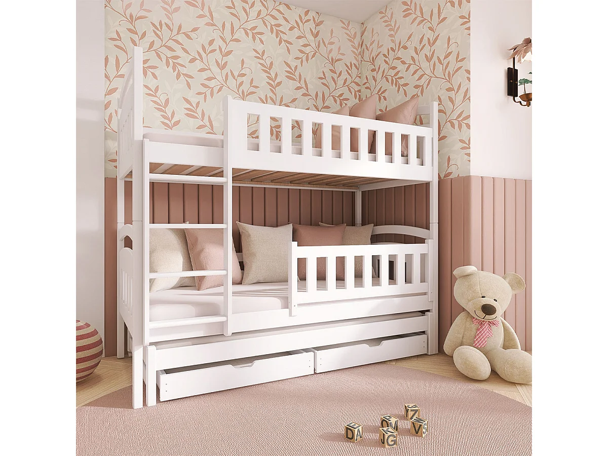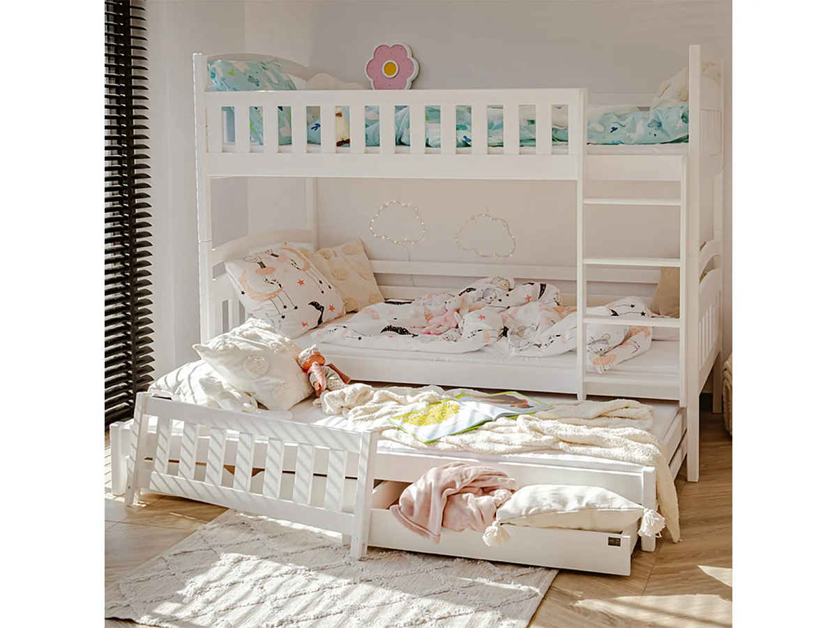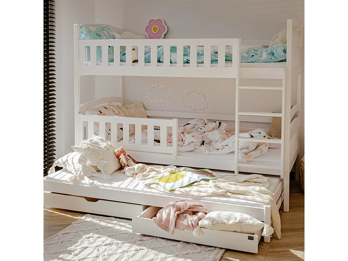 Lit superposé 90x200 sommier lit gigogne et tiroirs inclus Jules Blanc