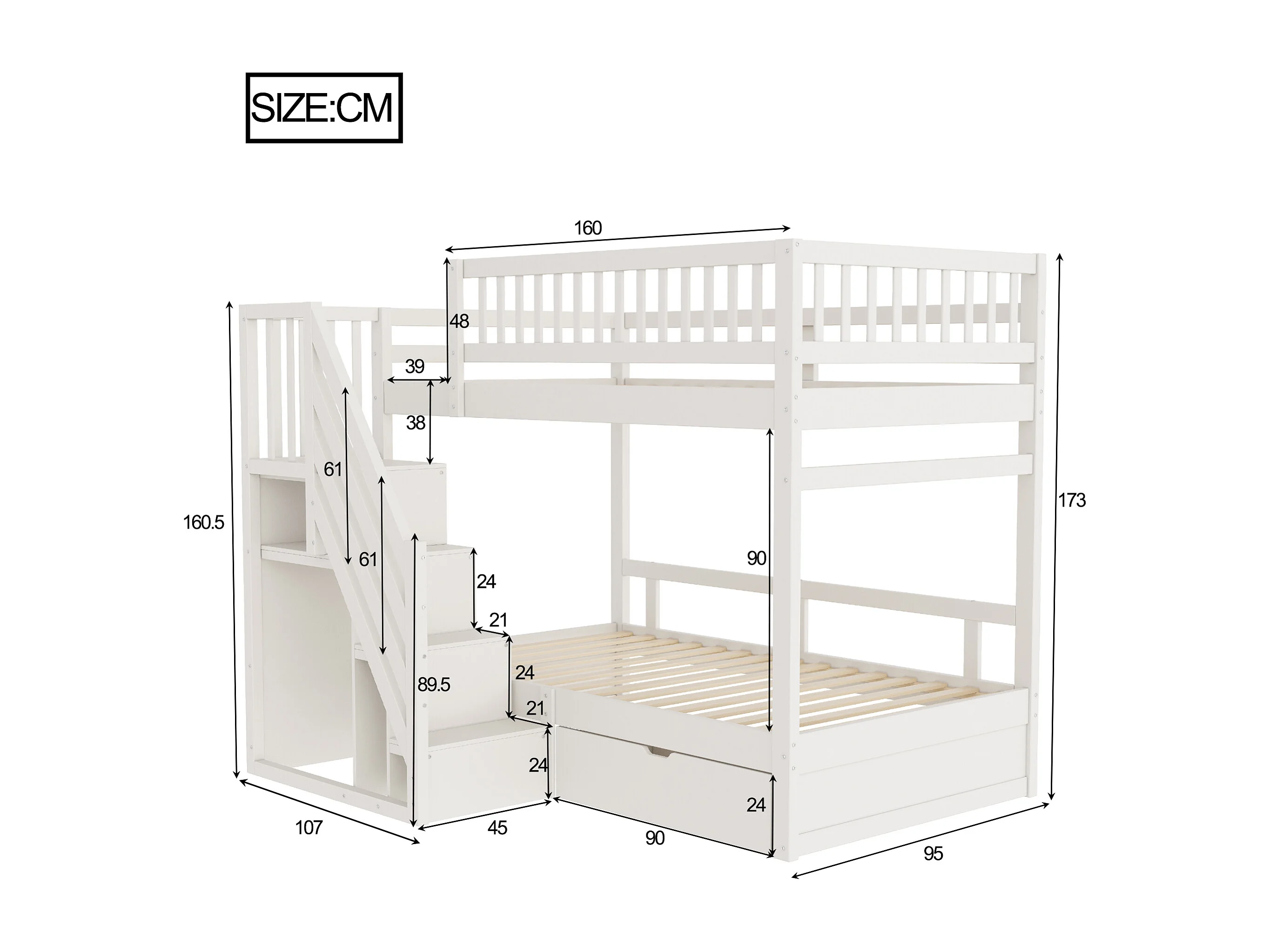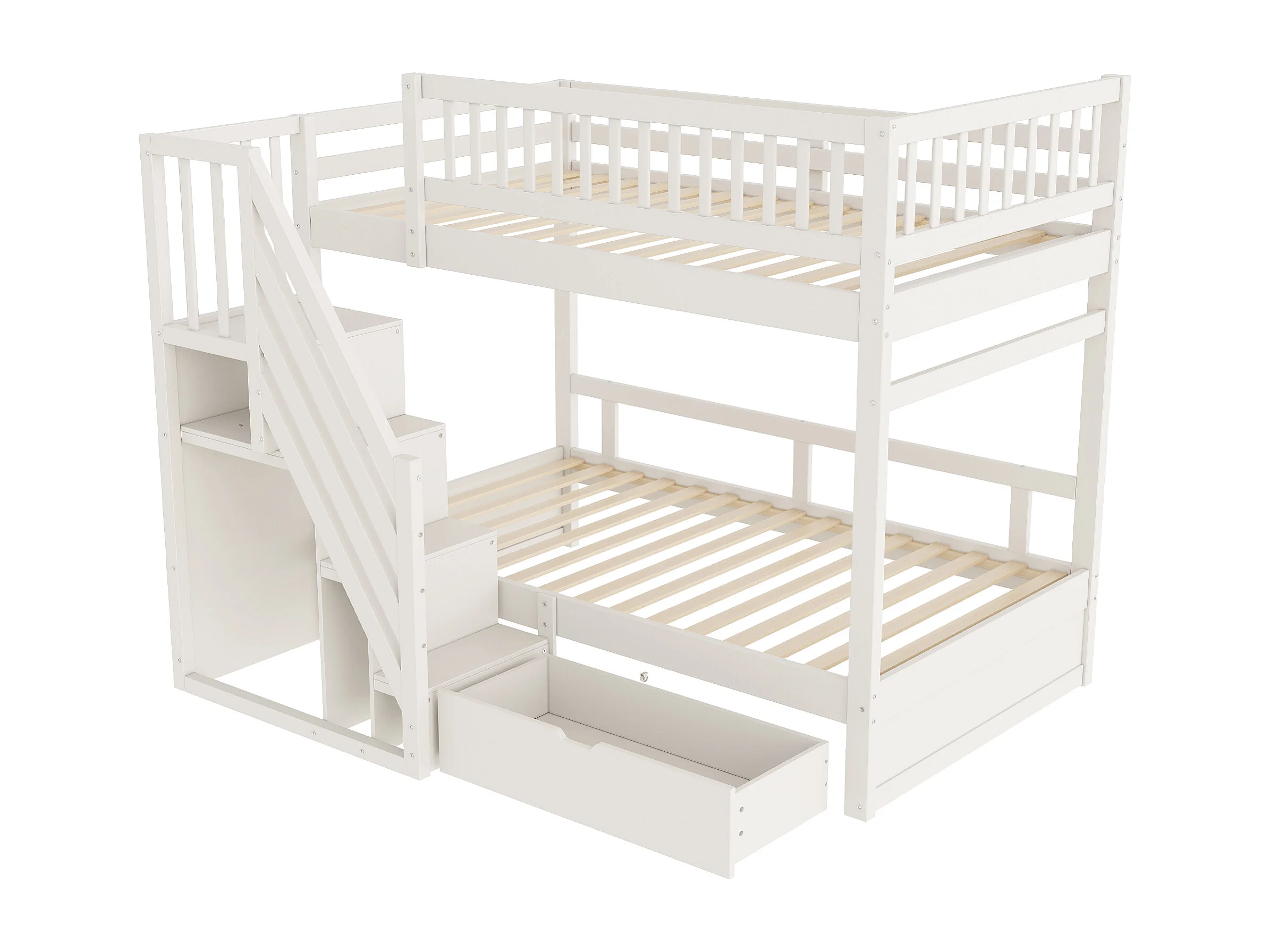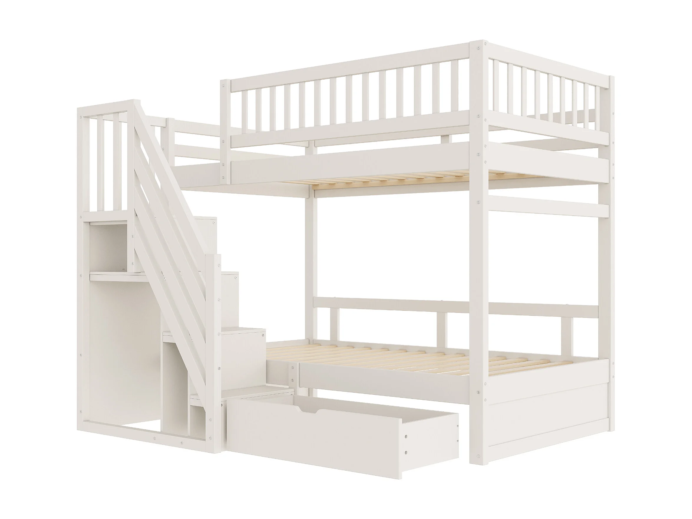 Lit superposé 90x200cm - avec échelle de sécurité - avec 1 tiroir - avec sommier à lattes - blanc (sans matelas)