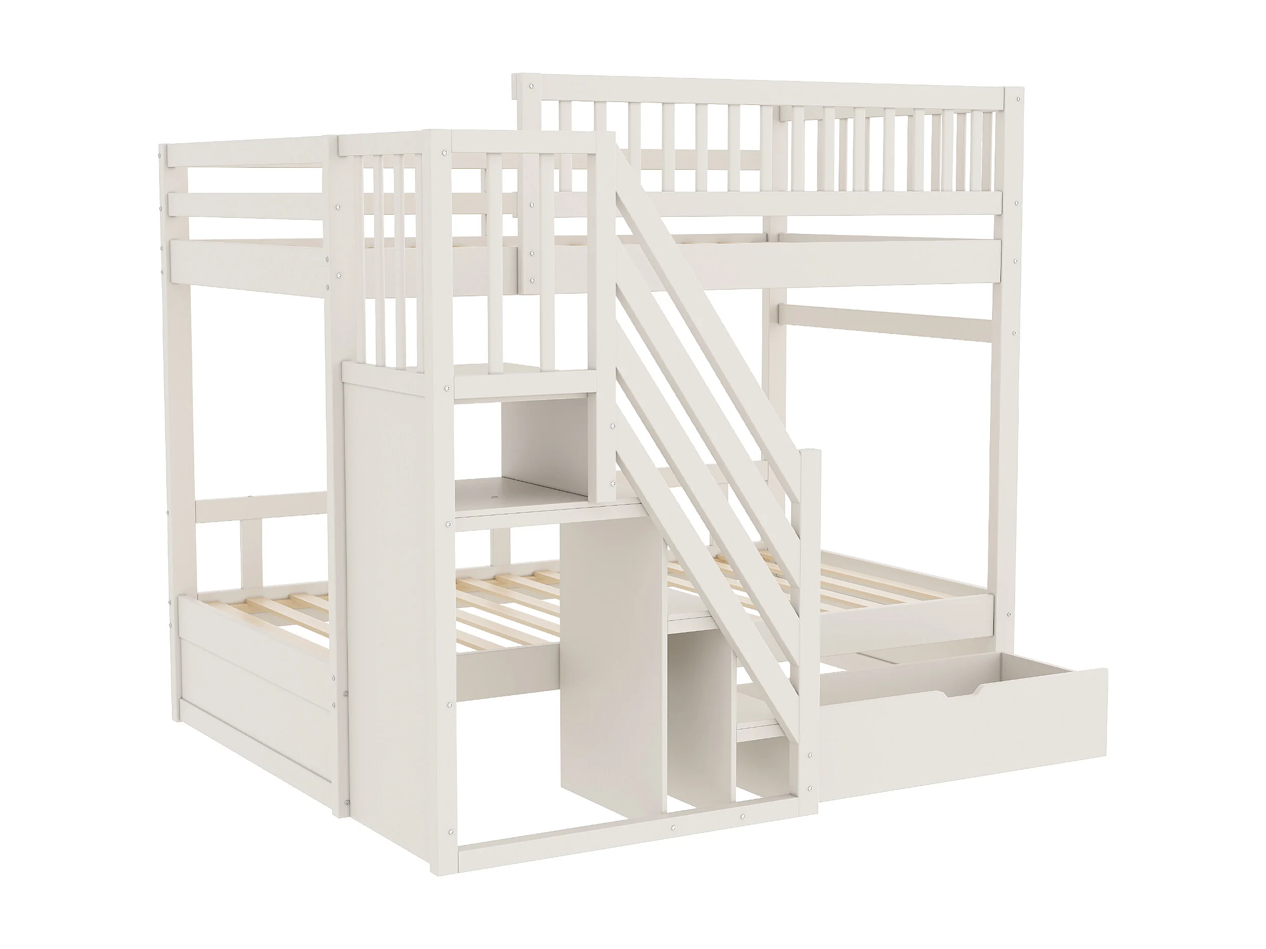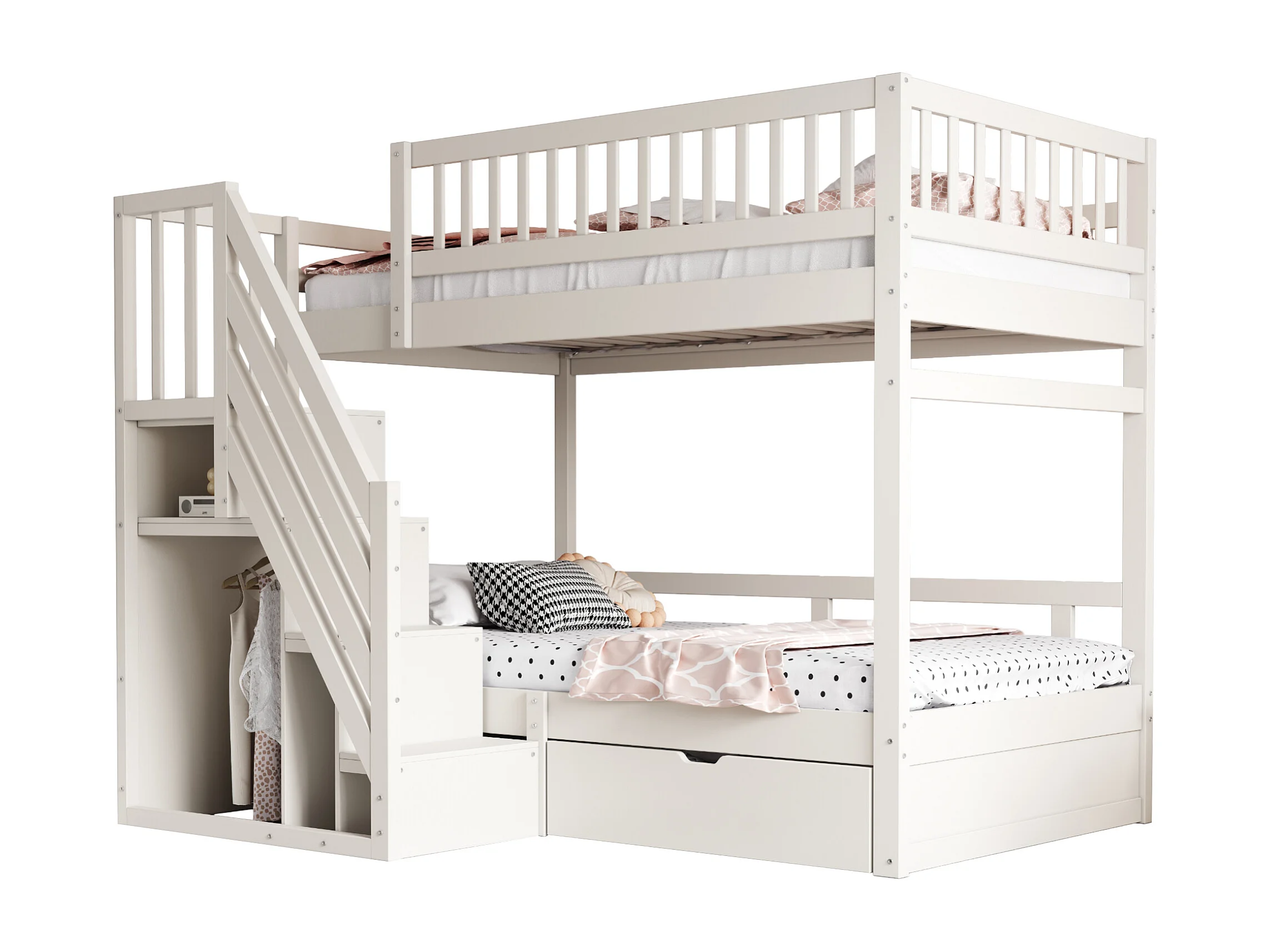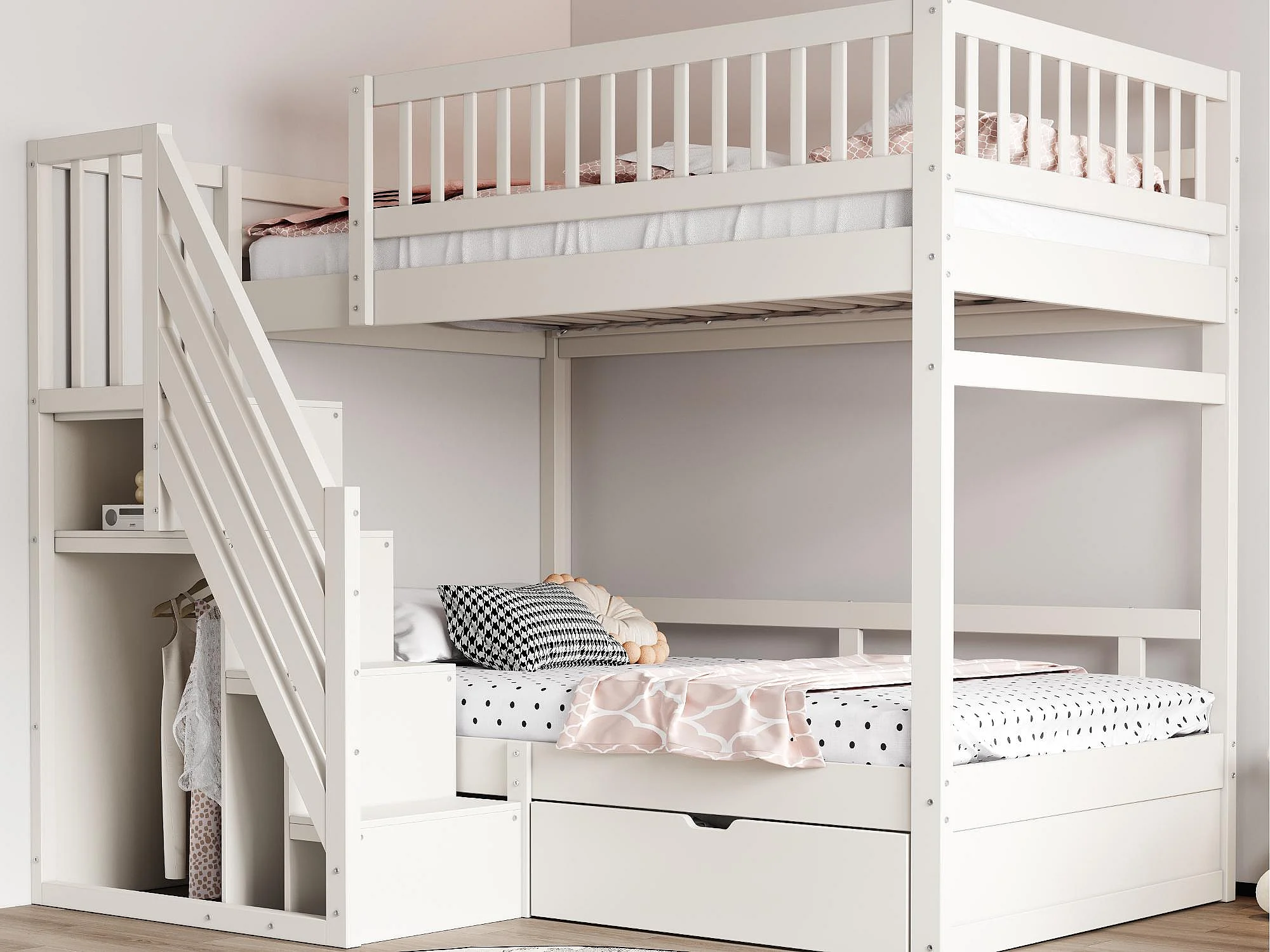Lit superposé 90x200cm - avec échelle de sécurité - avec 1 tiroir - avec sommier à lattes - blanc (sans matelas)