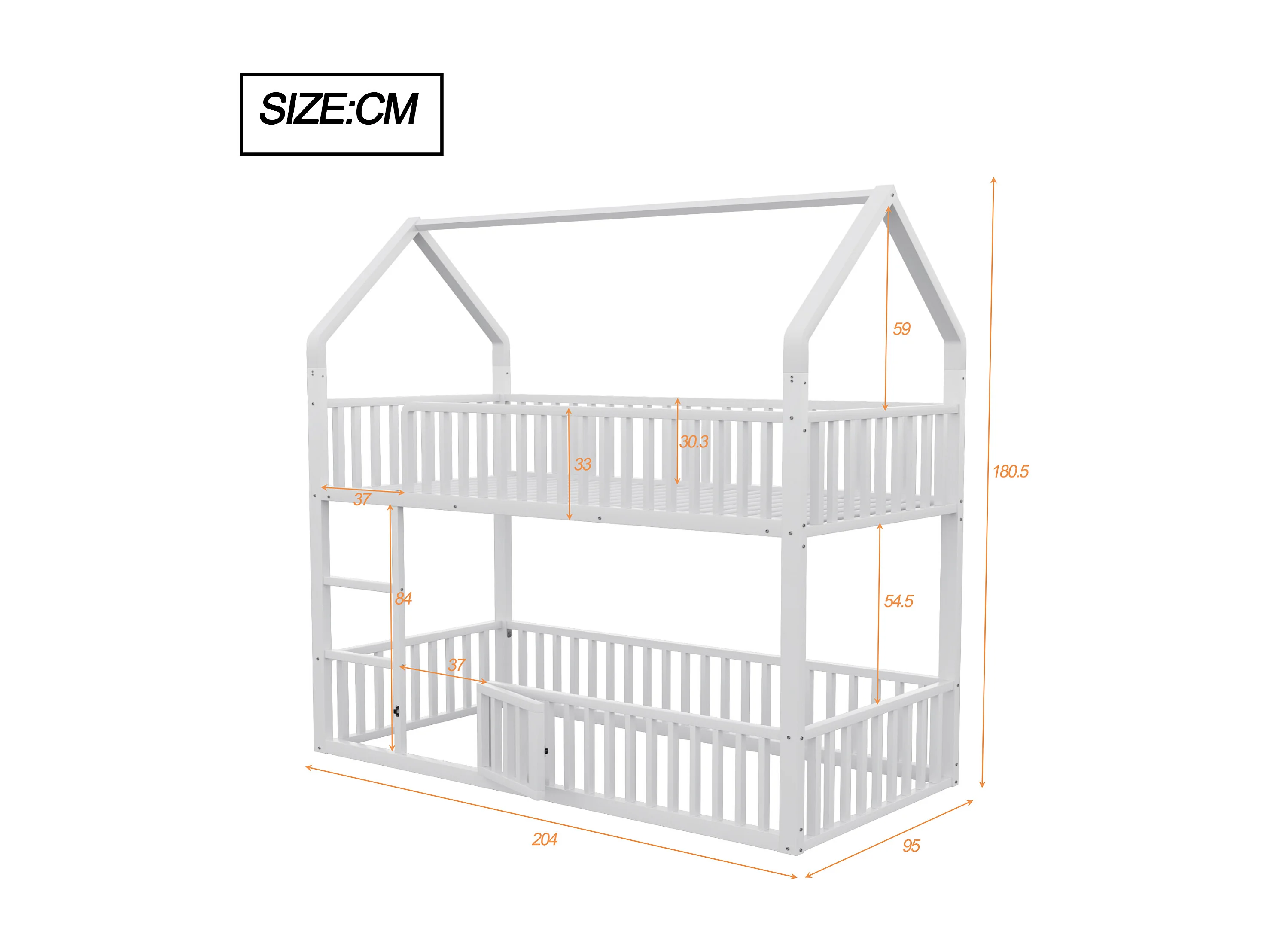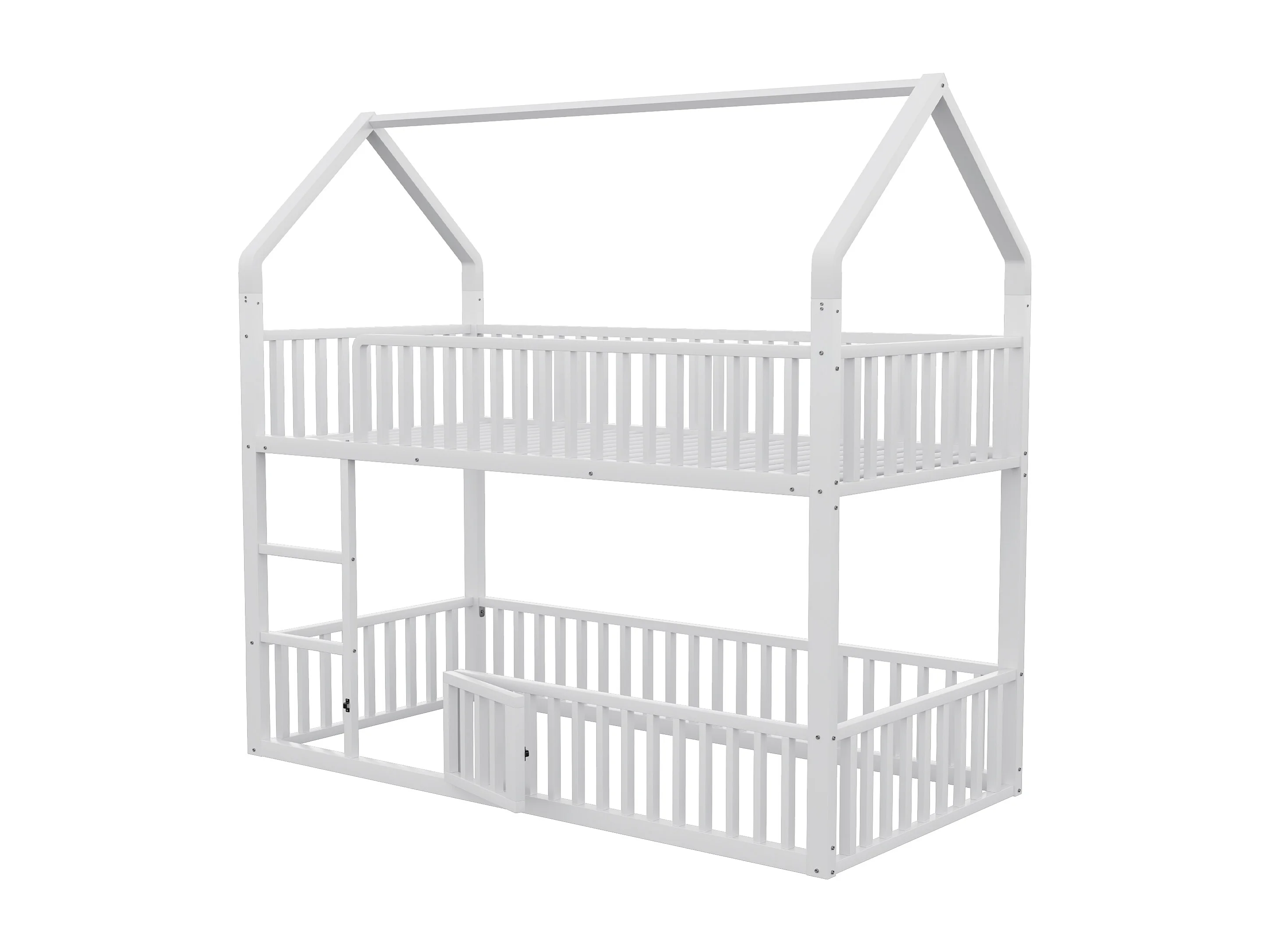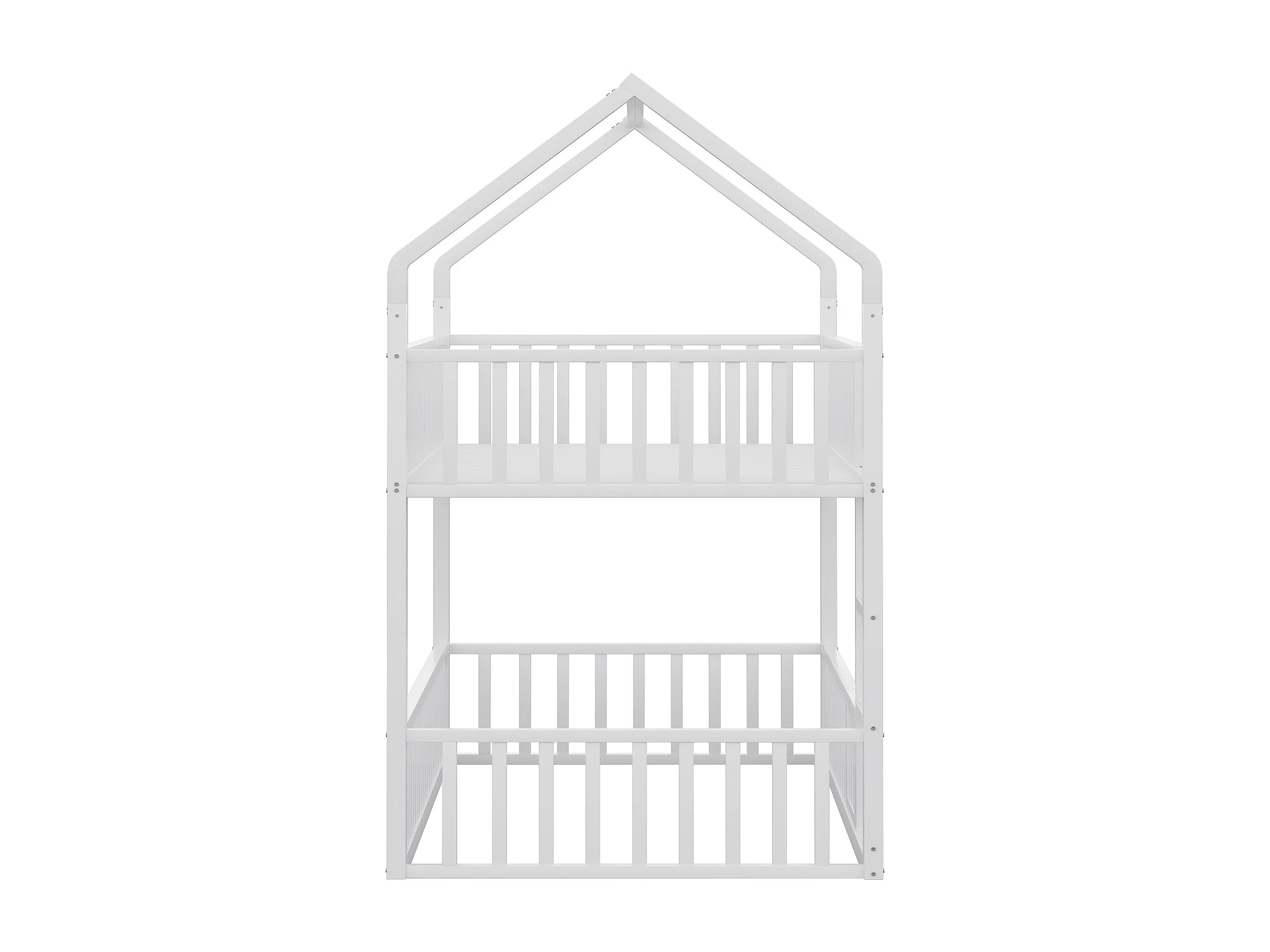 Lit superposé 90x200cm avec escalier, 1 sommier, Lit cabane de style simple, en métal blanc, sans matalas