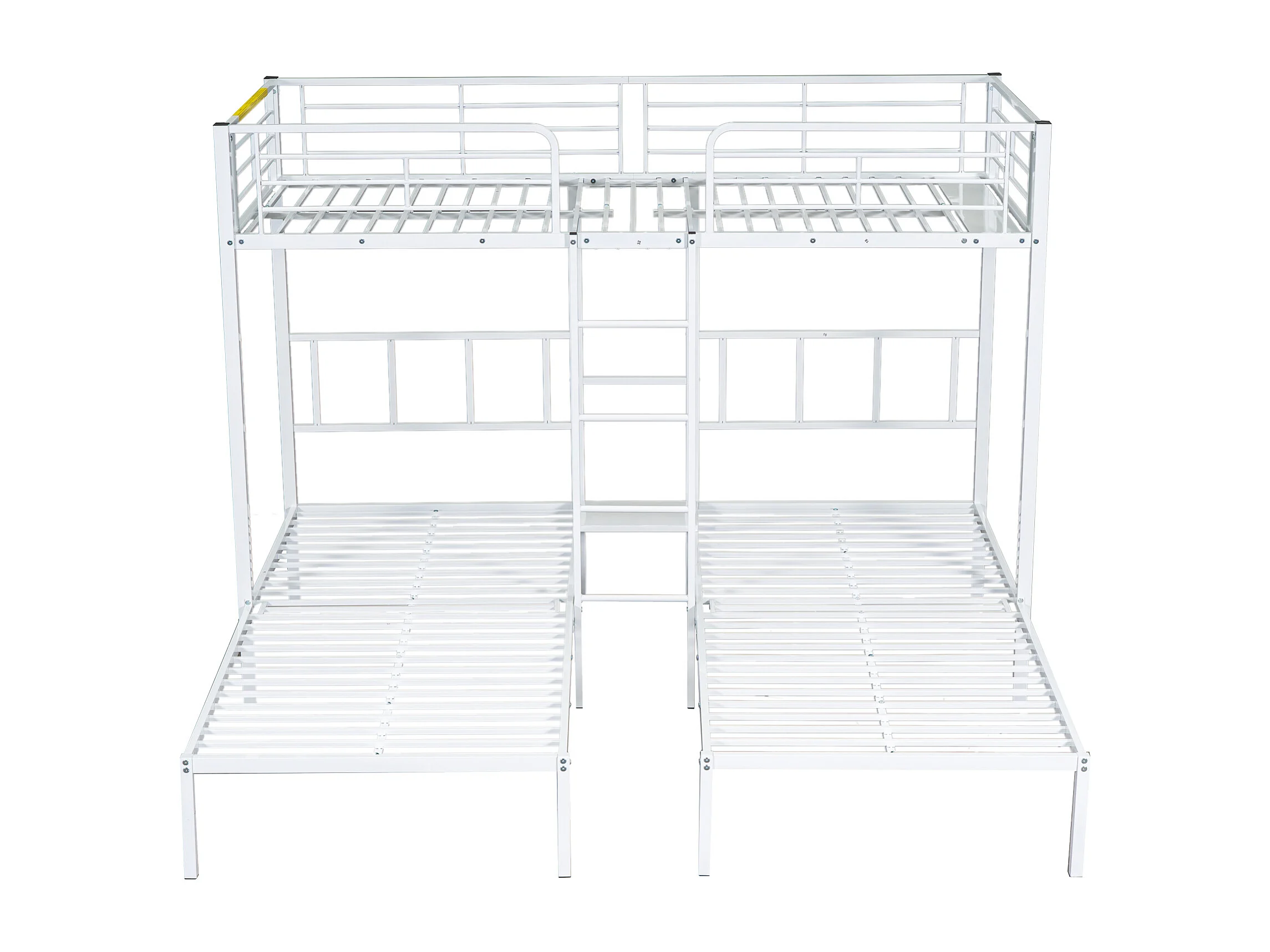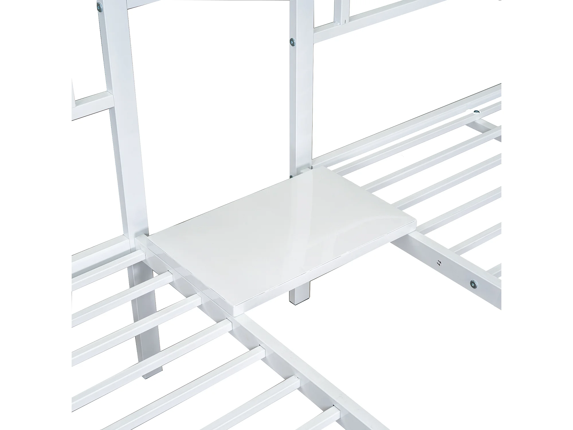 Lit superposé 90x200cm Échelle stable rangement tête de lit métal blanc (Sans matelas)