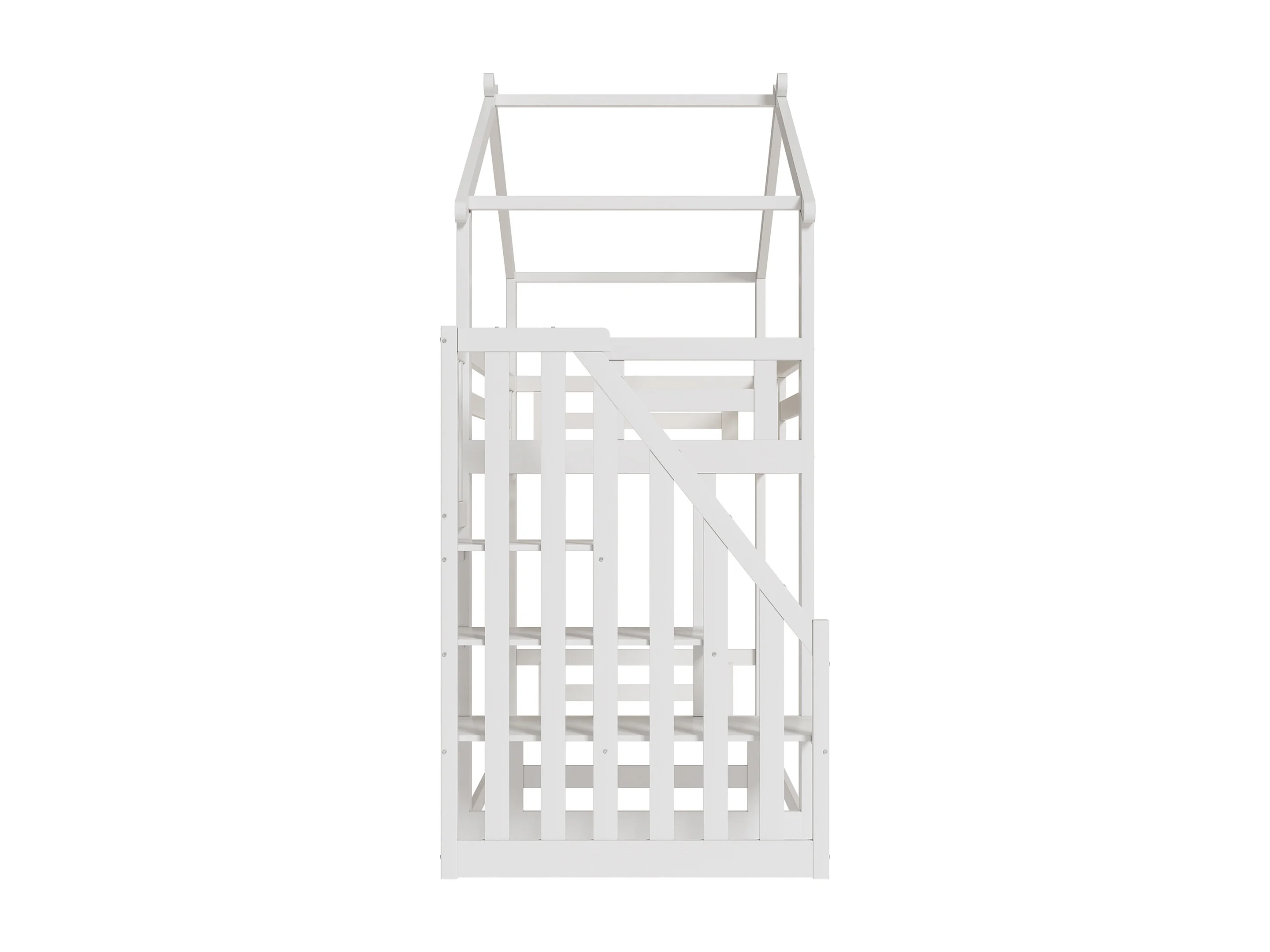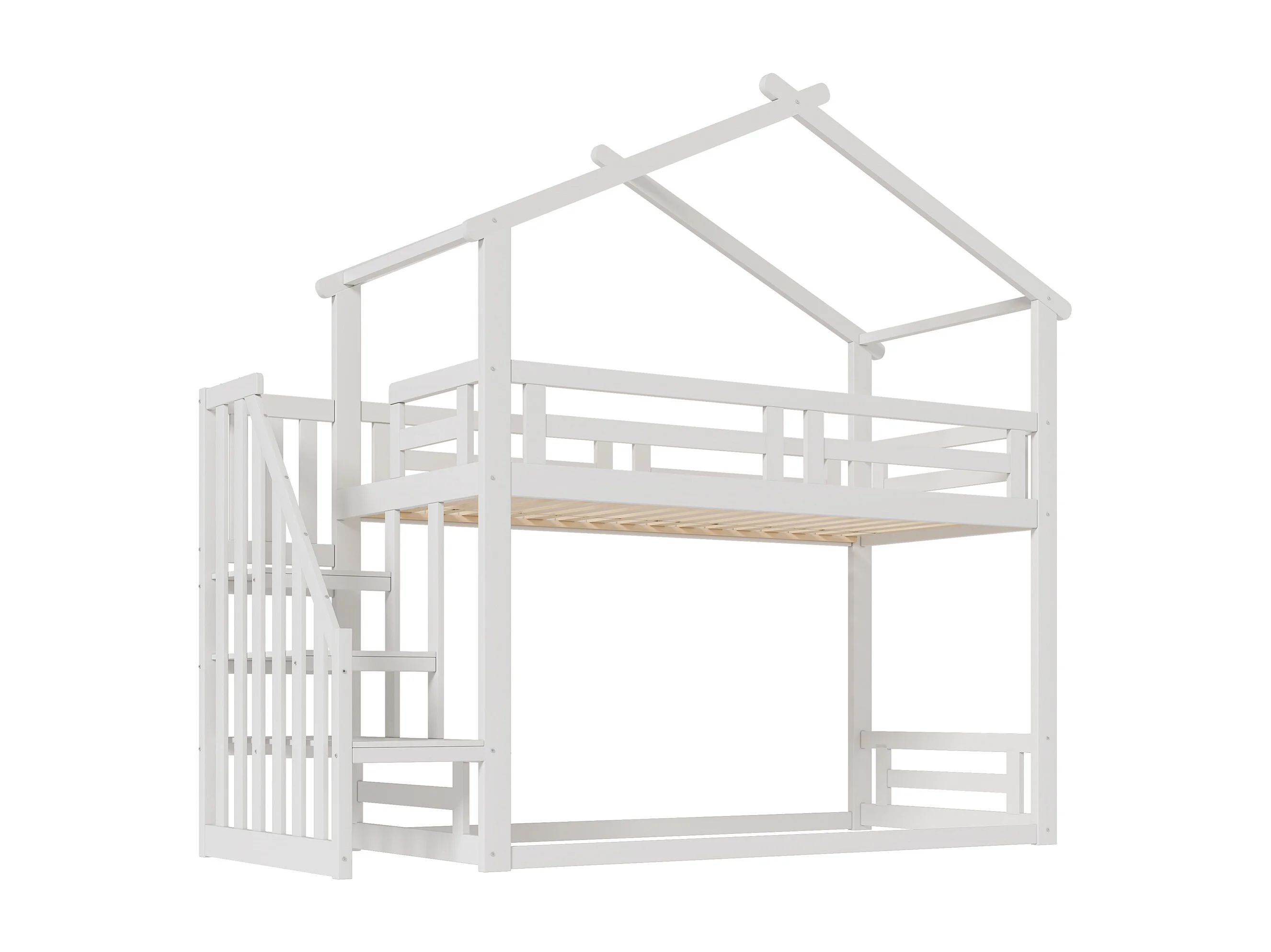 Lit superposé 90x200cm enfant style scandinave garde corps 29cm 16 lattes bois blanc (Sans matelas)