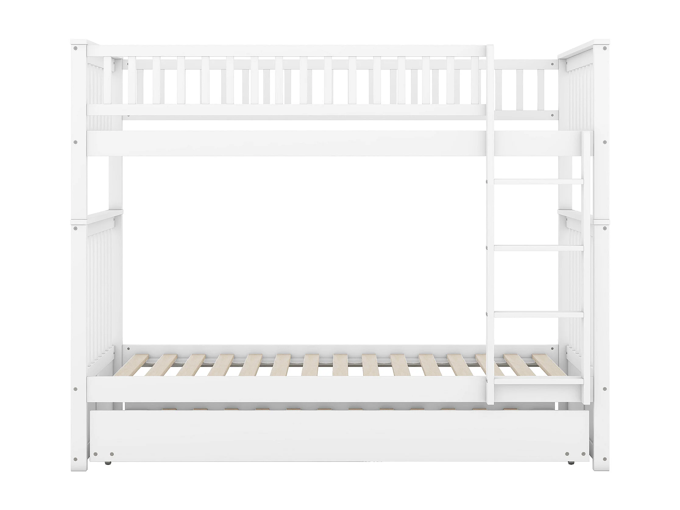 Lit superposé 90x200cm, lit enfant, avec lit gigogne, barrières de sécurité hautes et escalier, pin et MDF, blanc, sans matelas